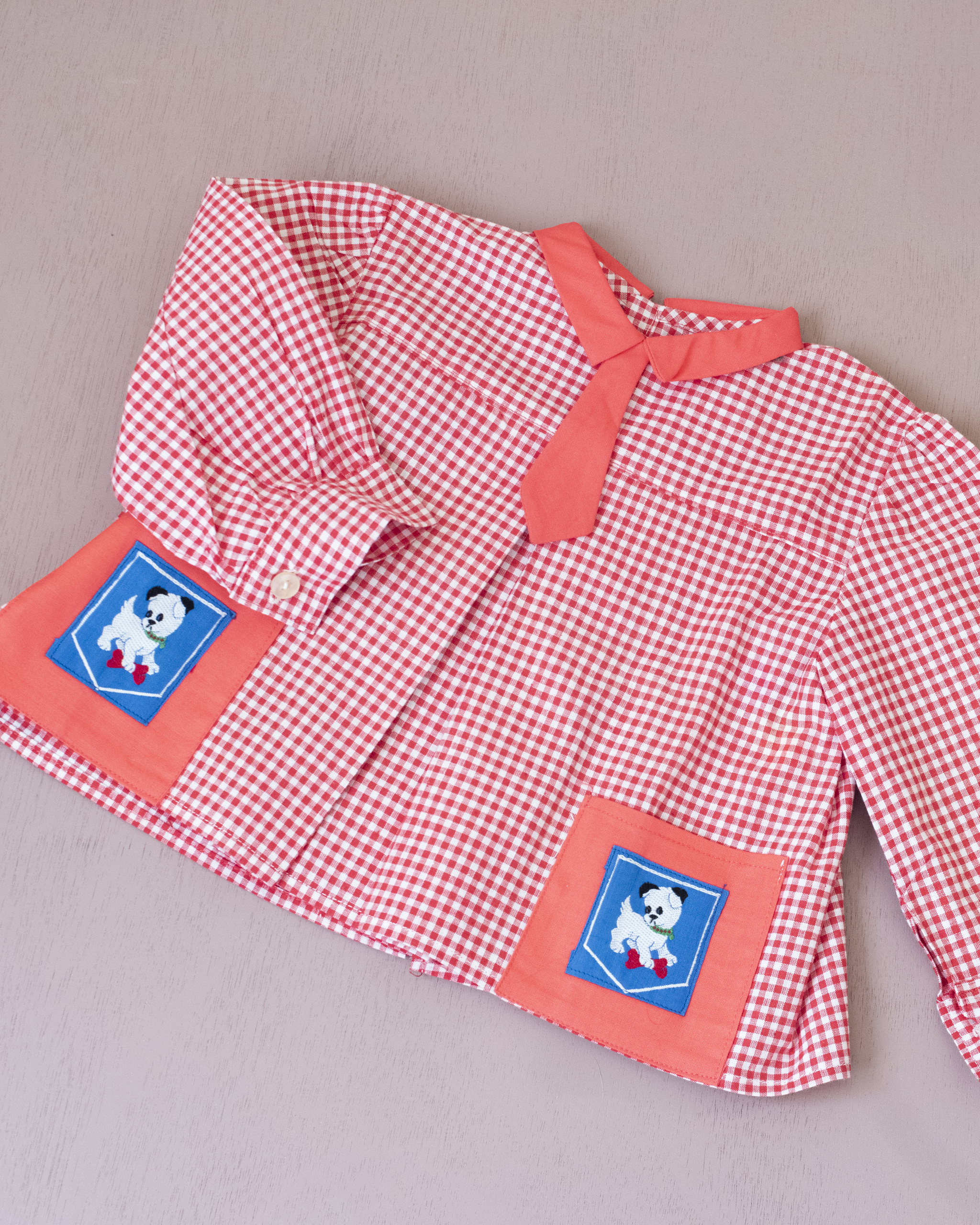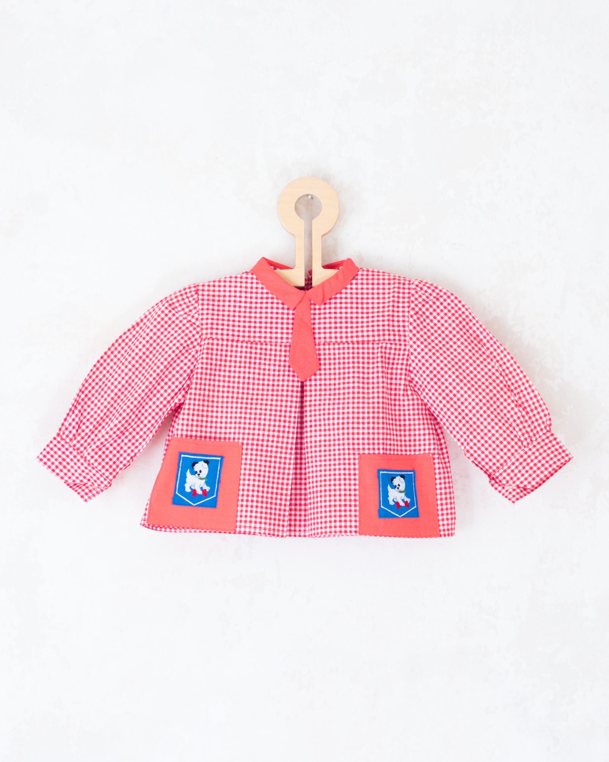 חולצה משובצת עם כלבים בכיסים | דד סטוק צרפתי מהסיקסטיז | 12-18 חודשים