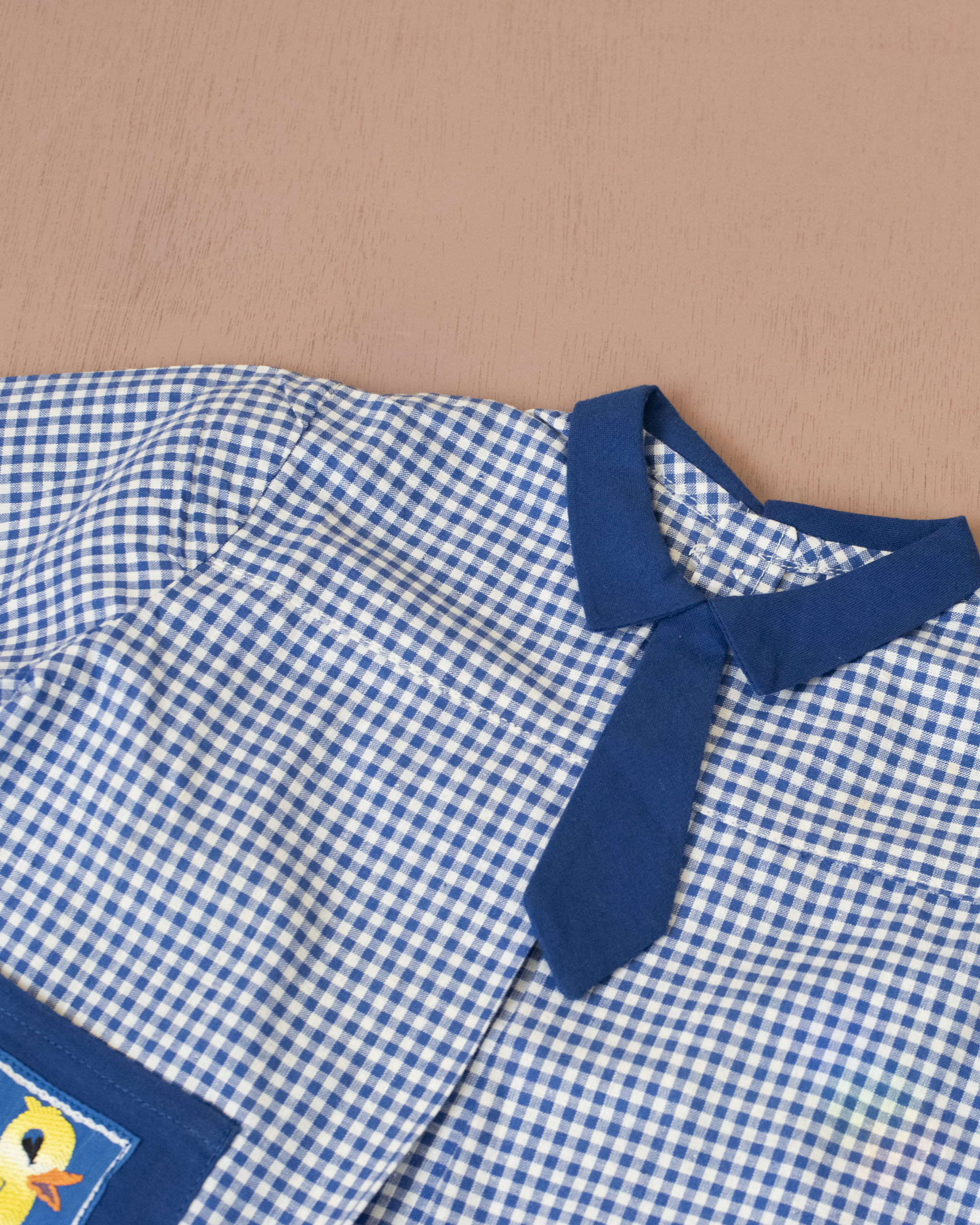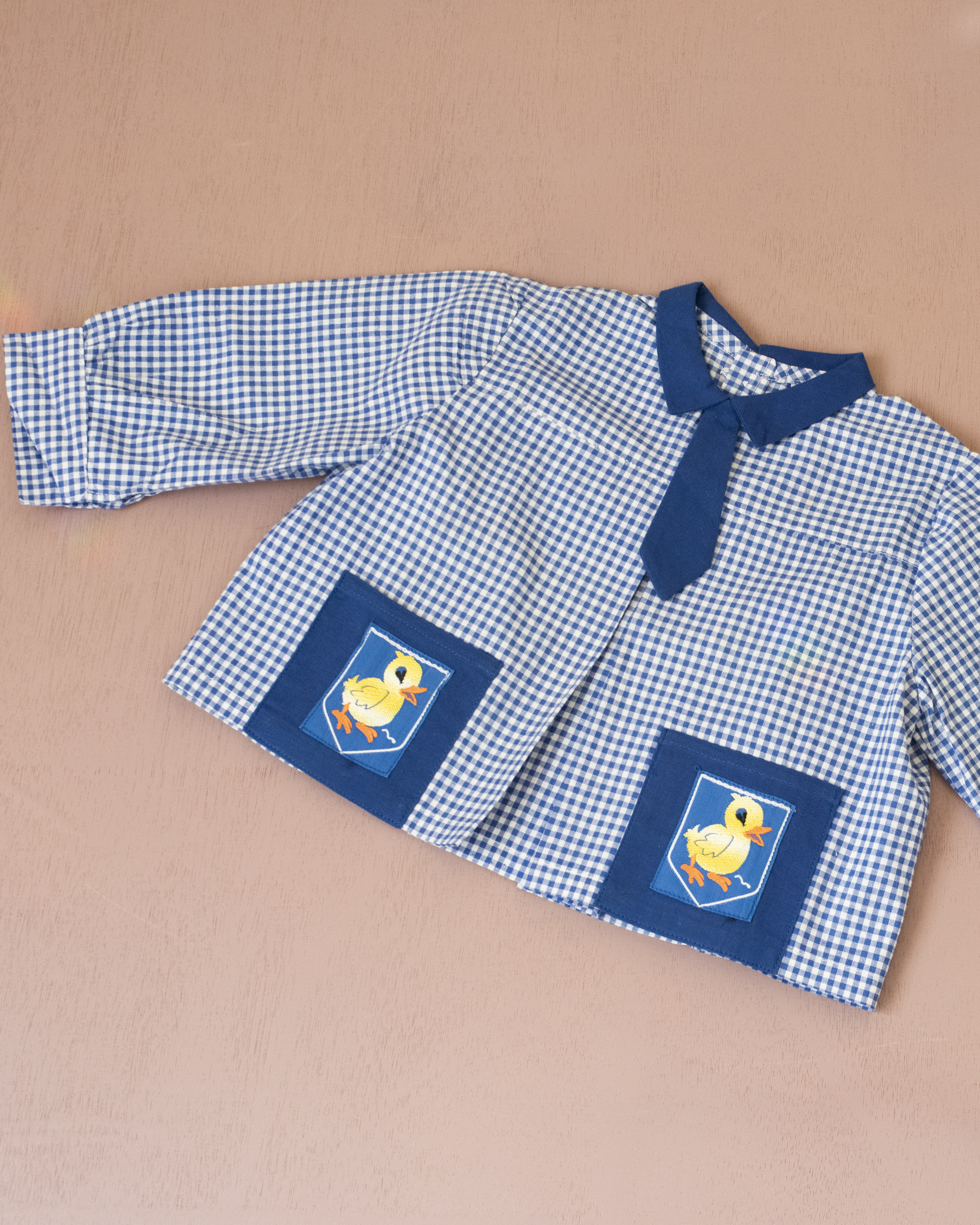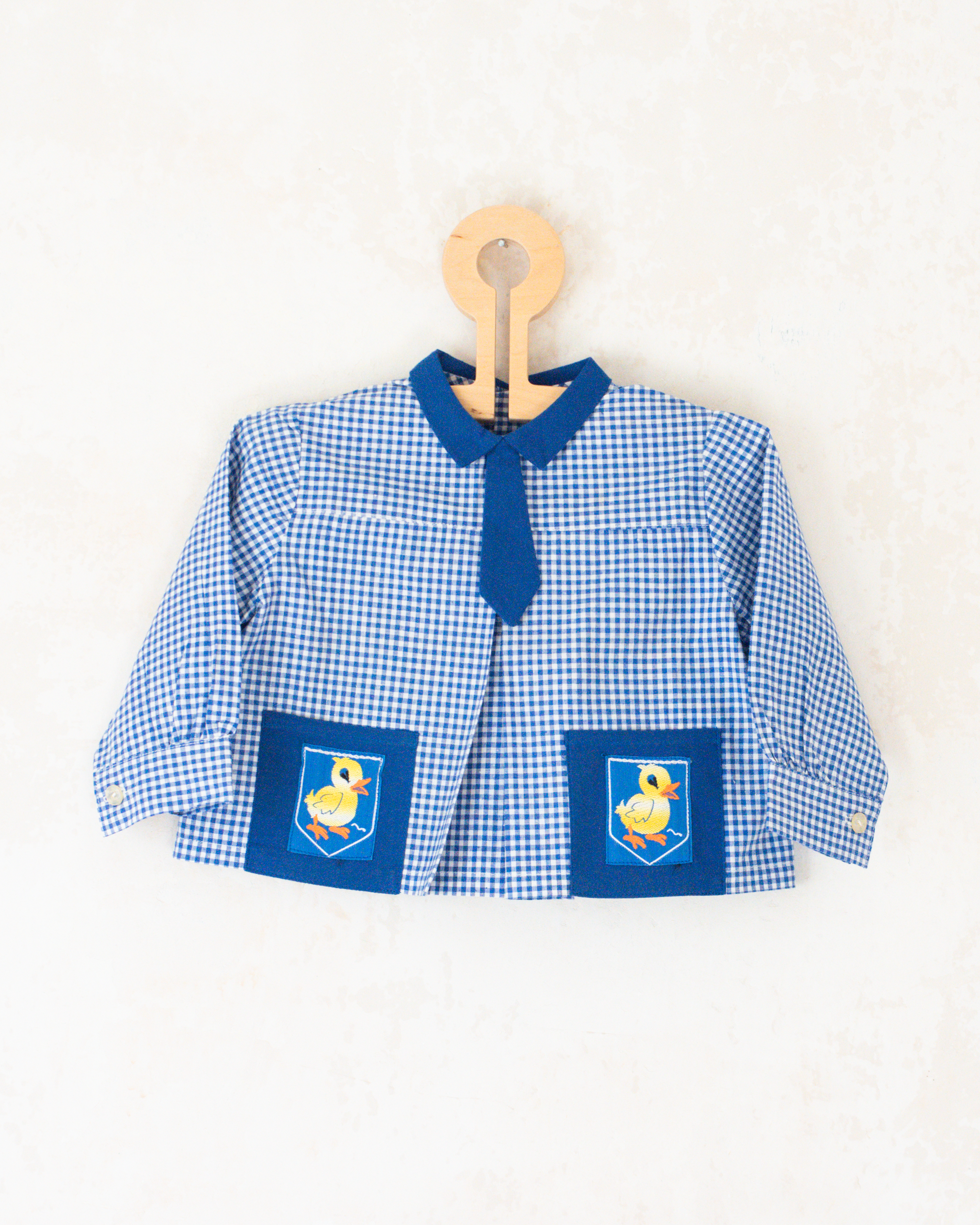 חולצה משובצת עם ברווזים בכיסים | דד סטוק צרפתי מהסיקסטיז | 12-18 חודשים