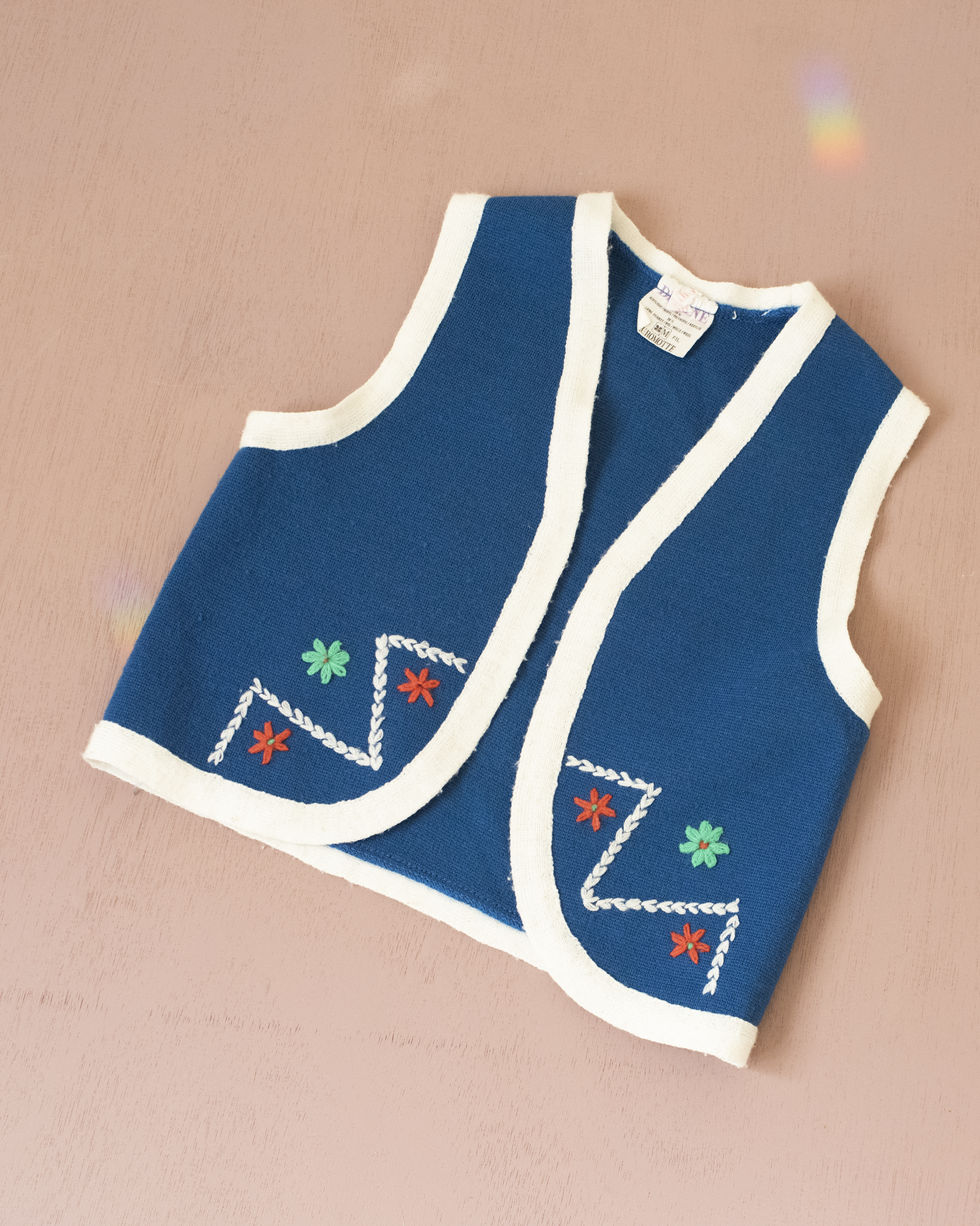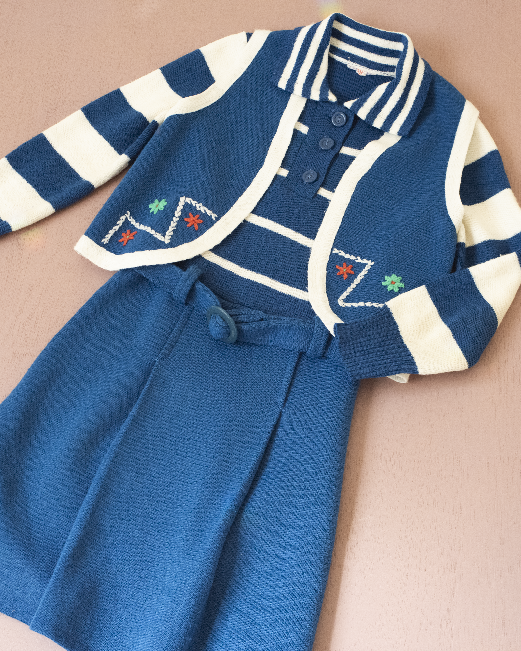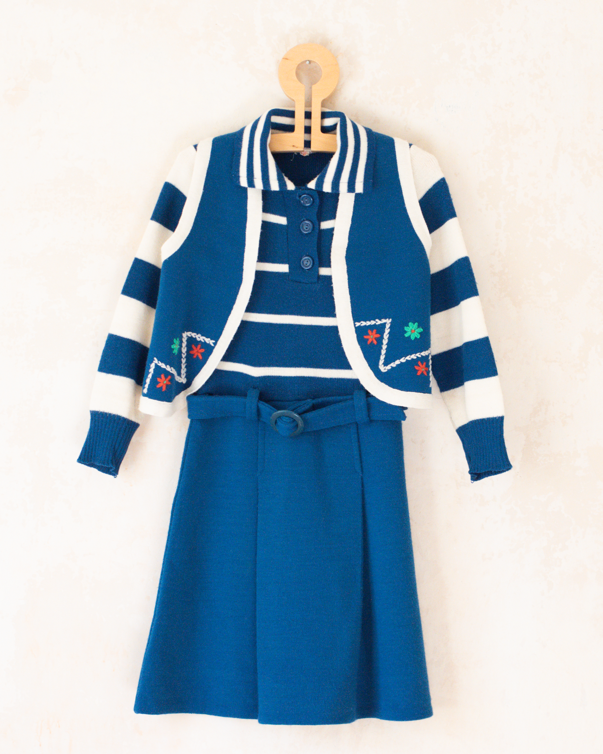 שמלה ואפודה בכחול ולבן עם פרחים | 5-6 שנים