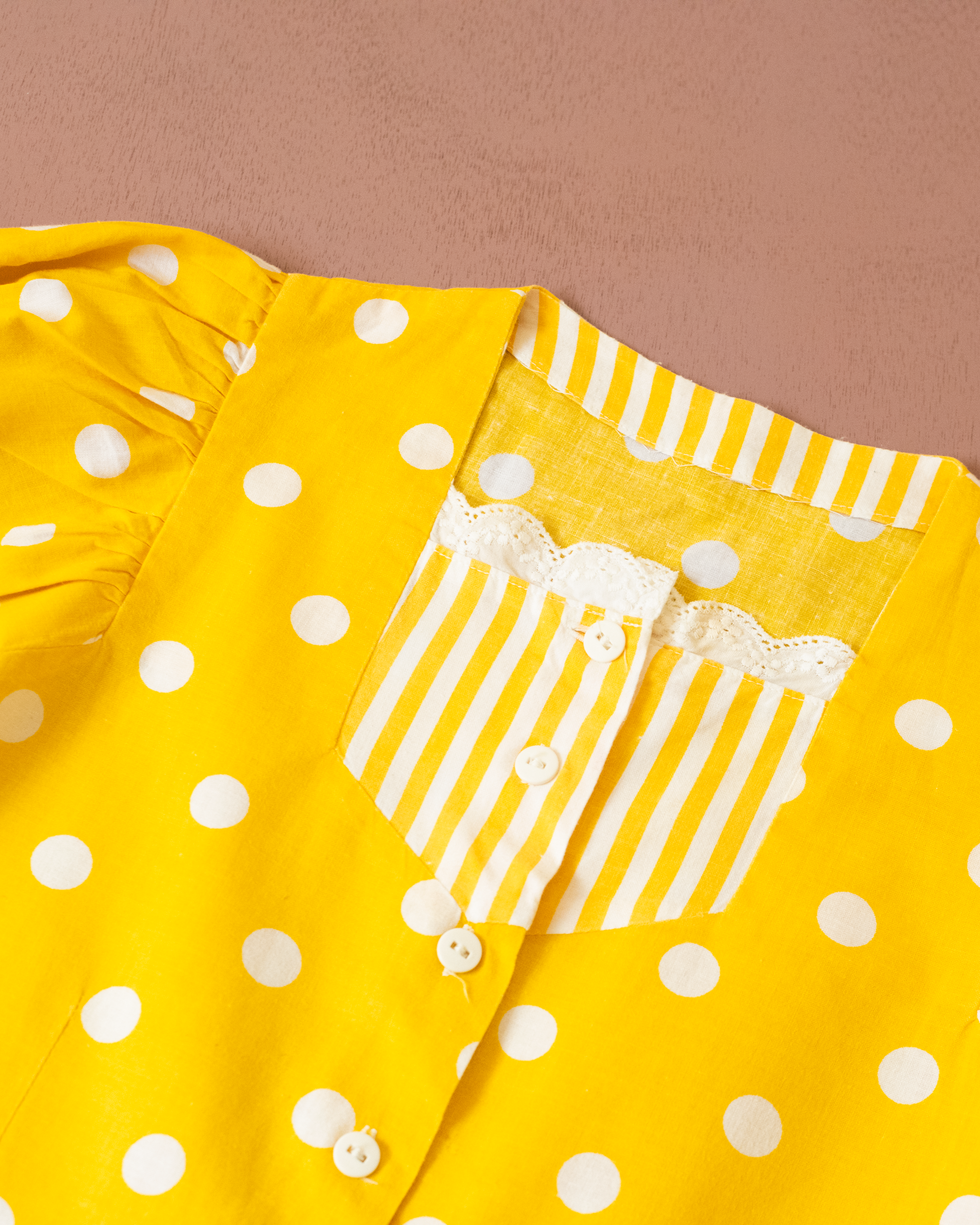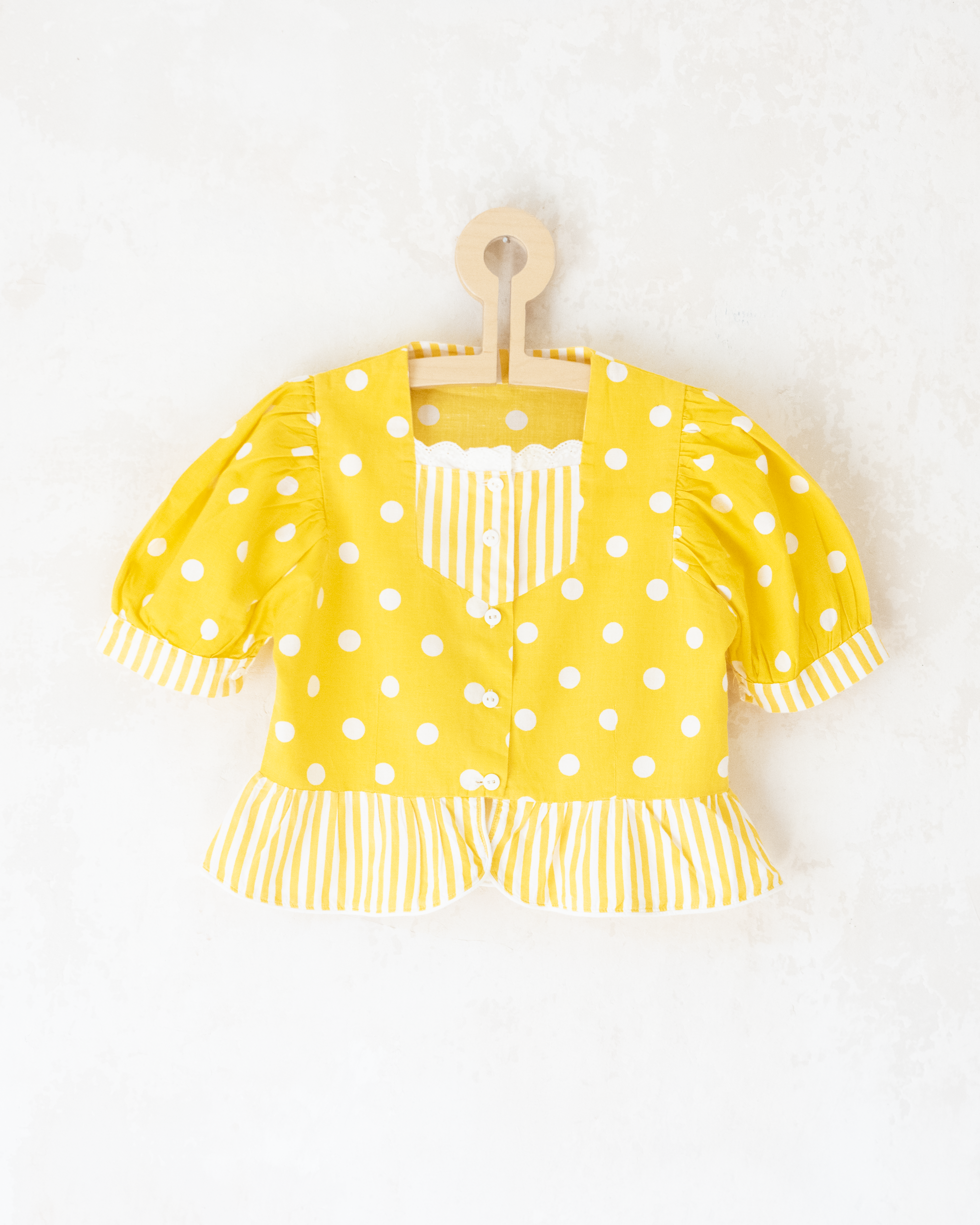 חולצת בטן צהובה עם פסים ונקודות | 10-11 שנים