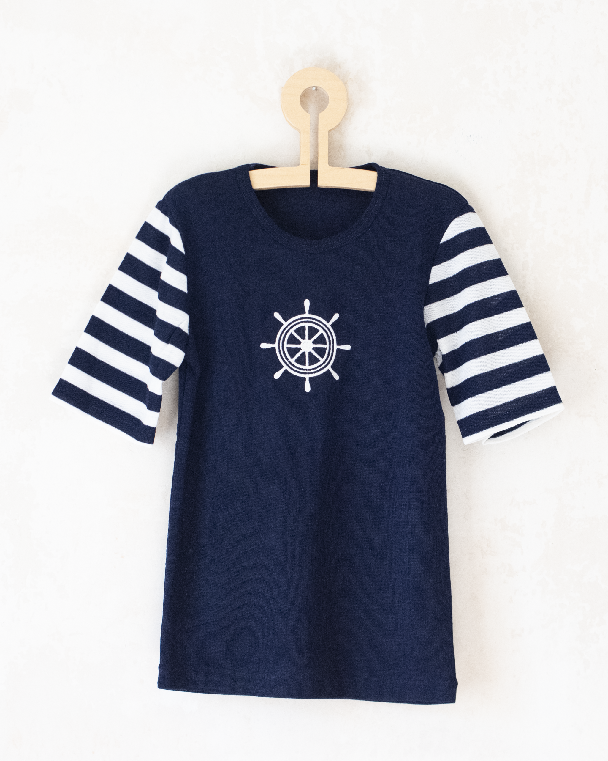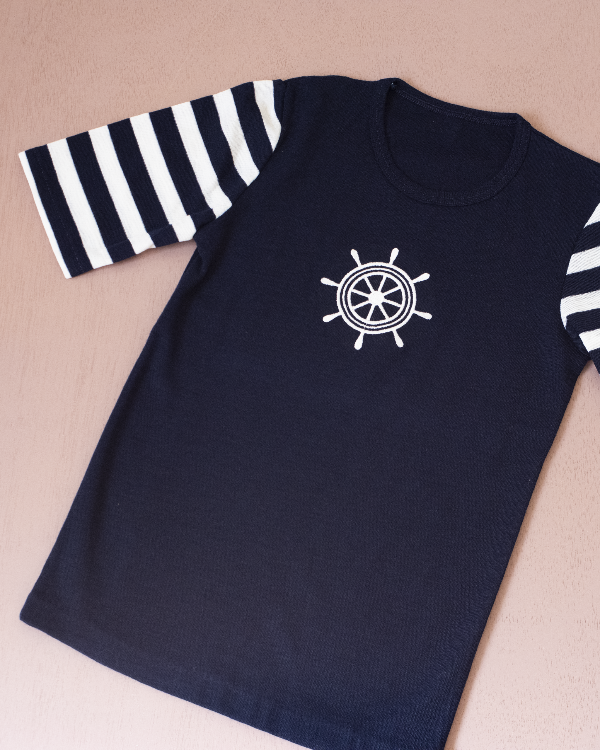 סריג ימאים לבן קצר עם עוגן | 10-14 שנים