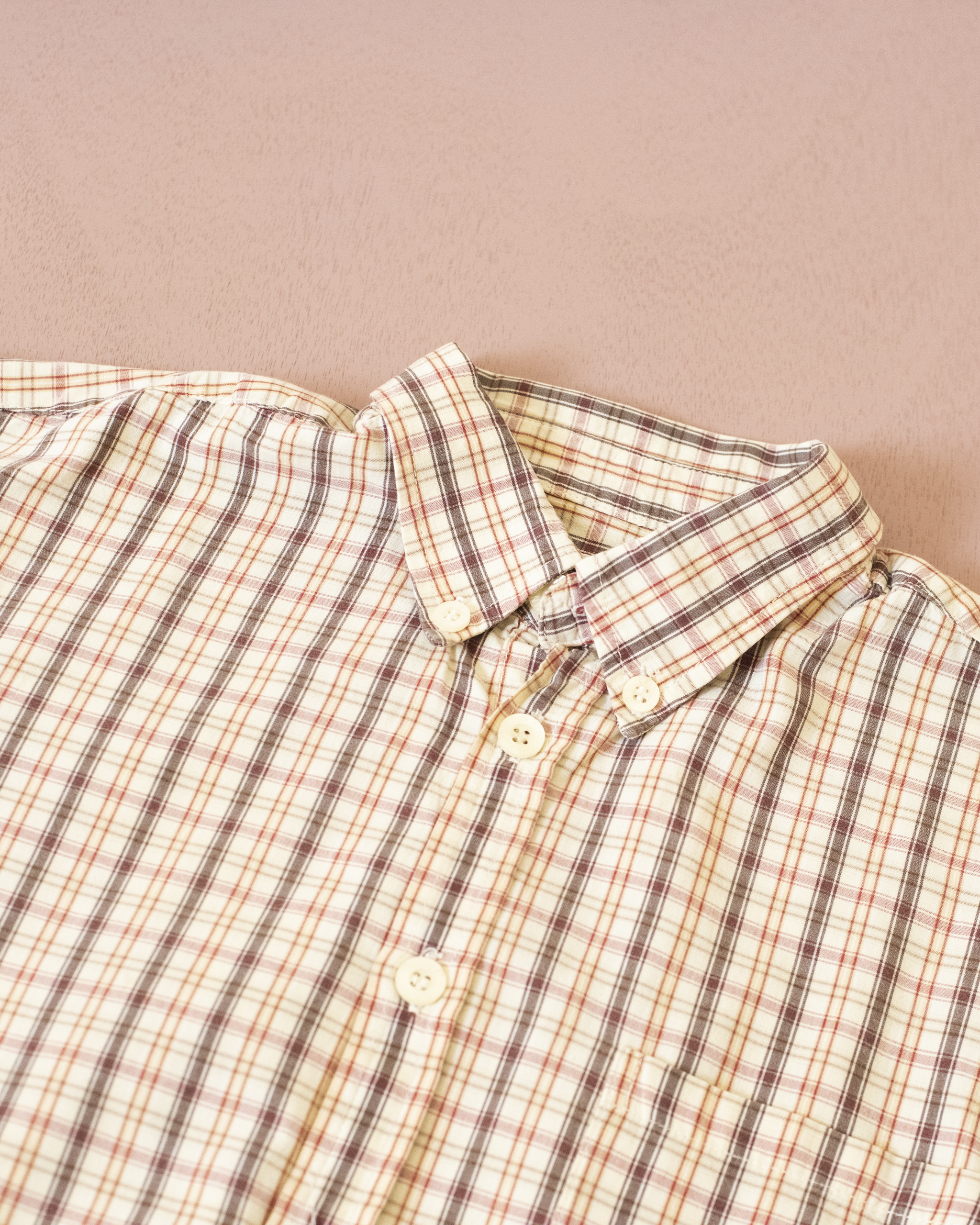 חולצה קצרה רחבה ומשובצת | דד סטוק צרפתי מהסבנטיז | 11-13 שנים