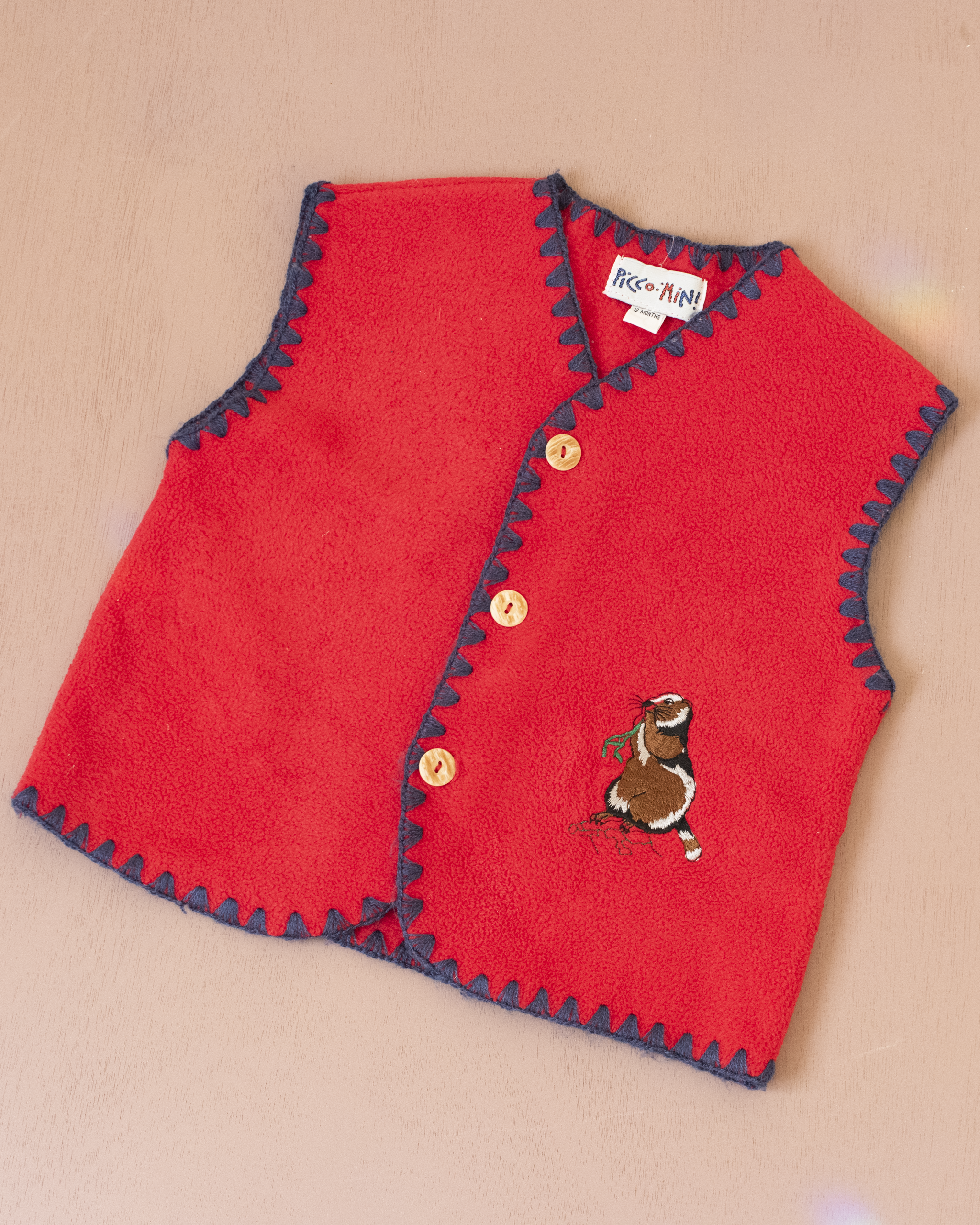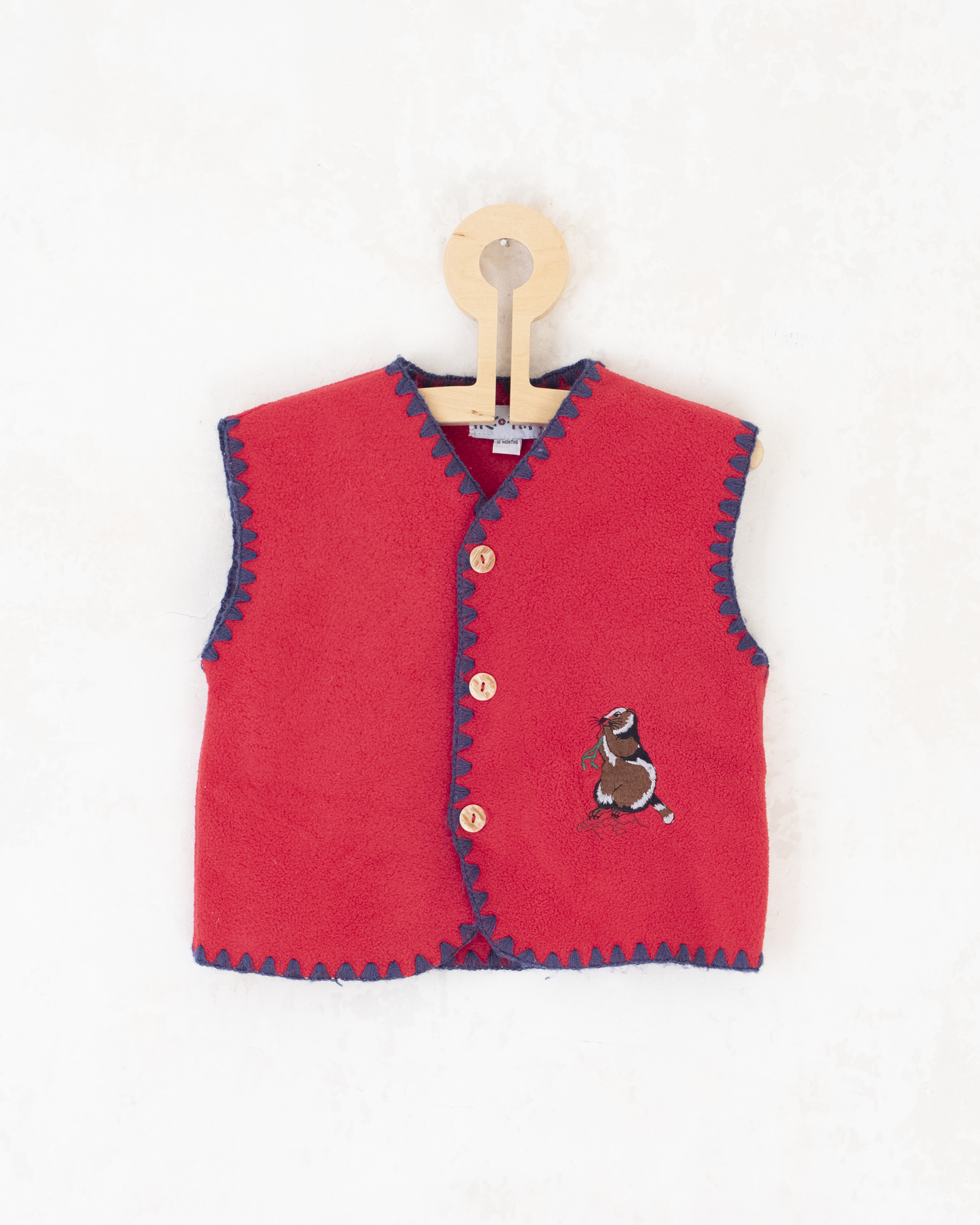 אפודת פליז אדומה עם רקמה של בונה | 12-18 חודשים