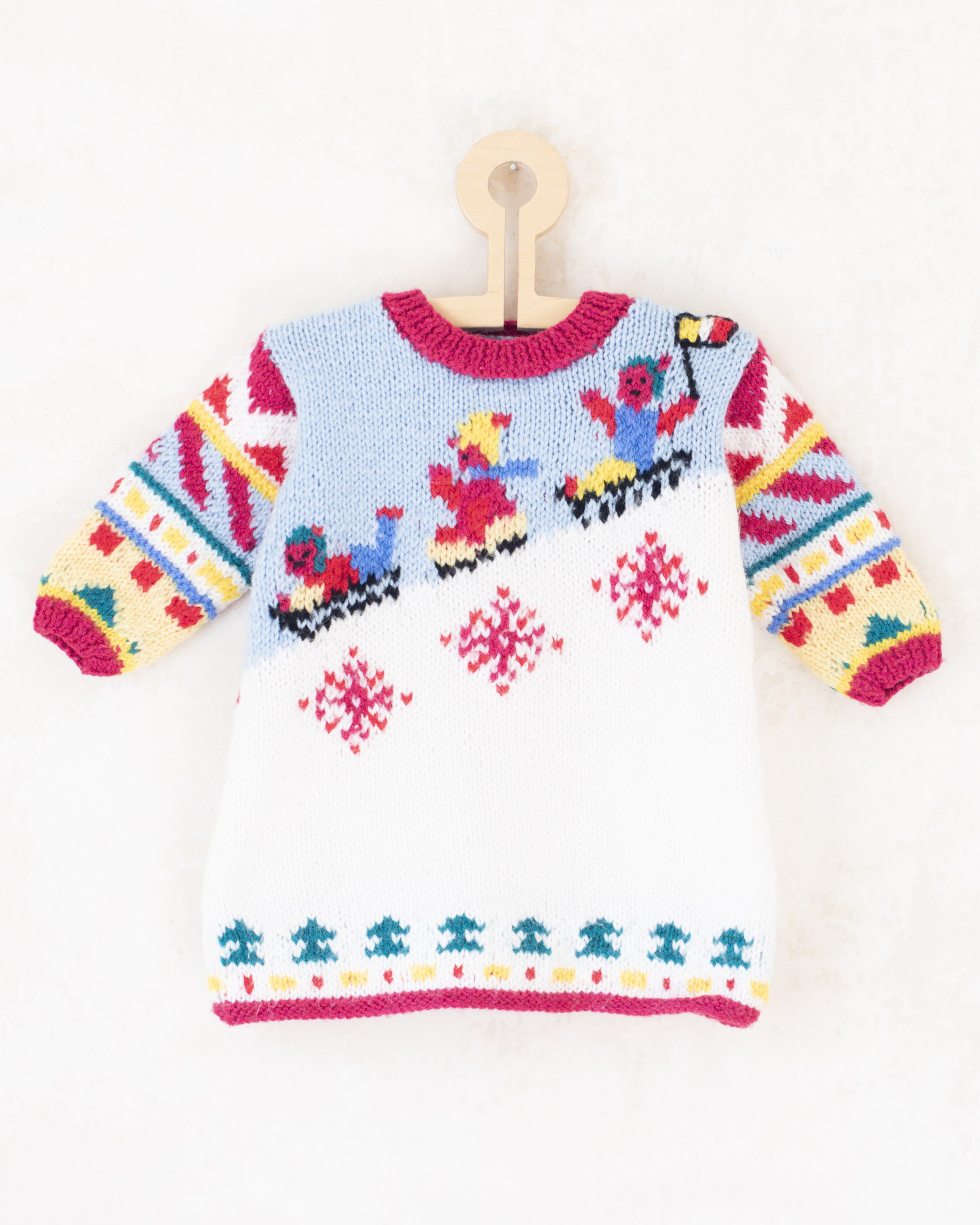 שמלה מצמר עם פתיתי שלג וילדים גולשים | 12-18 חודשים