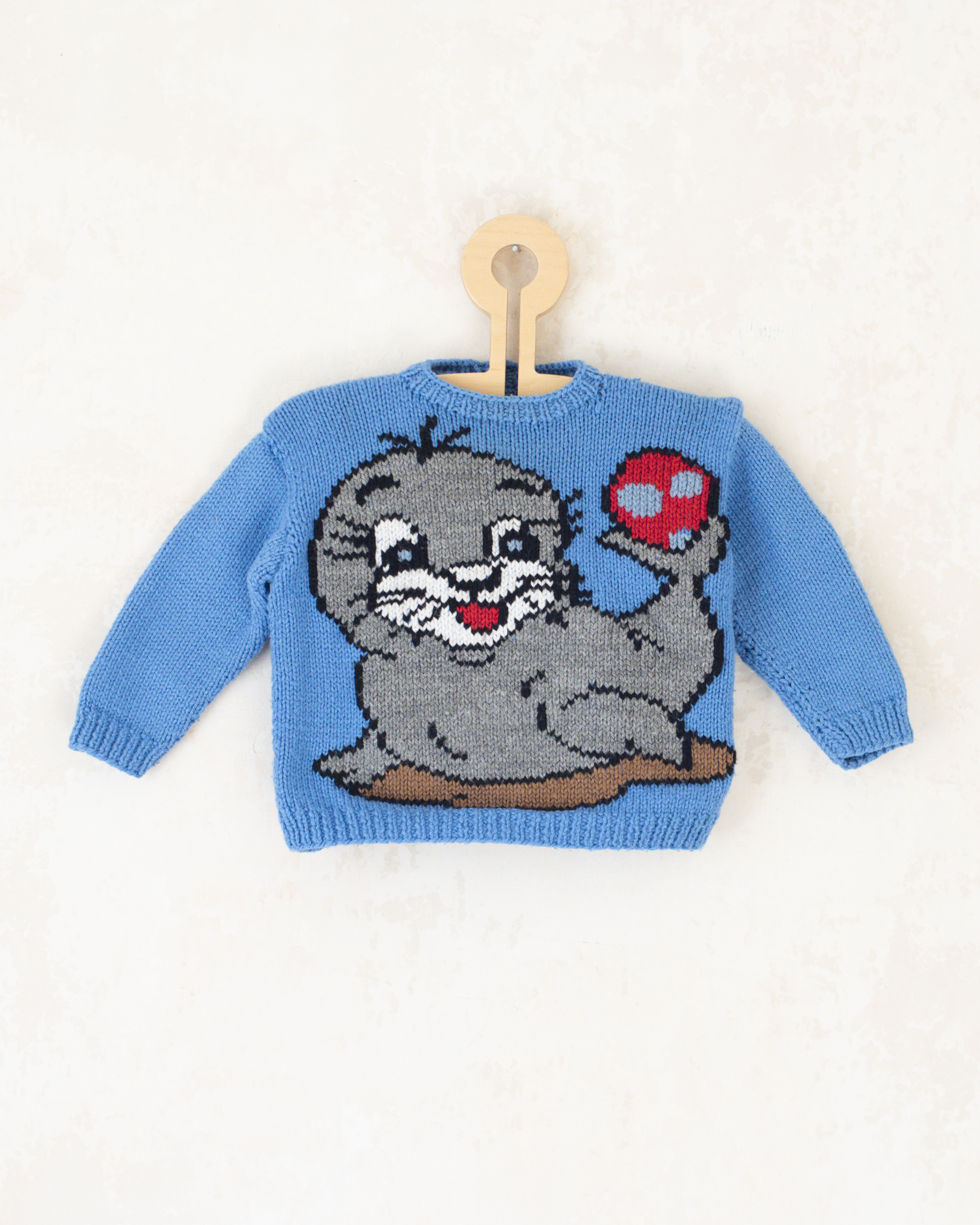 סוודר כחול עם כלב ים | 12-18 חודשים