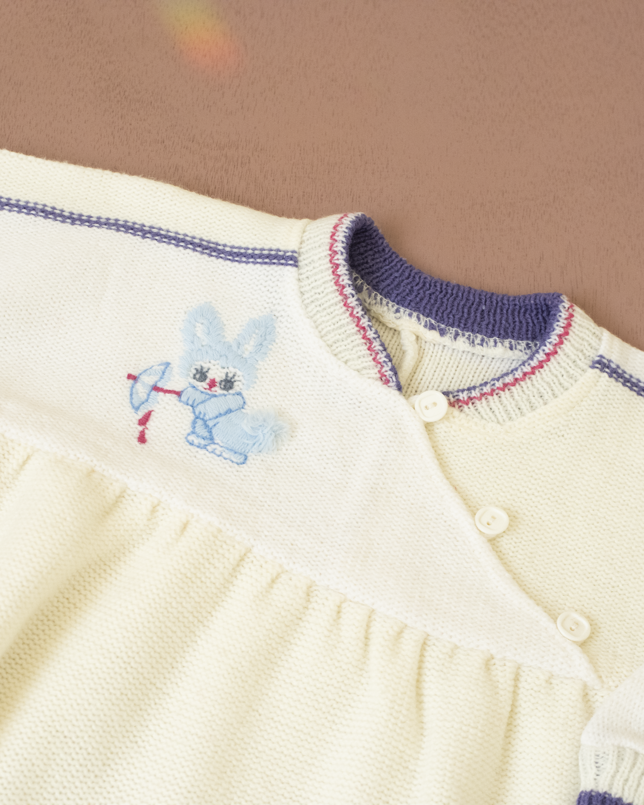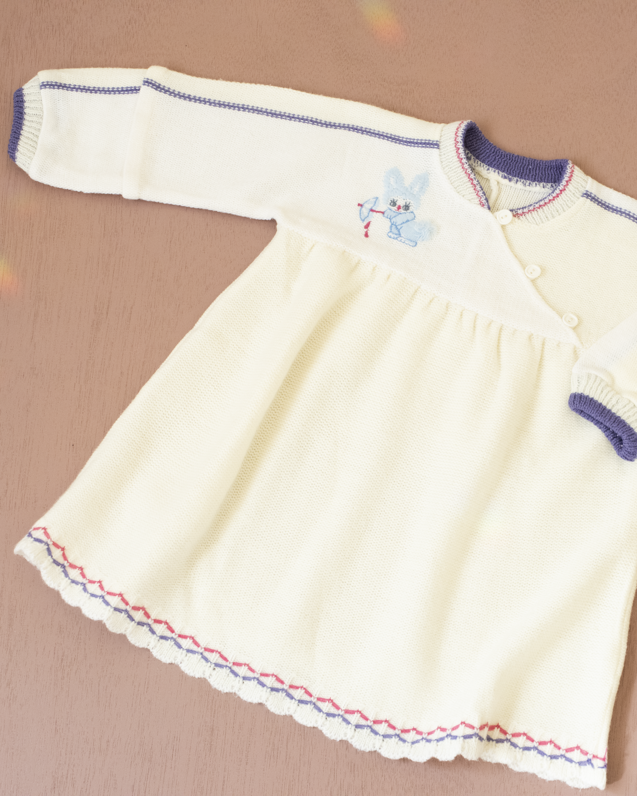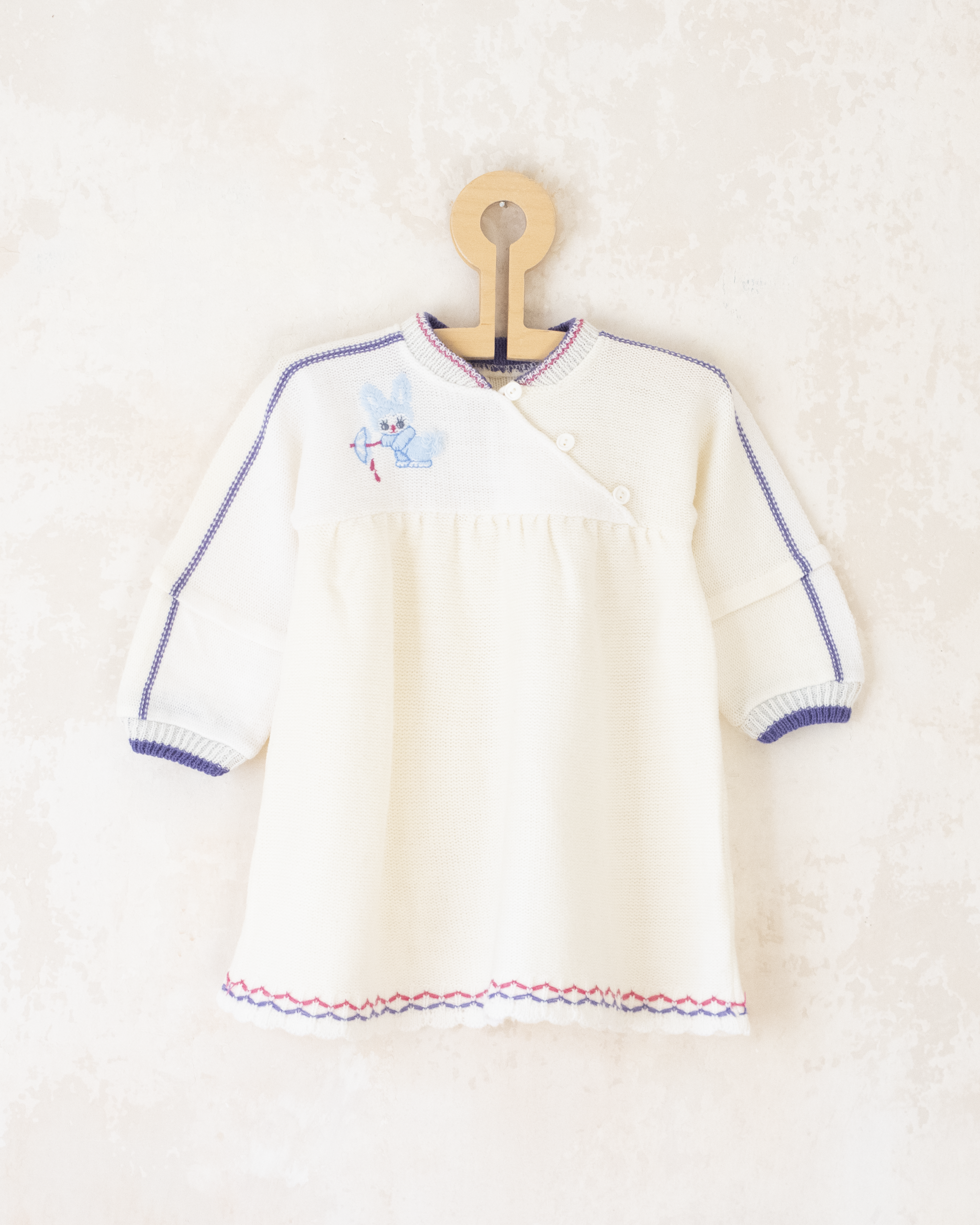 שמלת צמר לבנה עם ארנב ומטריה | 12-18 חודשים