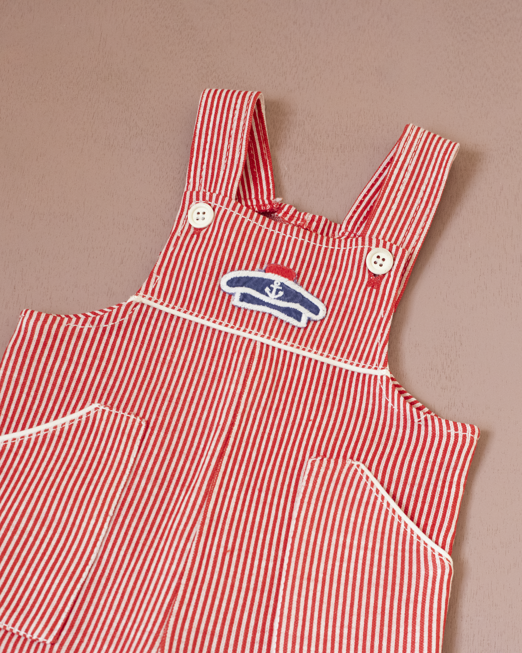 אוברול אדום עם פסים וכובע ימאים | 12-18 חודשים