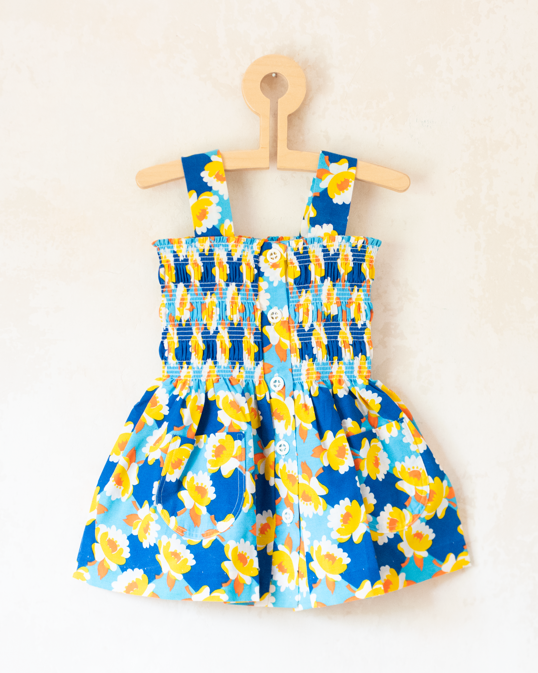 שמלת צמר כחולה עם פרחים | דד סטוק ספרדי | 12-18 חודשים