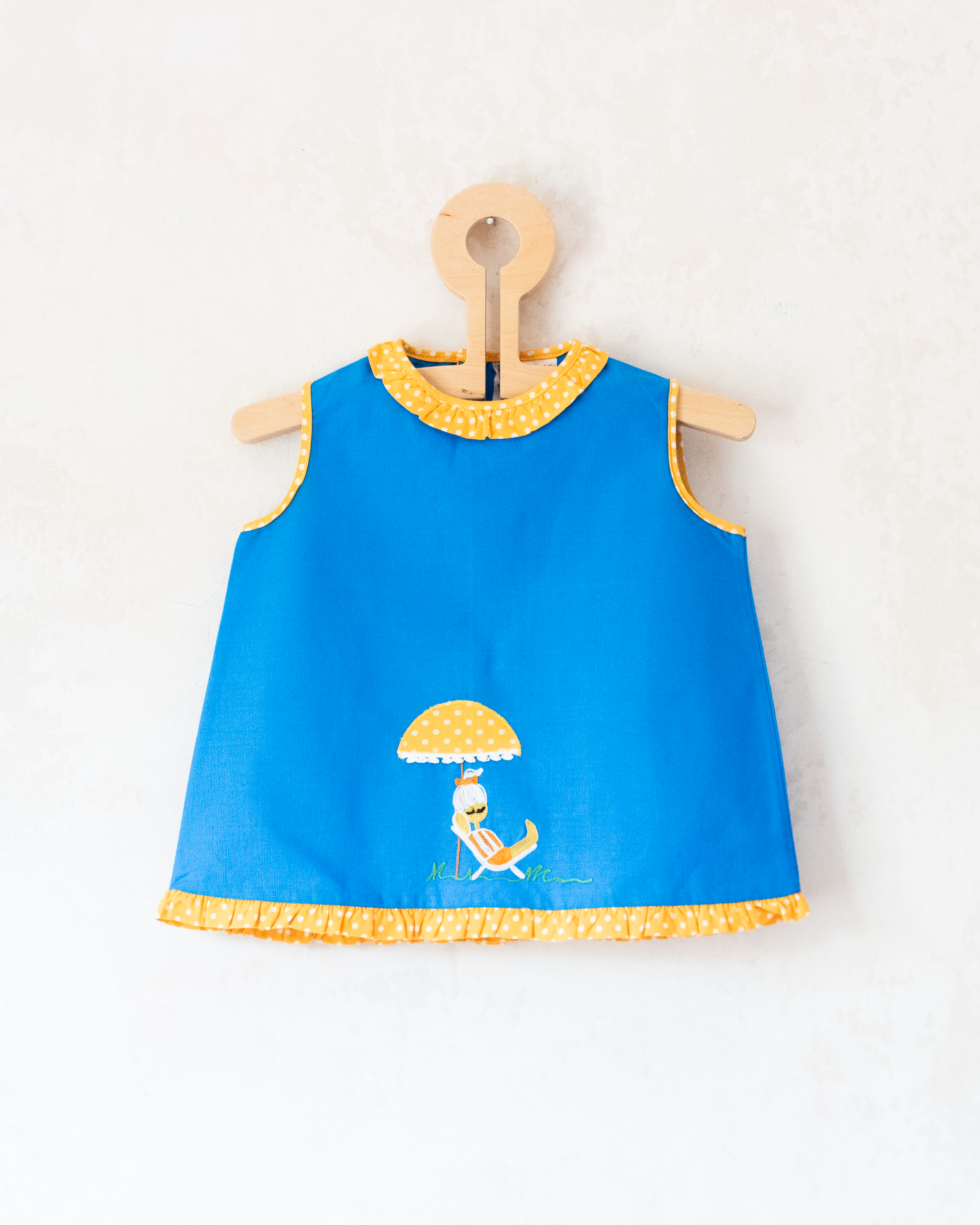 שמלת פפיטה ארוכה עם תרנגולות רקומות על הצווארון | 12-18 חודשים