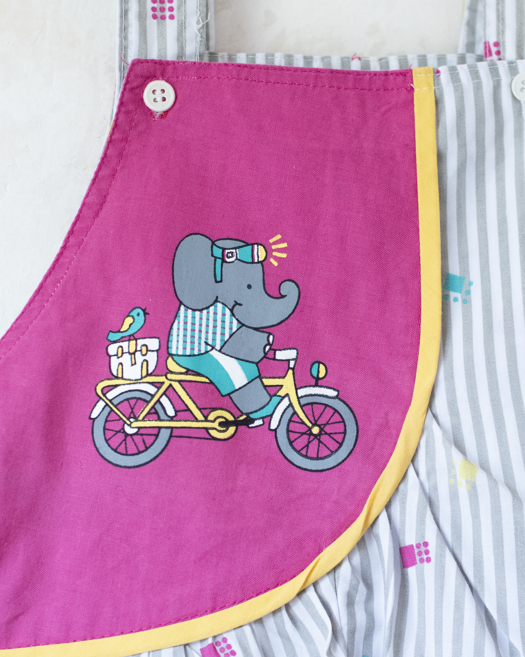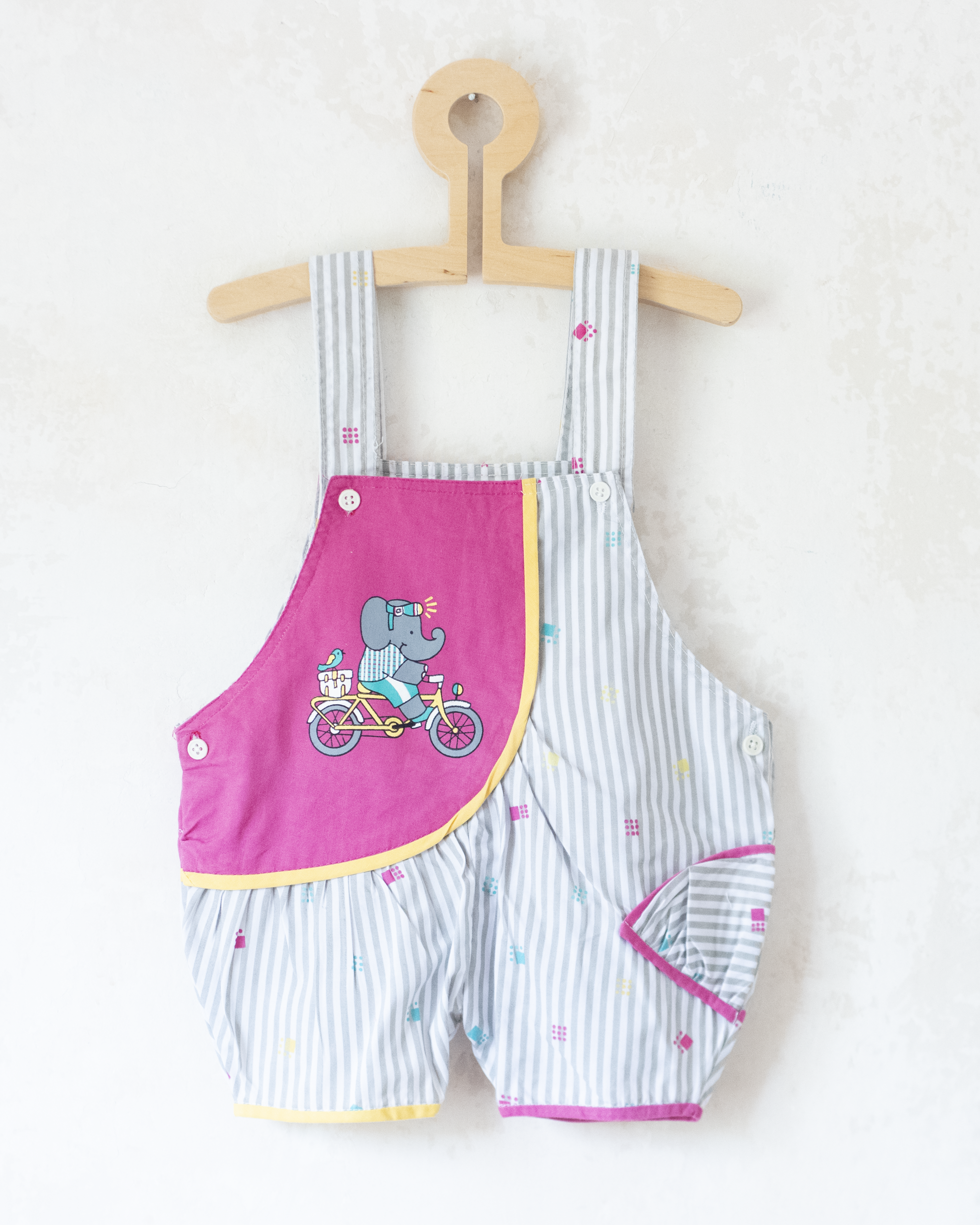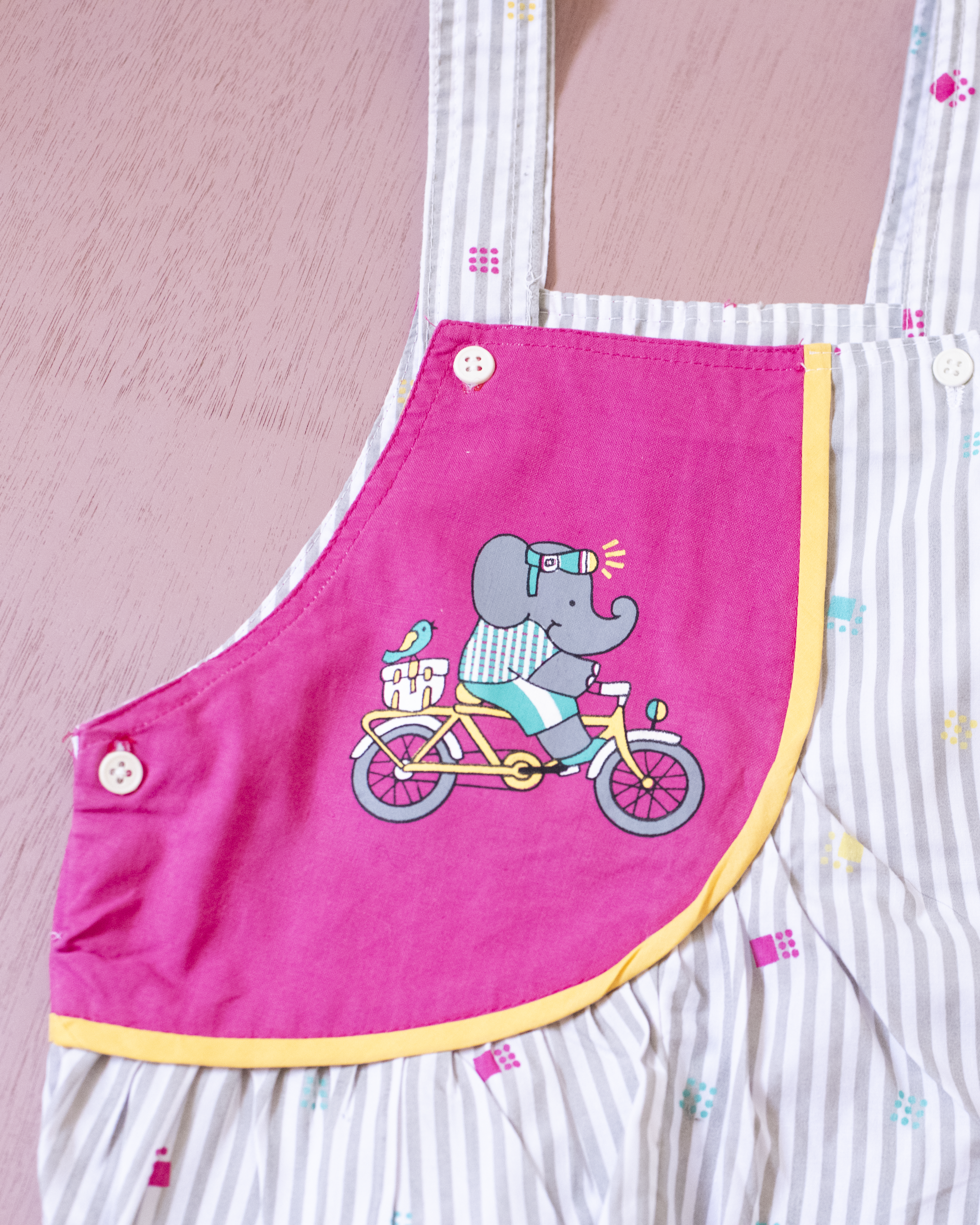 עם פסים לאורכו בשילוב ורוד והדפס של המלך בבר רוכב על אופניים