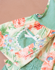 בהדפס משבצות קטנות בירוק ולבן בשילוב פרחים ותחרה לבנה