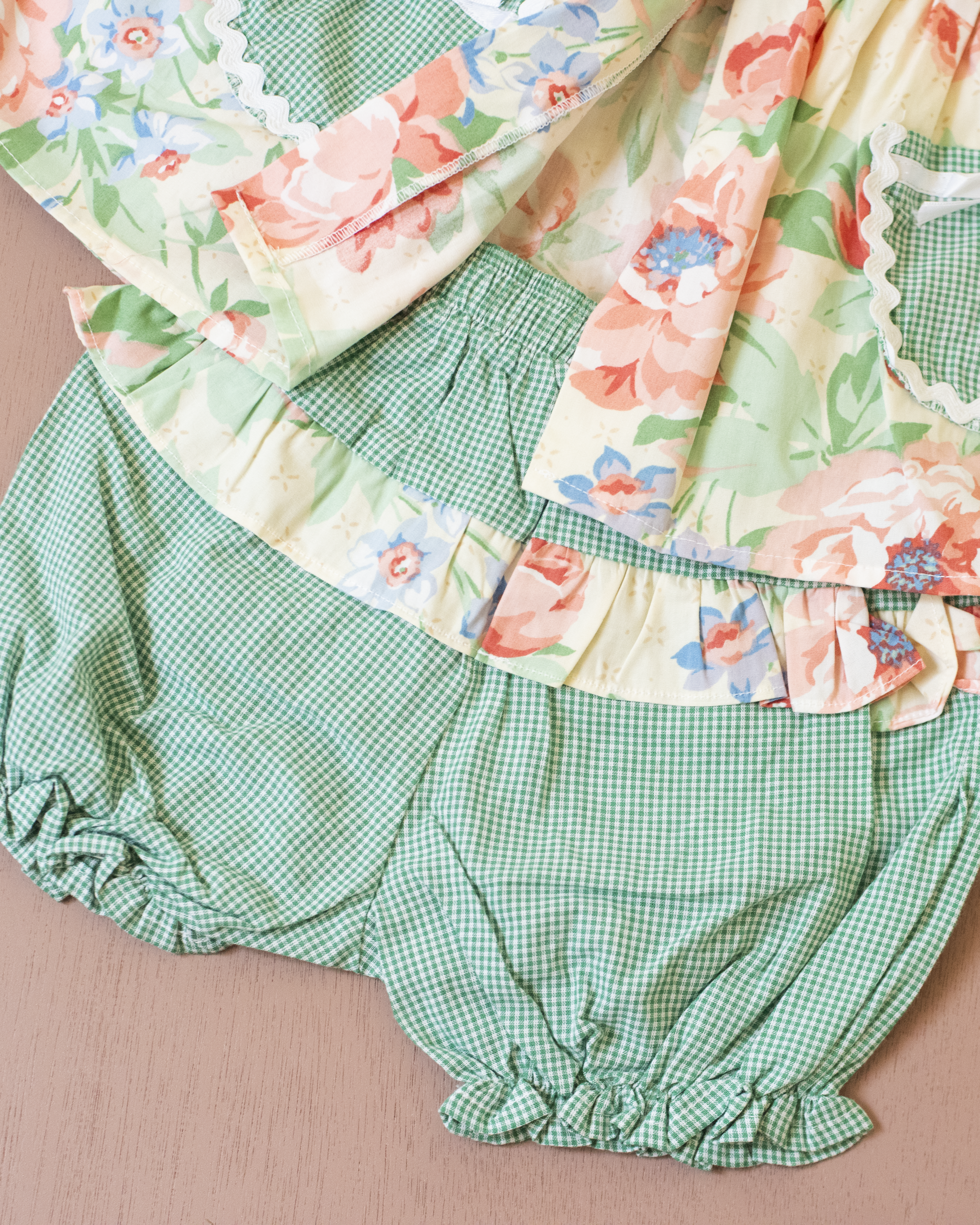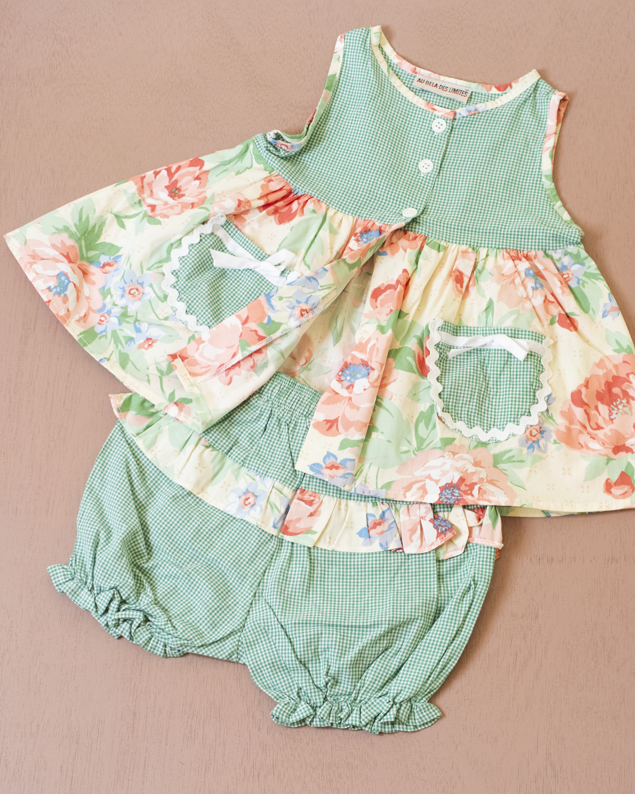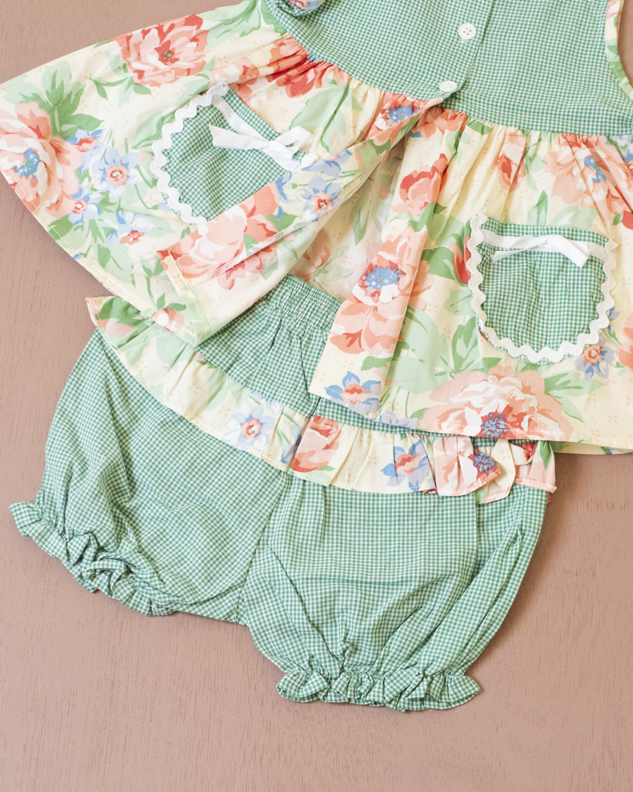 סט וינטג׳ עם משבצות ופרחים | 12-18 חודשים