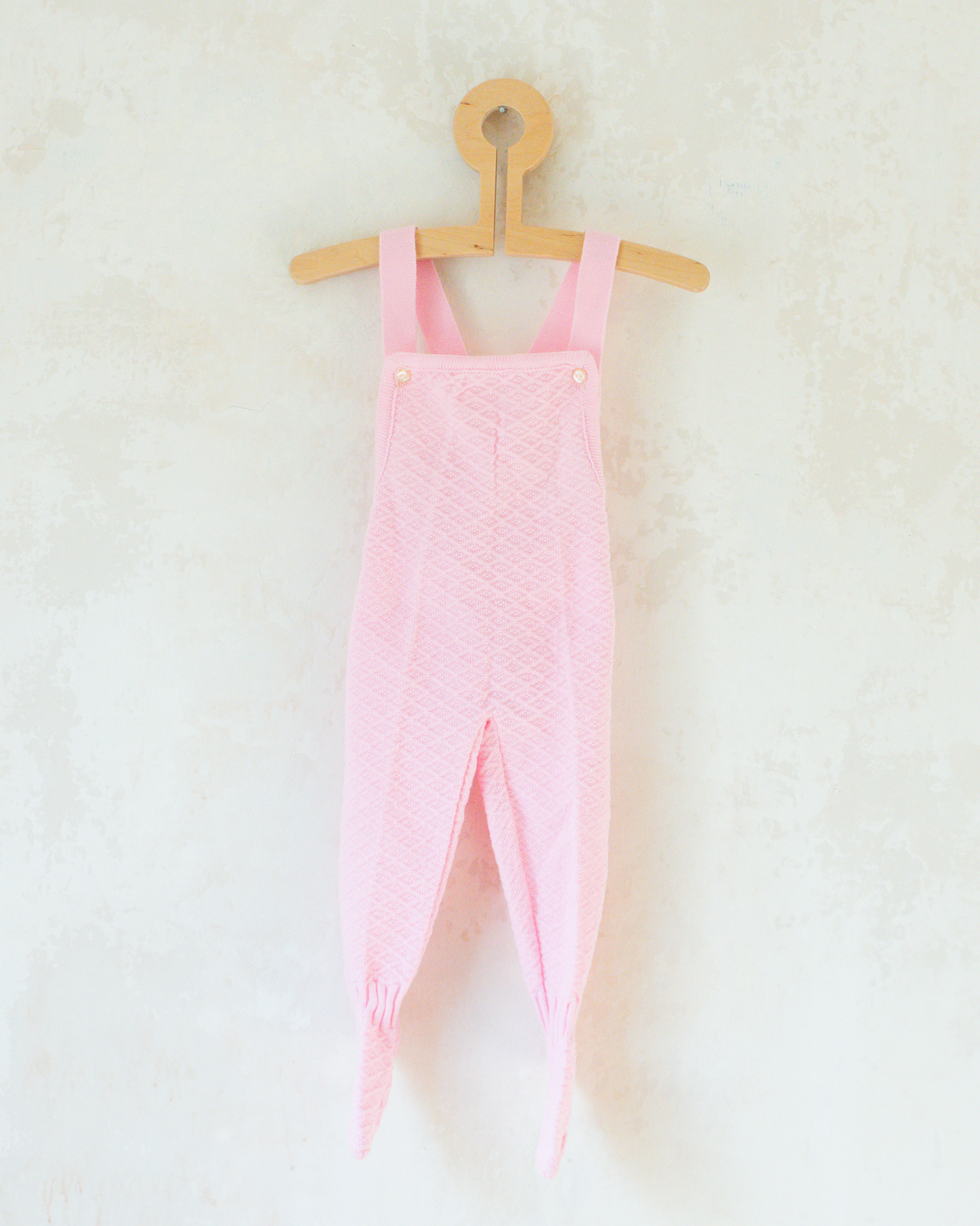 אוברול ורוד סרוג עם רגליות | דד סטוק צרפתי | 12-18 חודשים