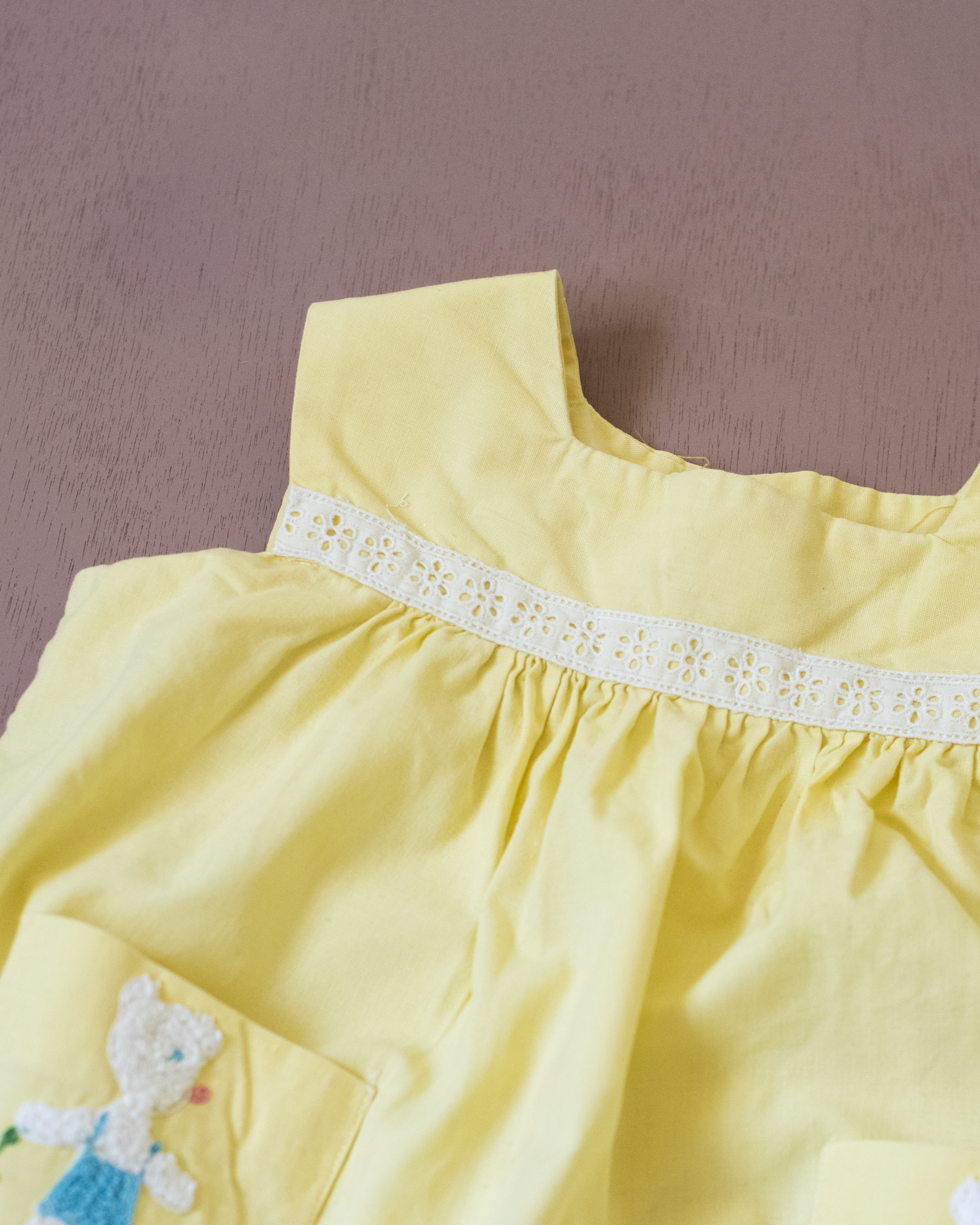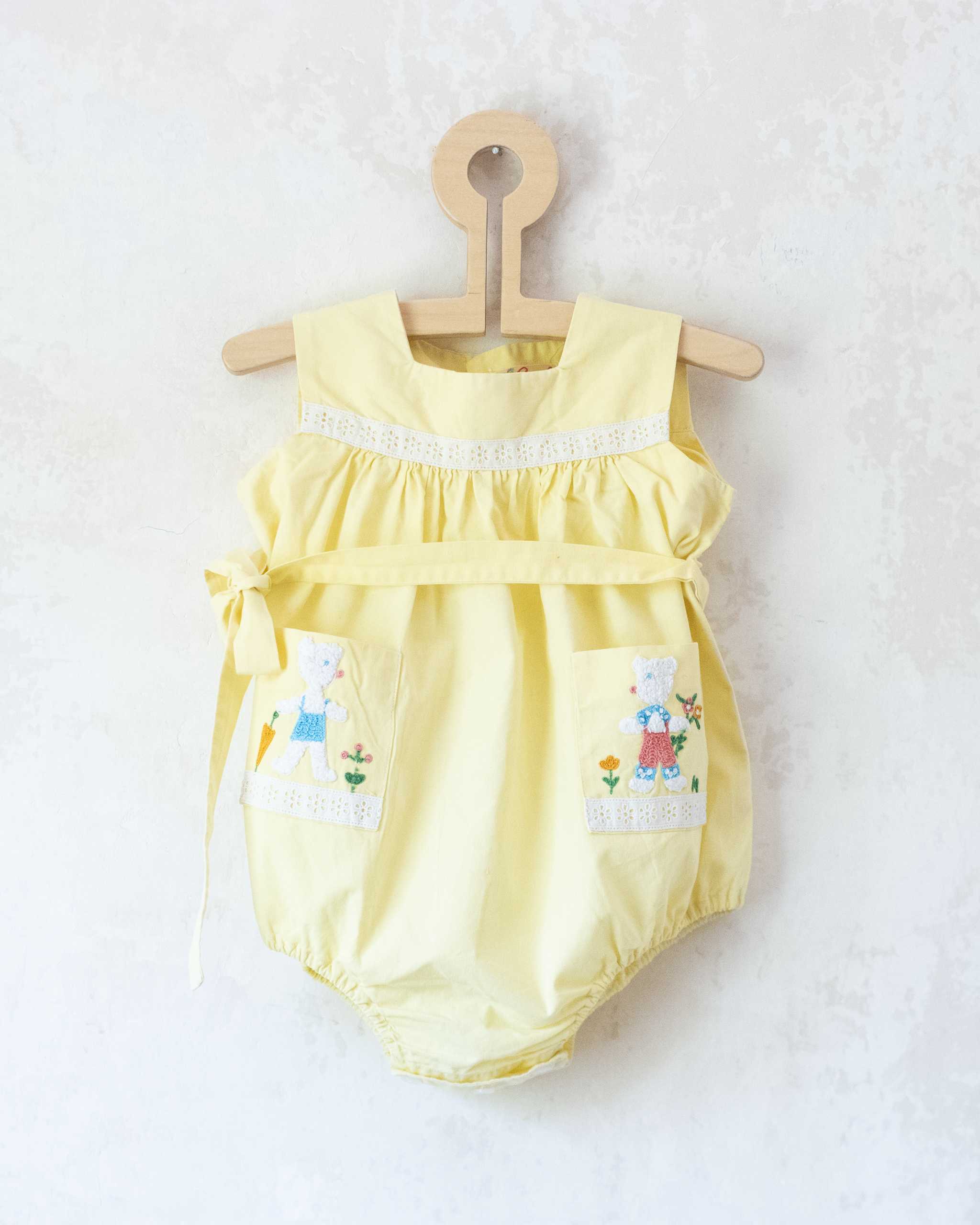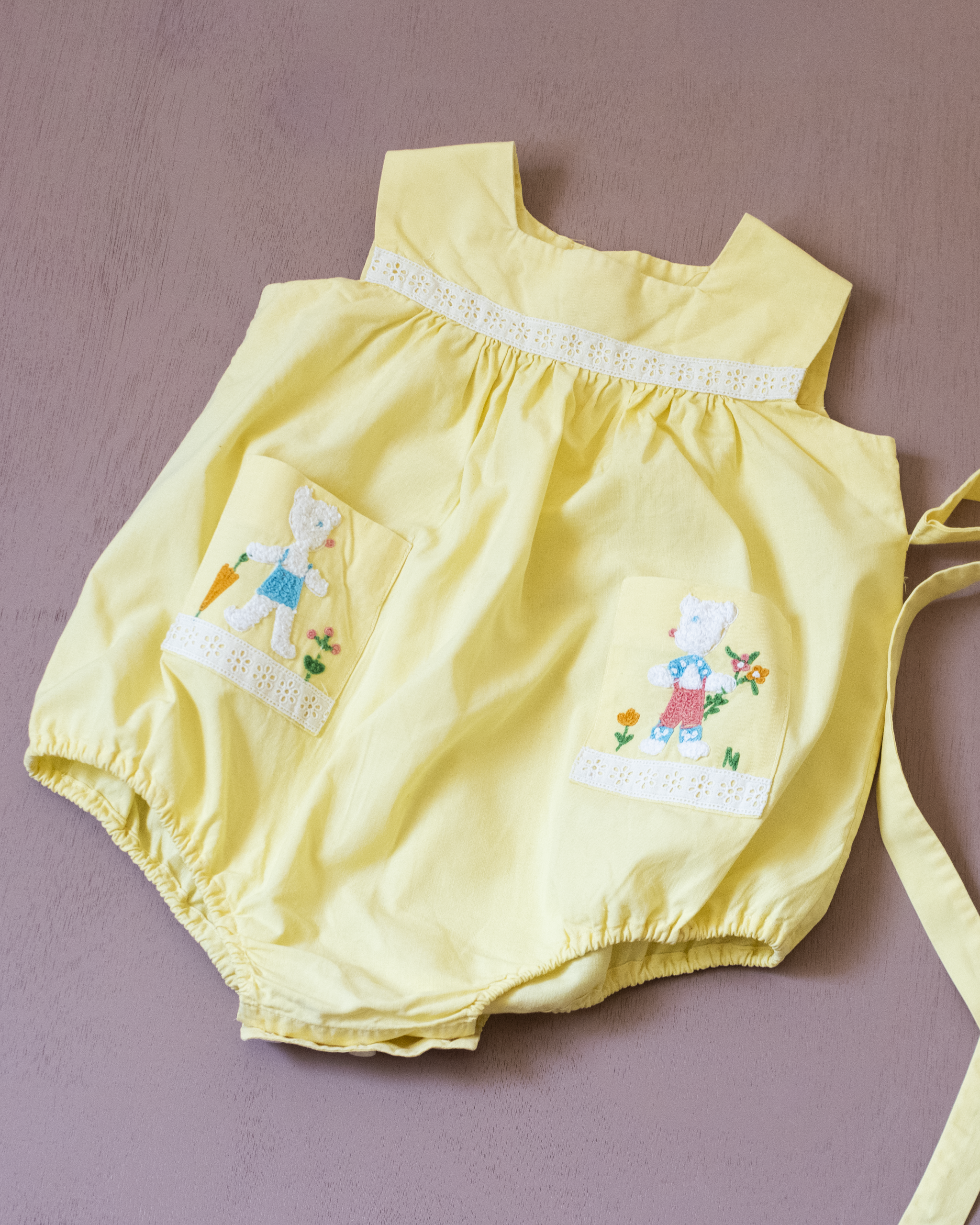 רומפר צהוב צרפתי משנות ה50 עם רקמת דובים | 12-18 חודשים