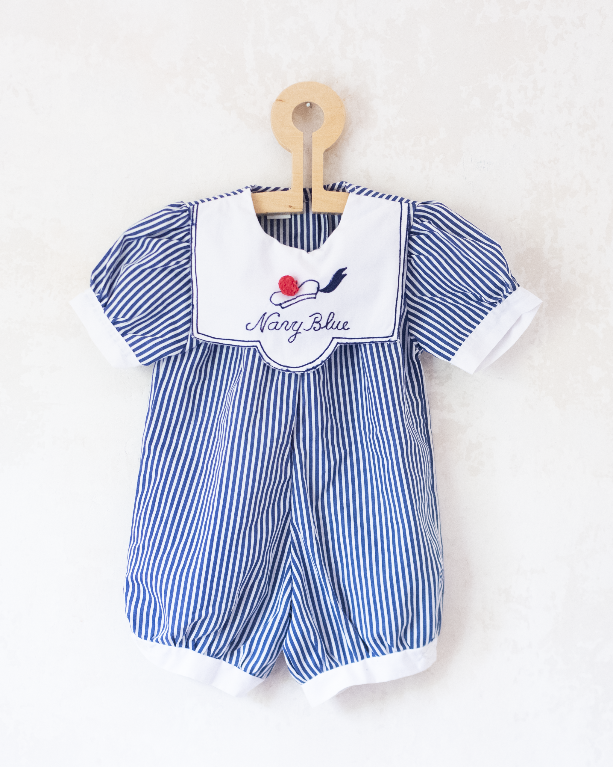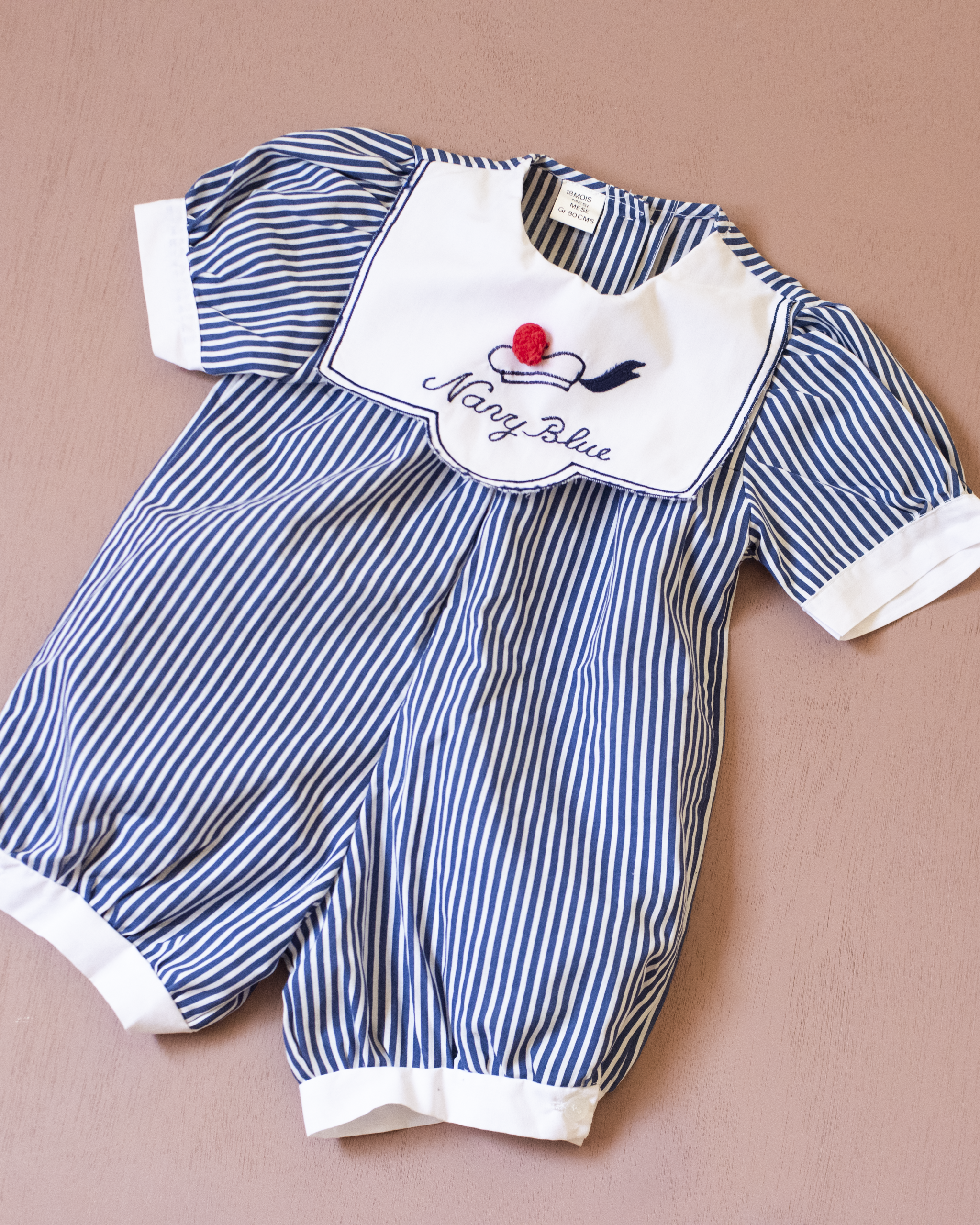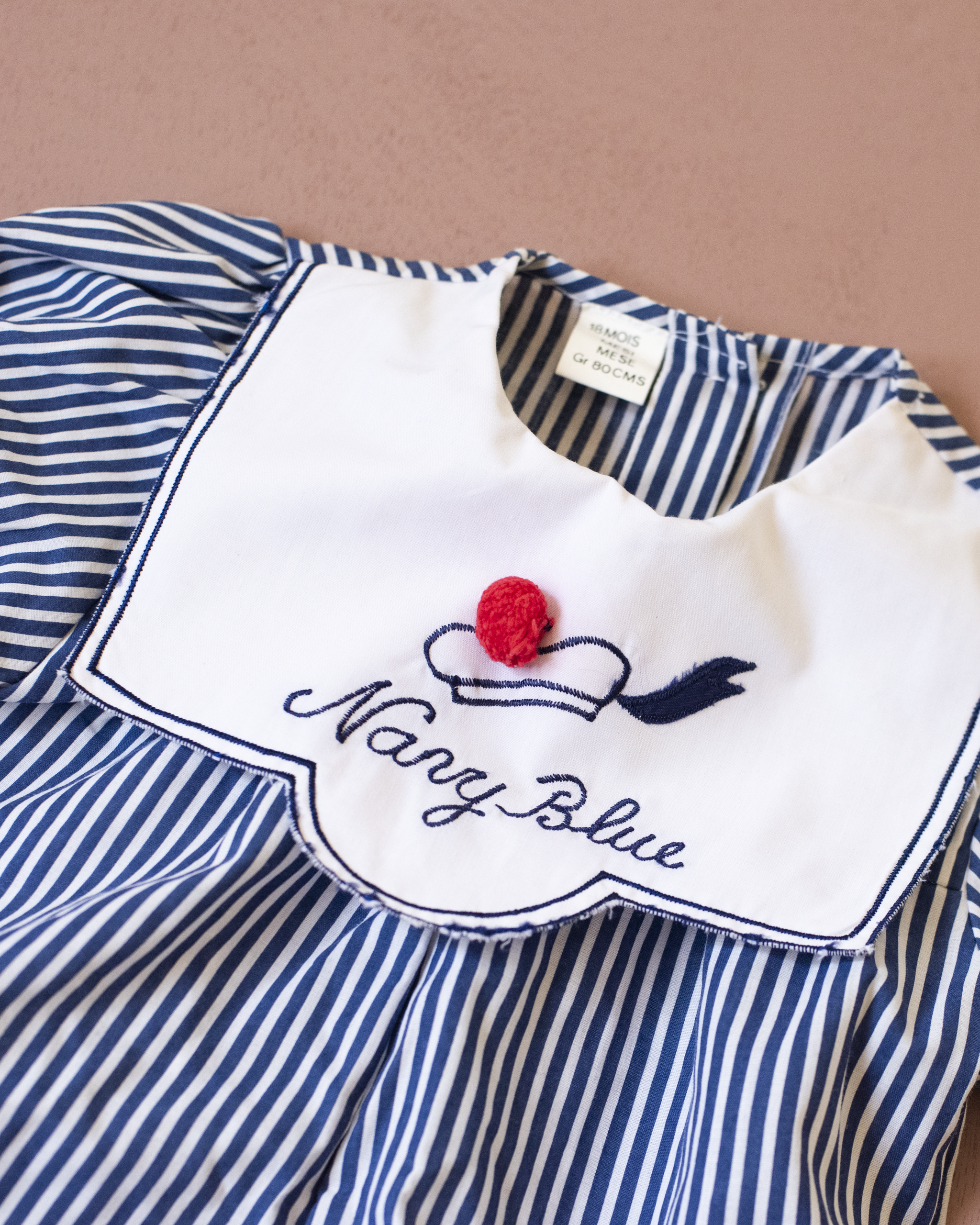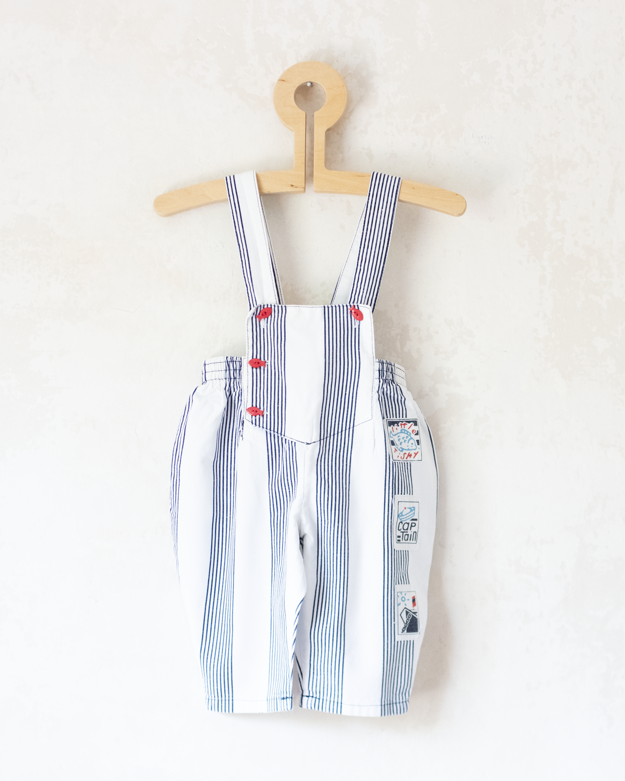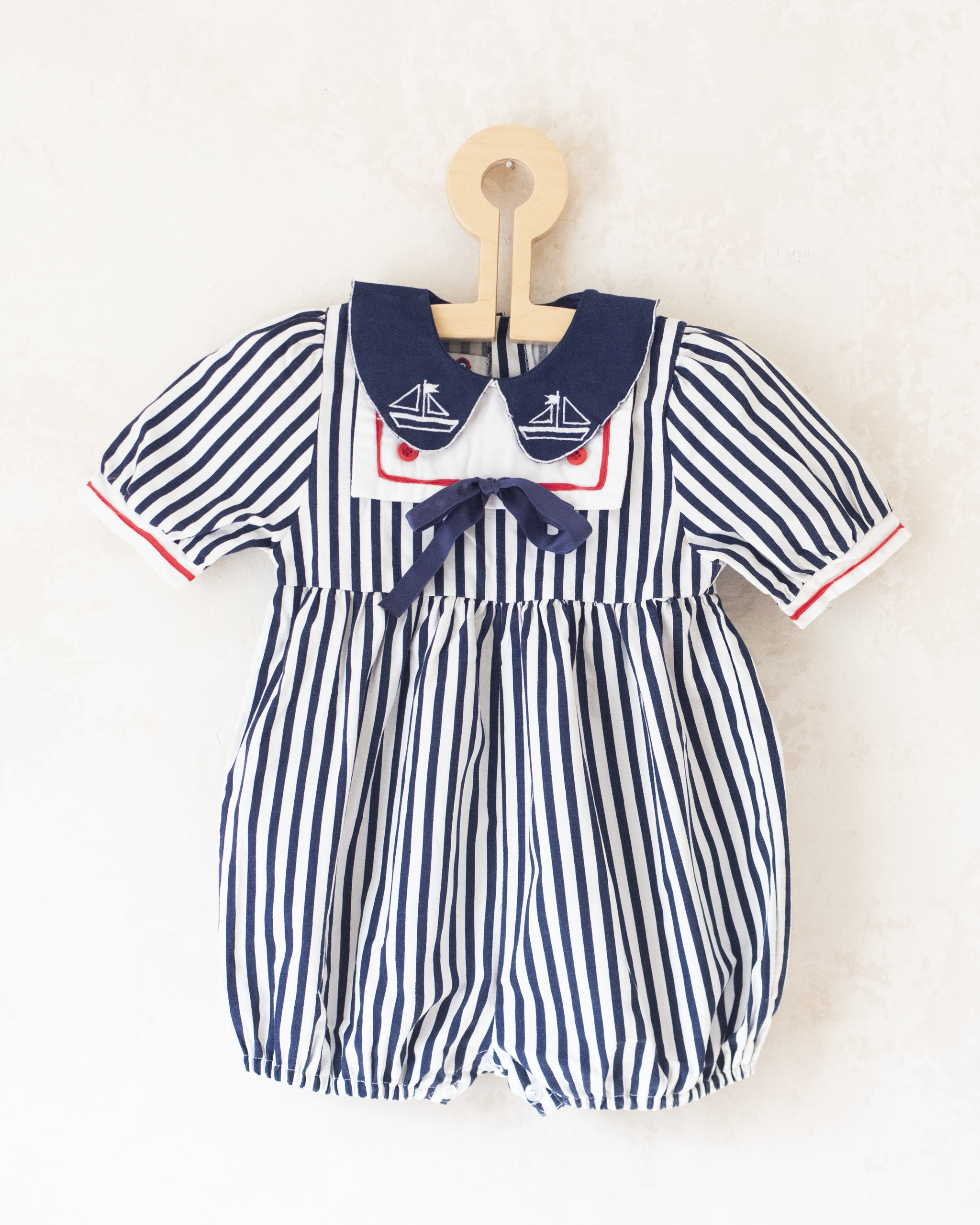 אוברול ימאים עם פסים וספינות רקומות | 12-18 חודשים