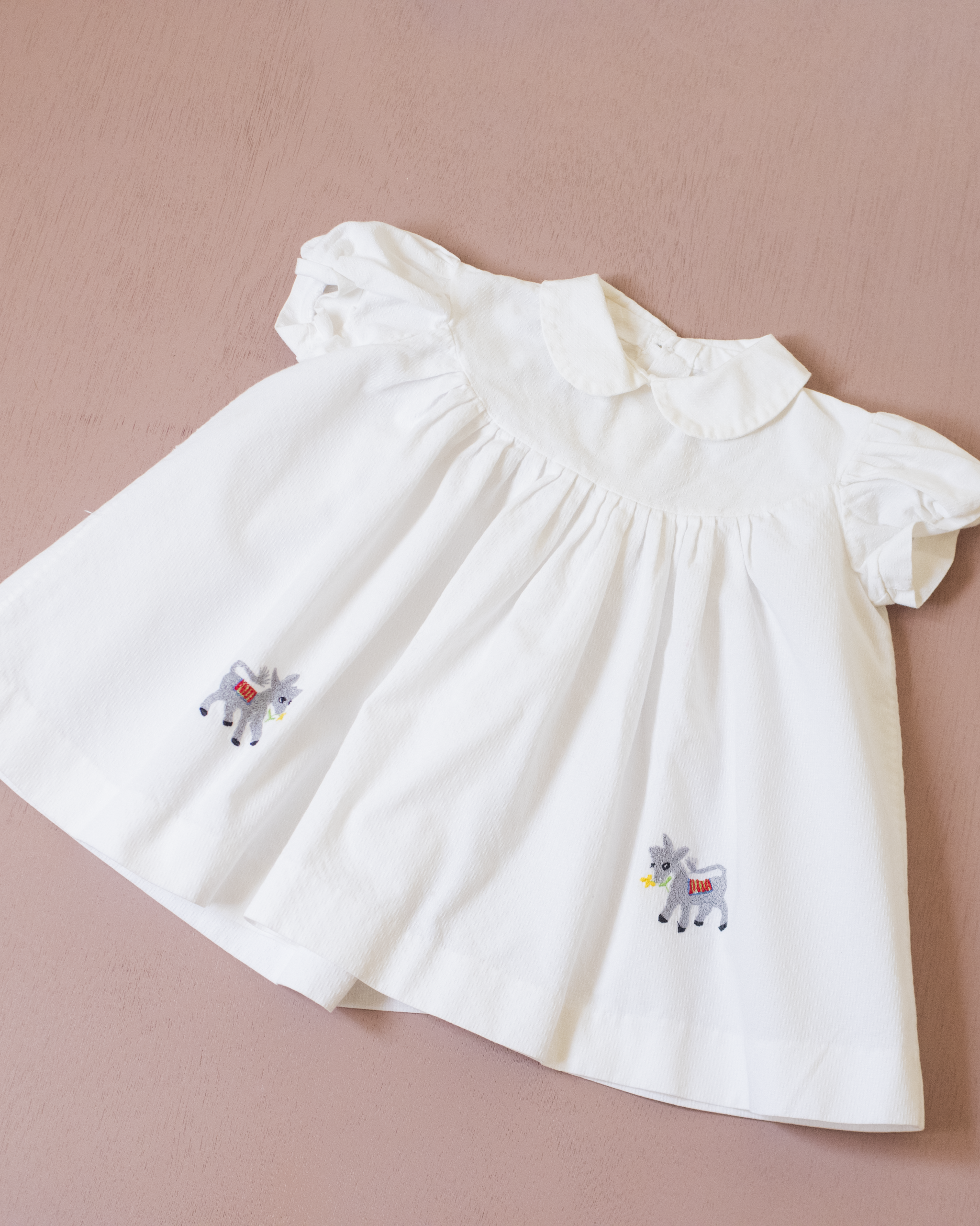 טוניקה לבנה עם חמורים רקומים | 12-18 חודשים