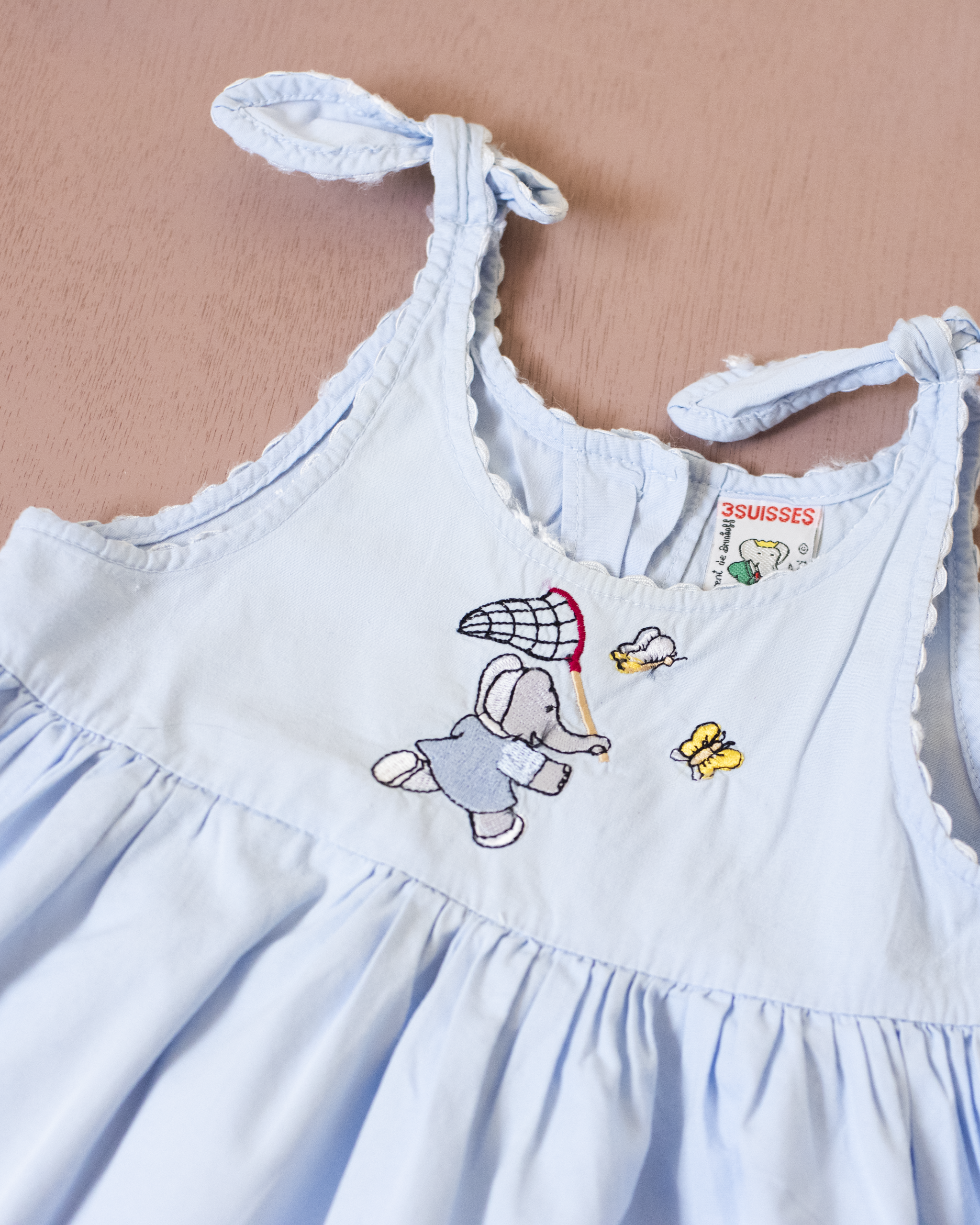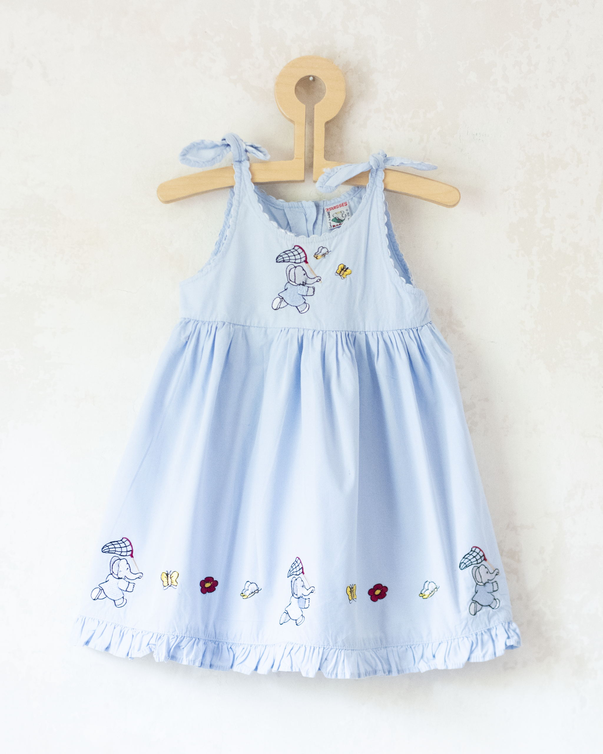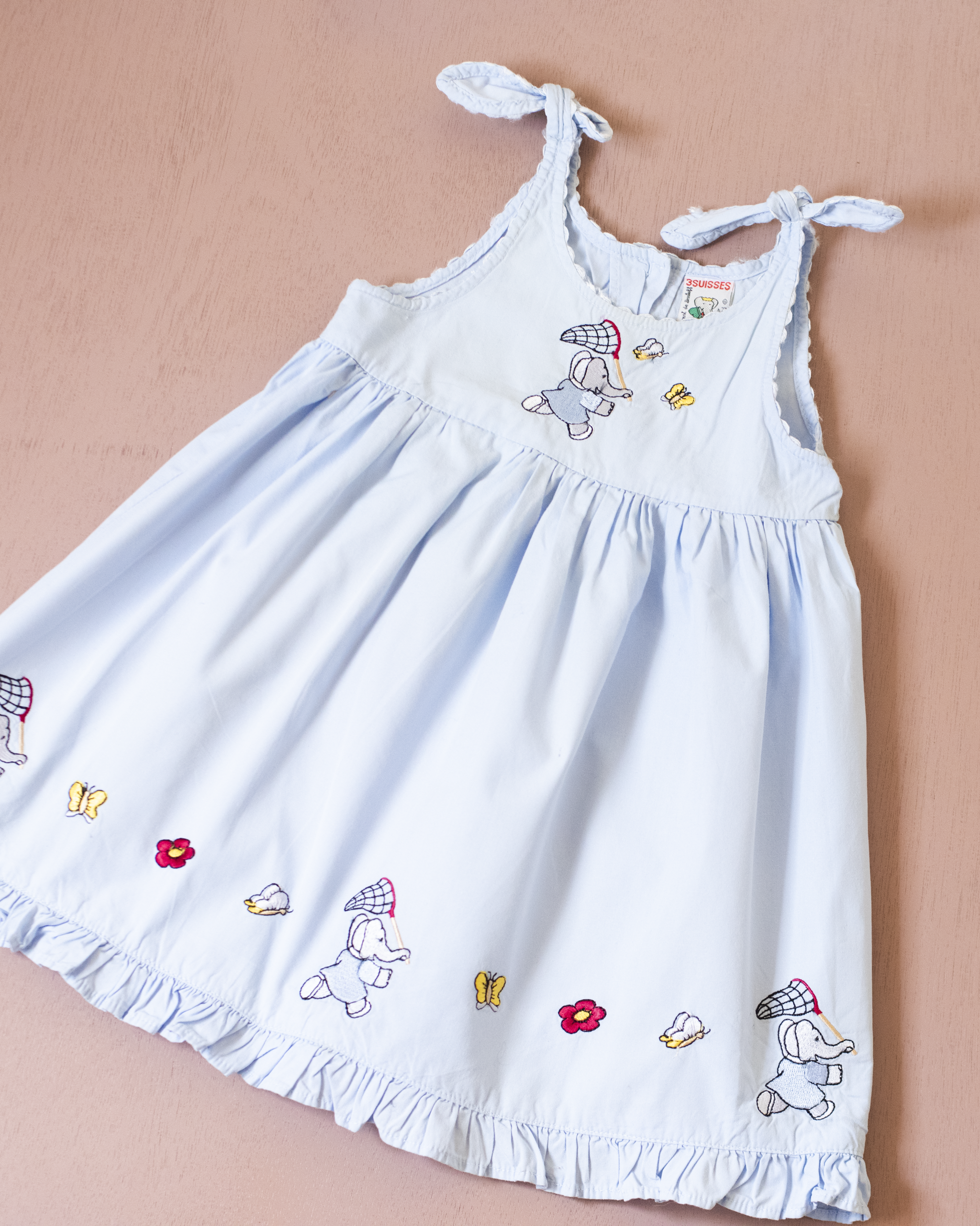 שמלה בתכלת עם רקמות של המלך בבר ופרפרים | 12-18 חודשים