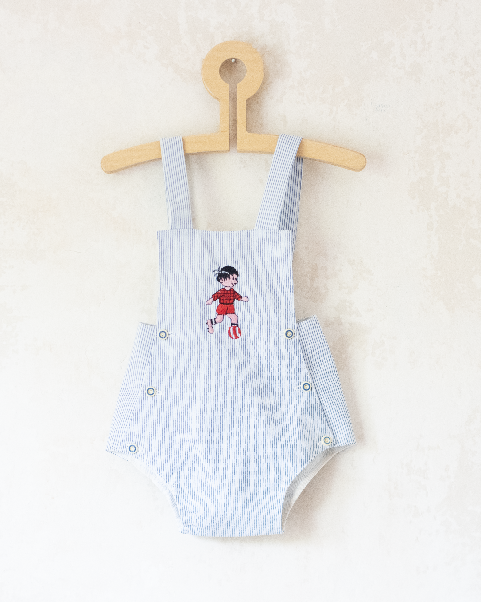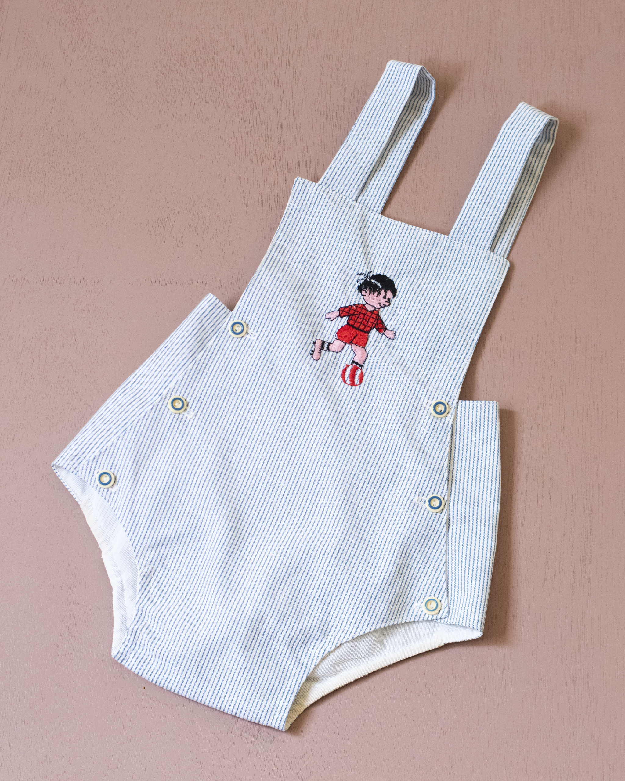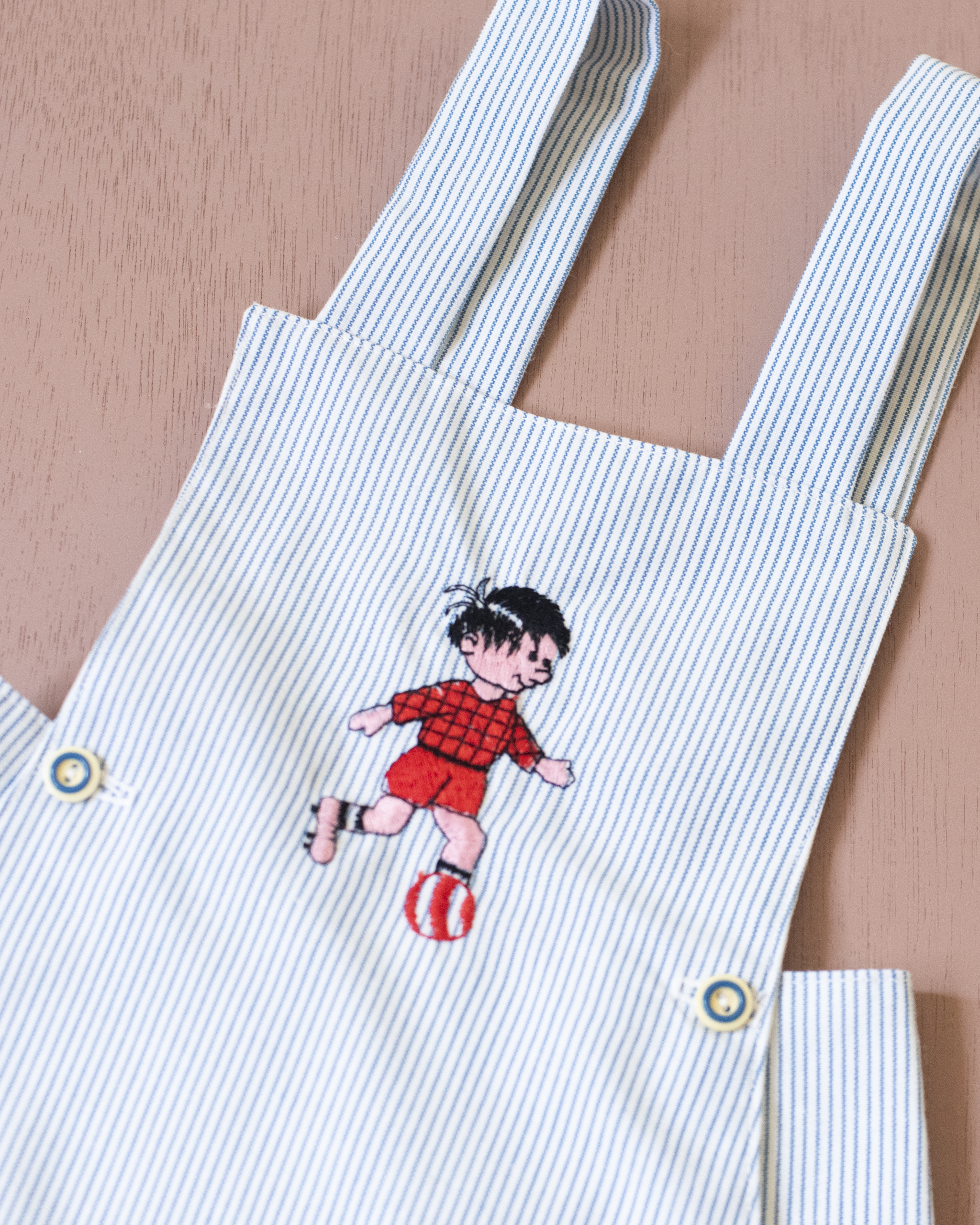 אוברול עם פסים וסירות רקומות | 12-18 חודשים