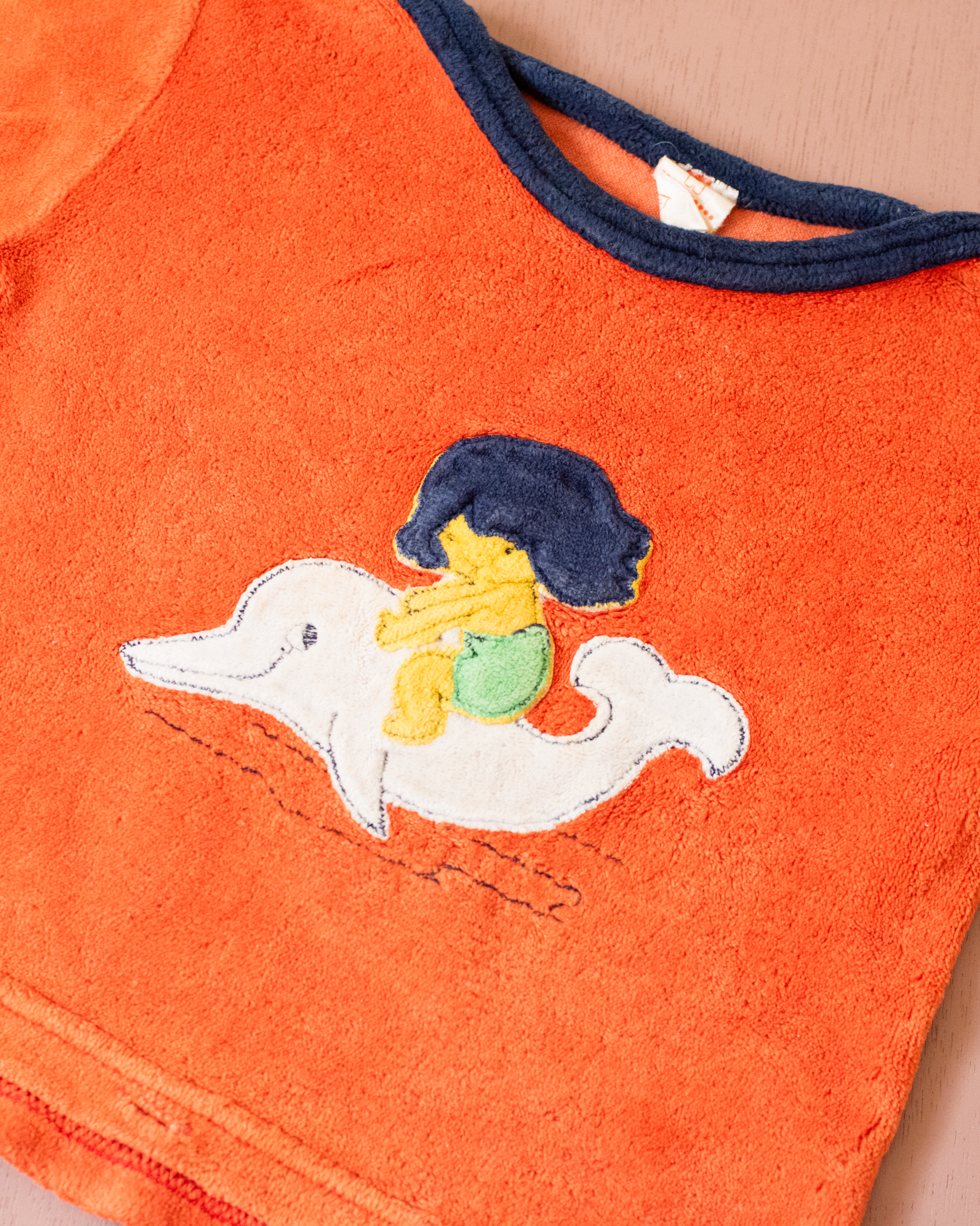 חולצה נוסטלגית מבד מגבת עם ילד רכוב על דולפין | 12-18 חודשים