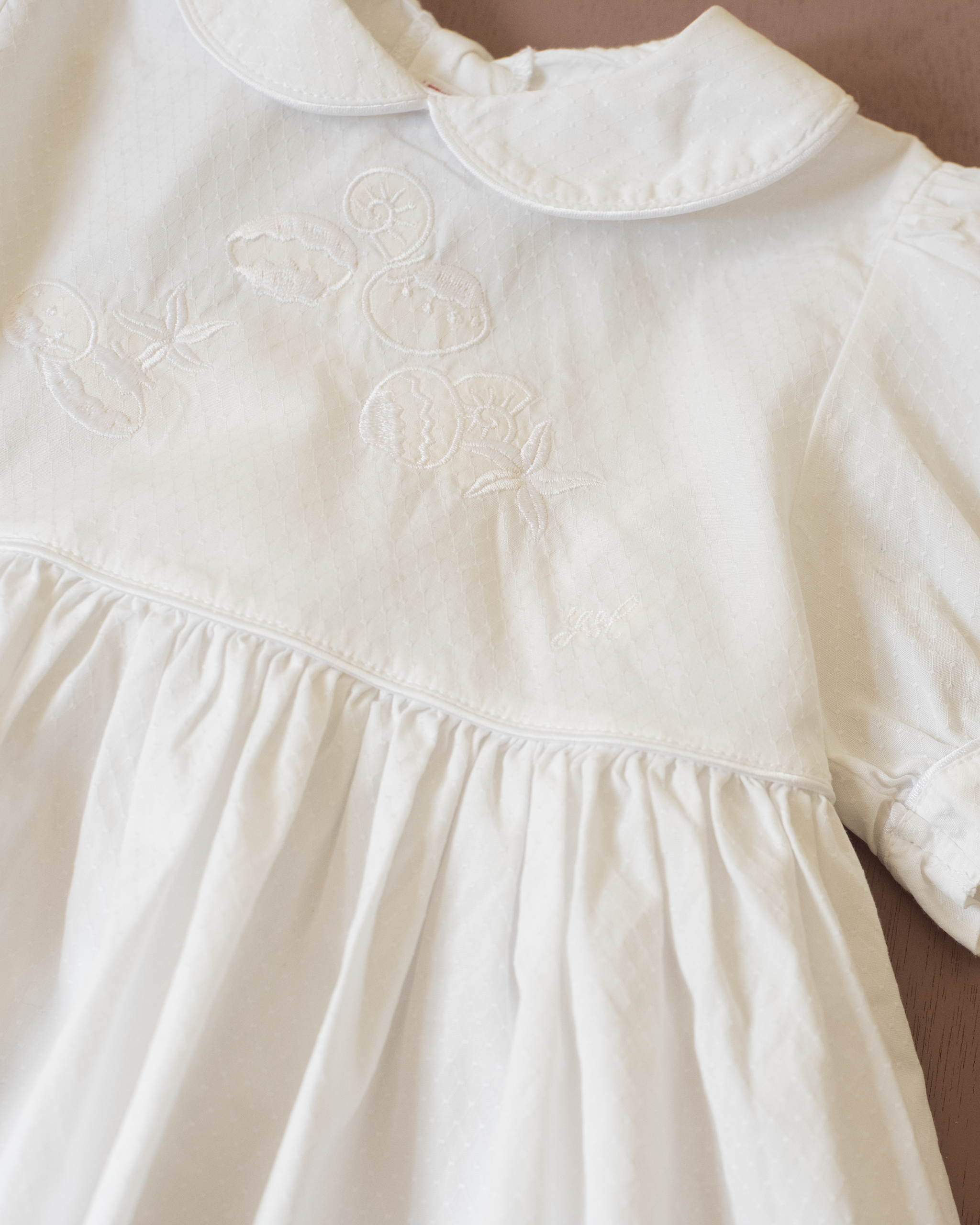 שמלה לבנה מבית איב סאן לורן עם צדפות רקומות | 12-18 חודשים