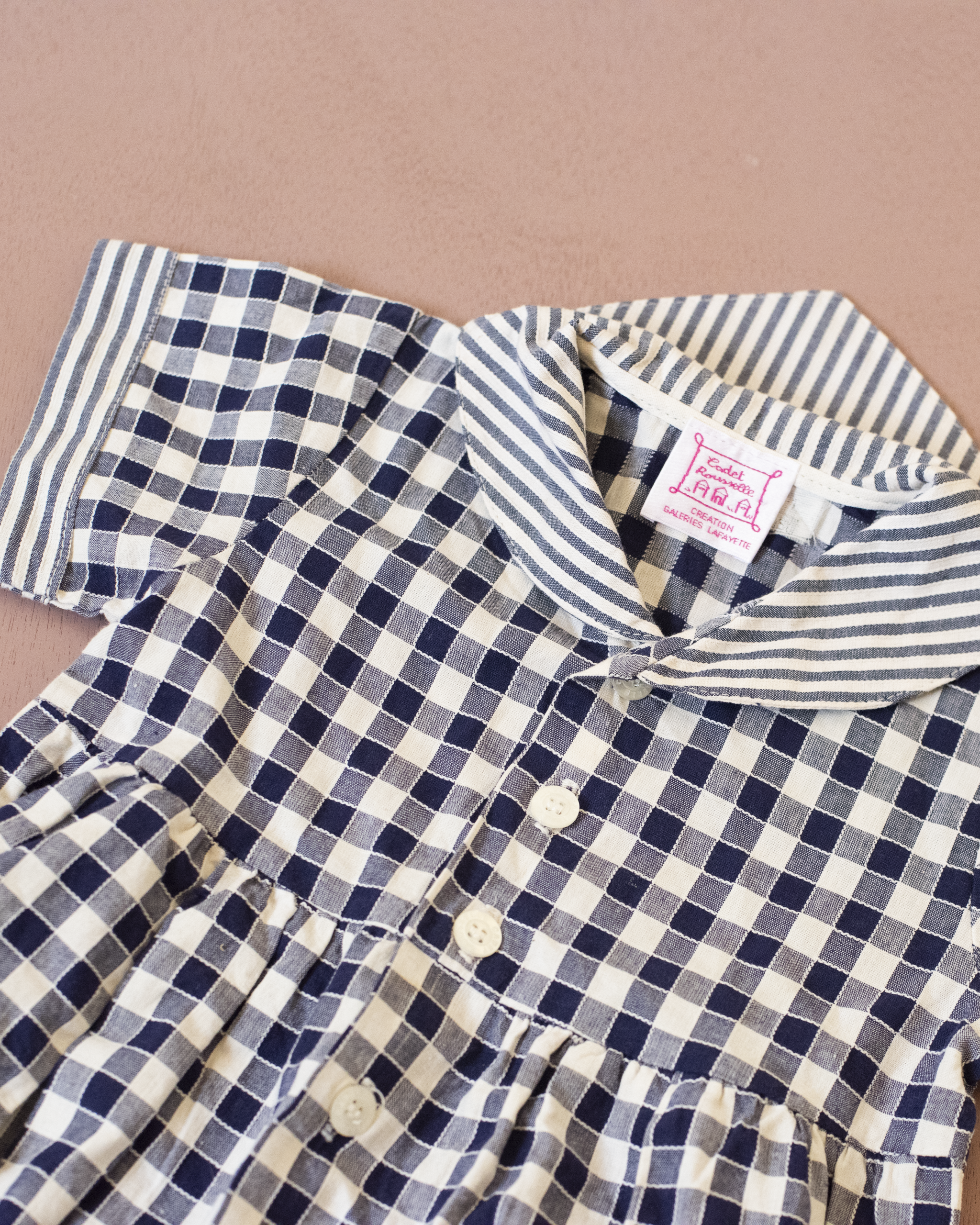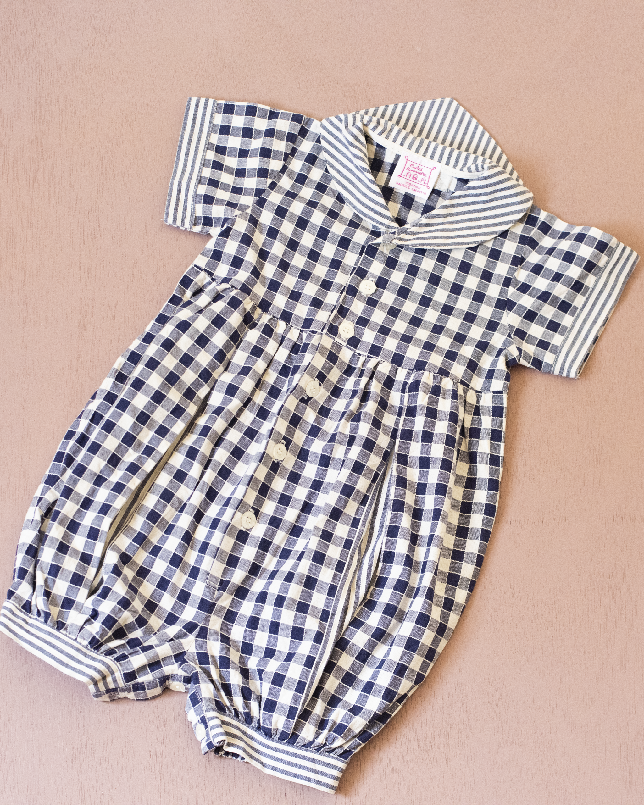 אוברול עם משבצות ופסים | 12-18 חודשים