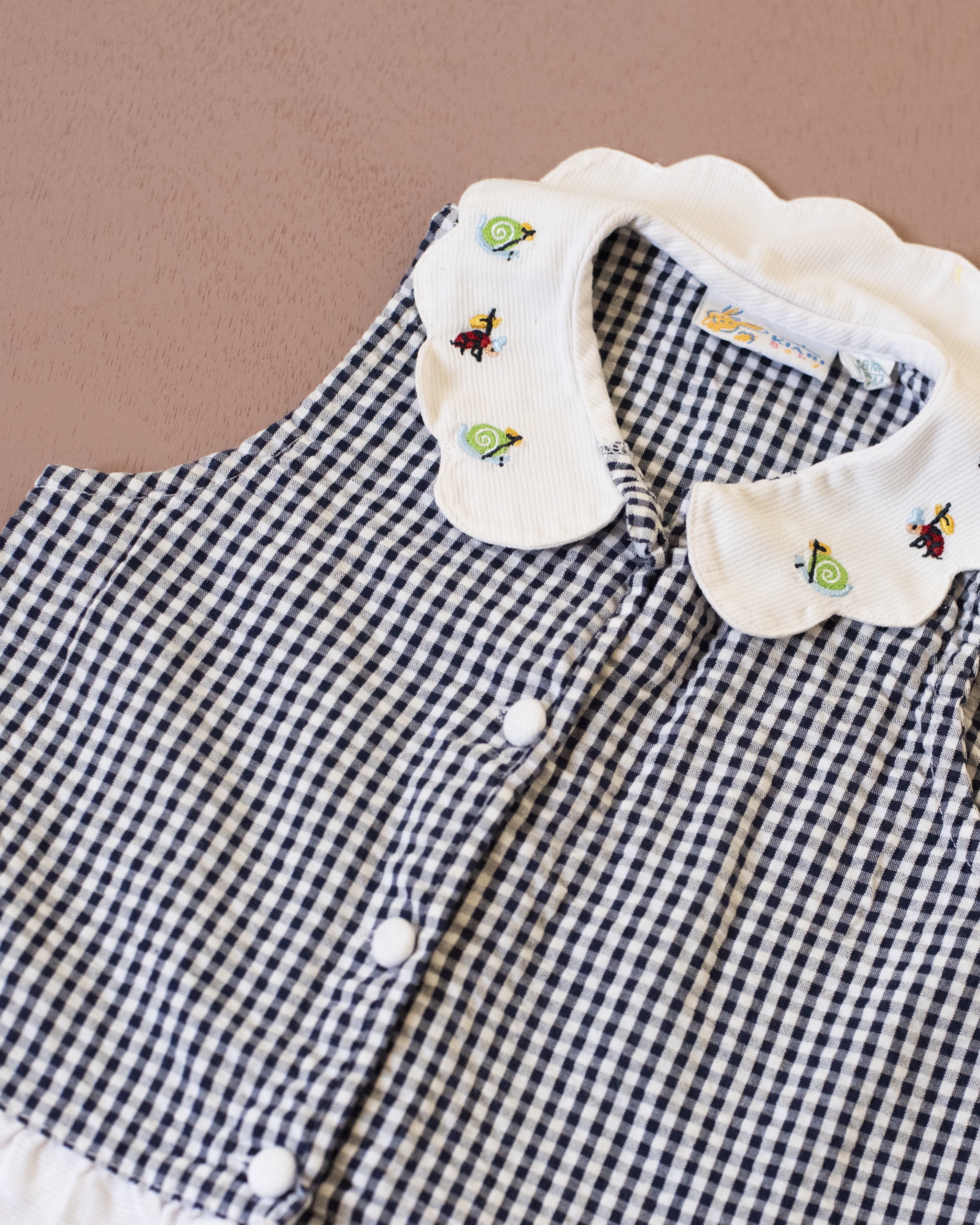 אוברול משבצות שחור לבן | 12-18 חודשים