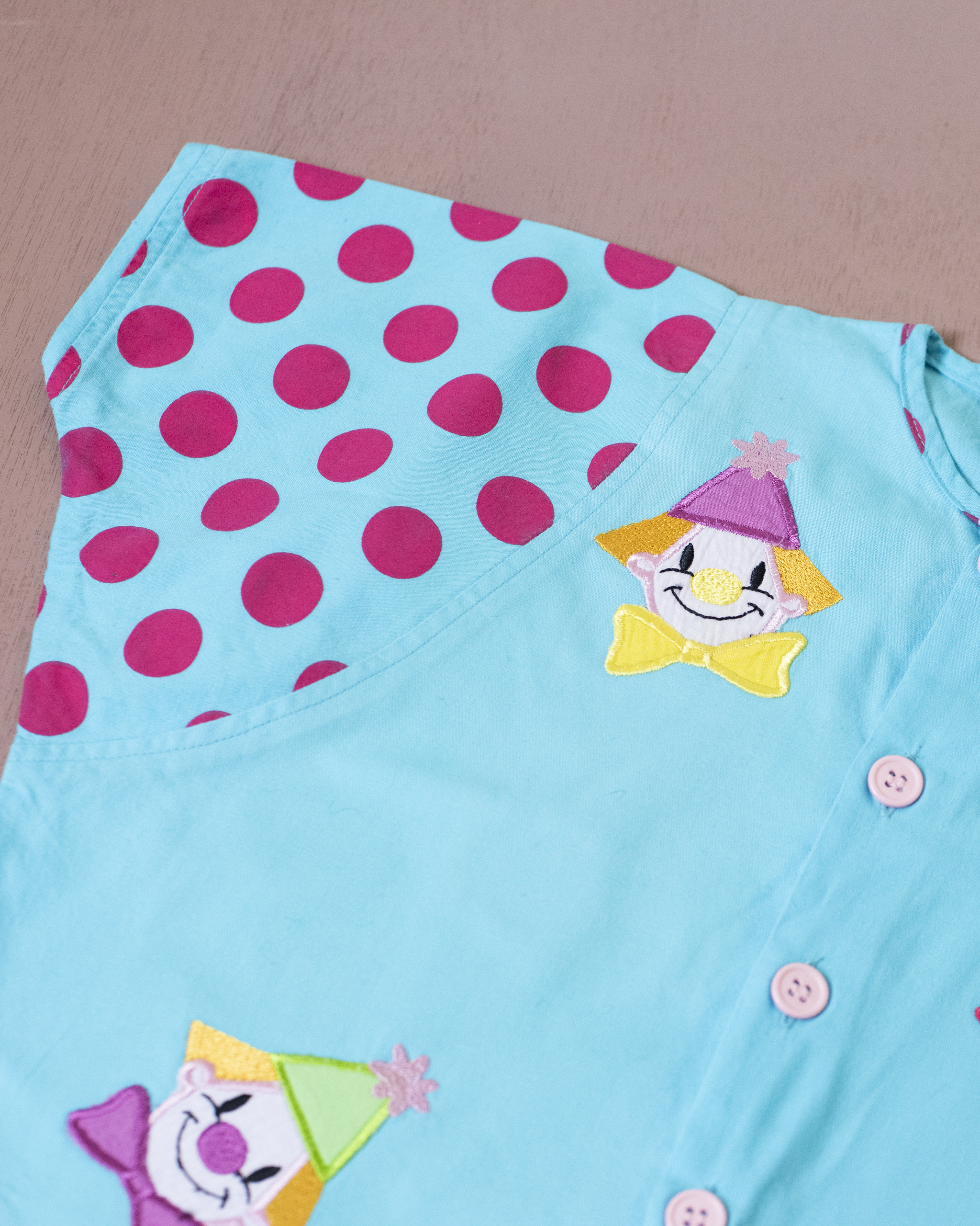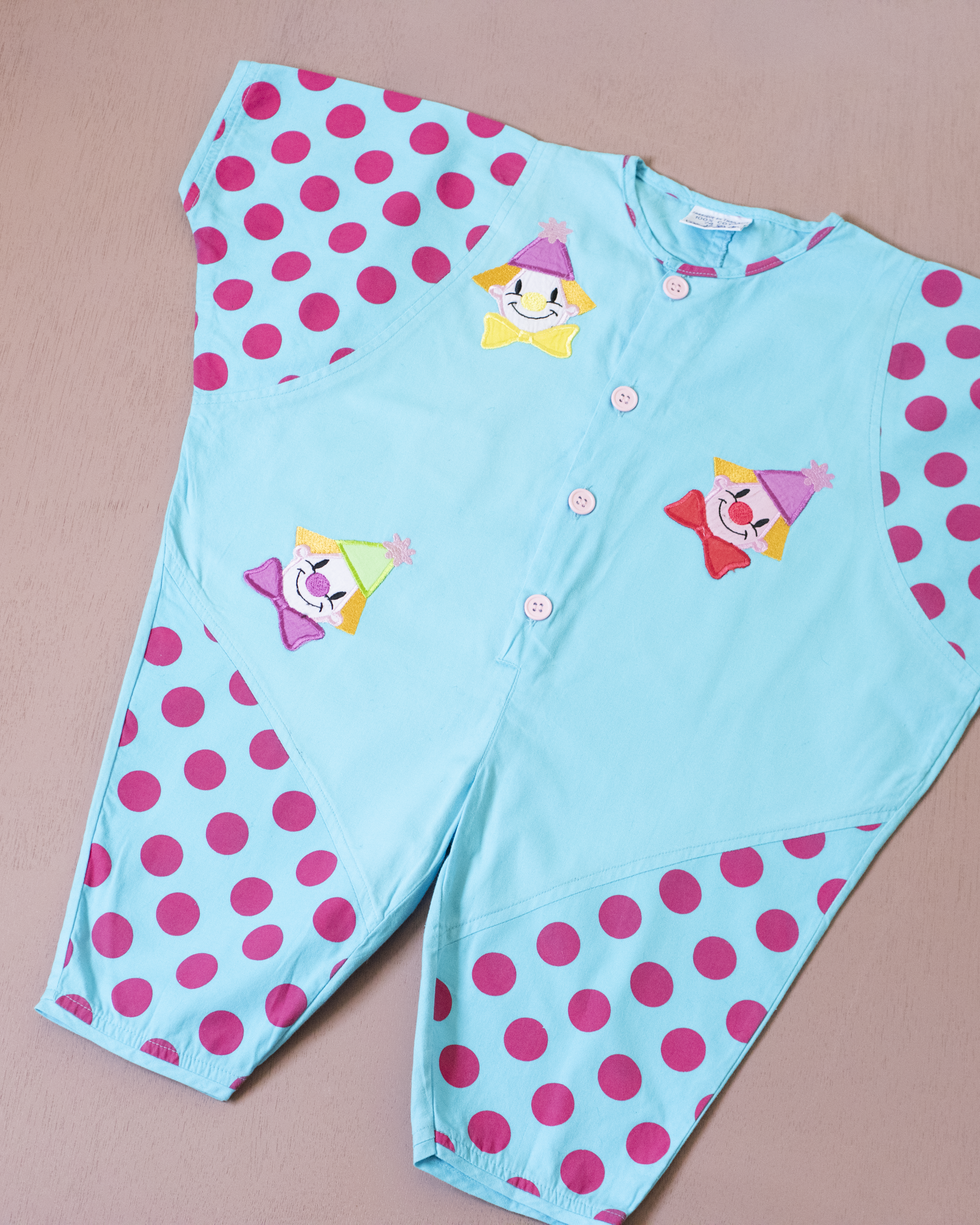 אוברול תכלת עם נקודות וליצנים | 12-18 חודשים