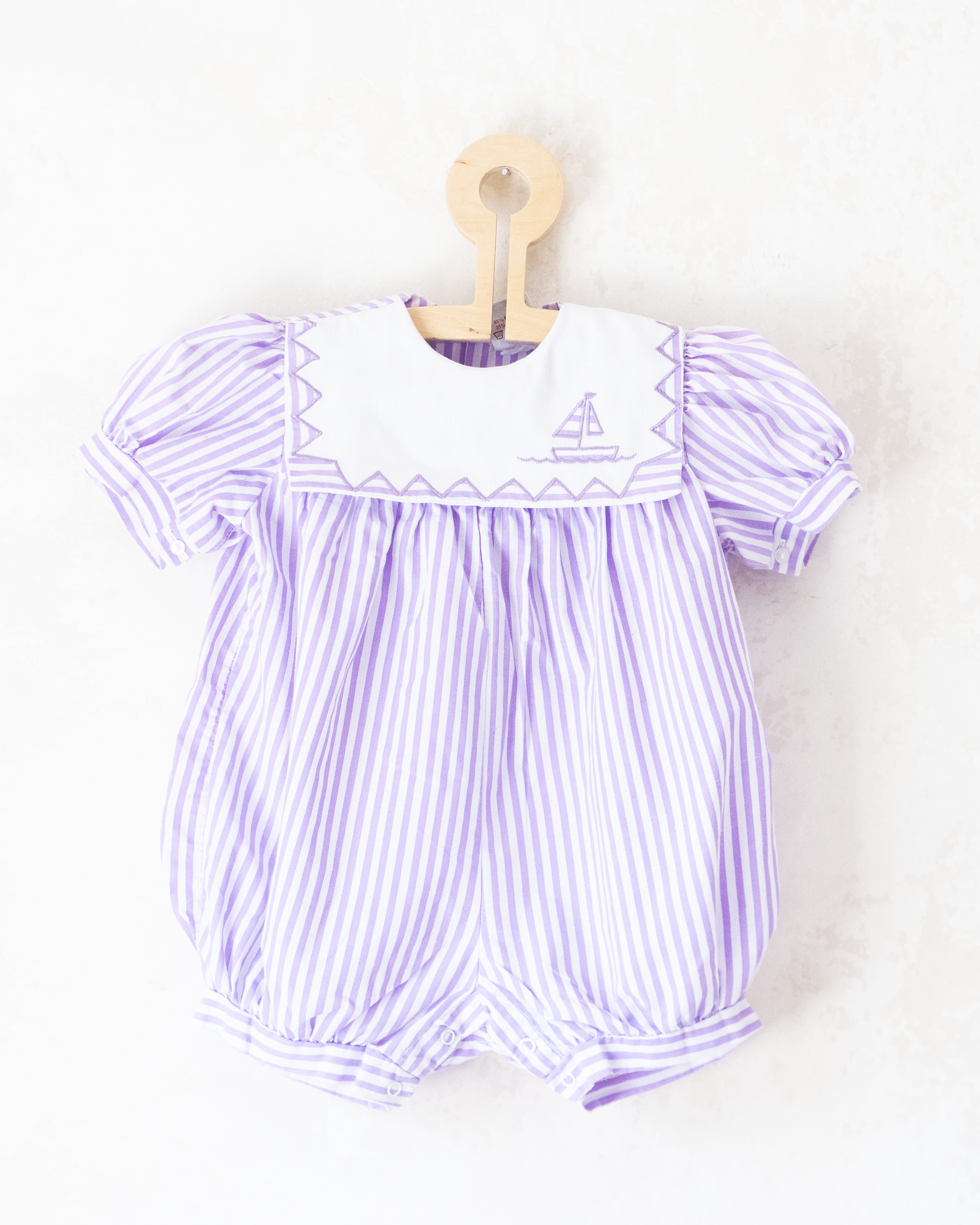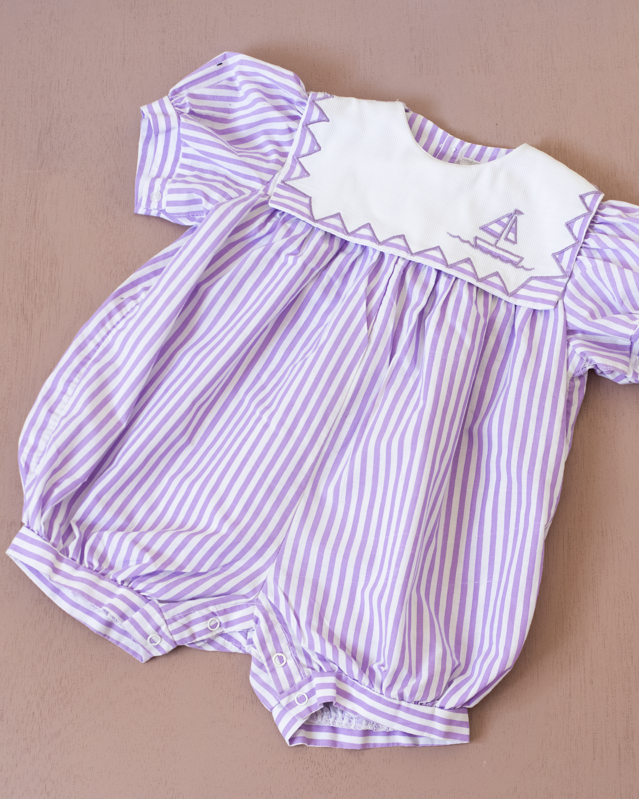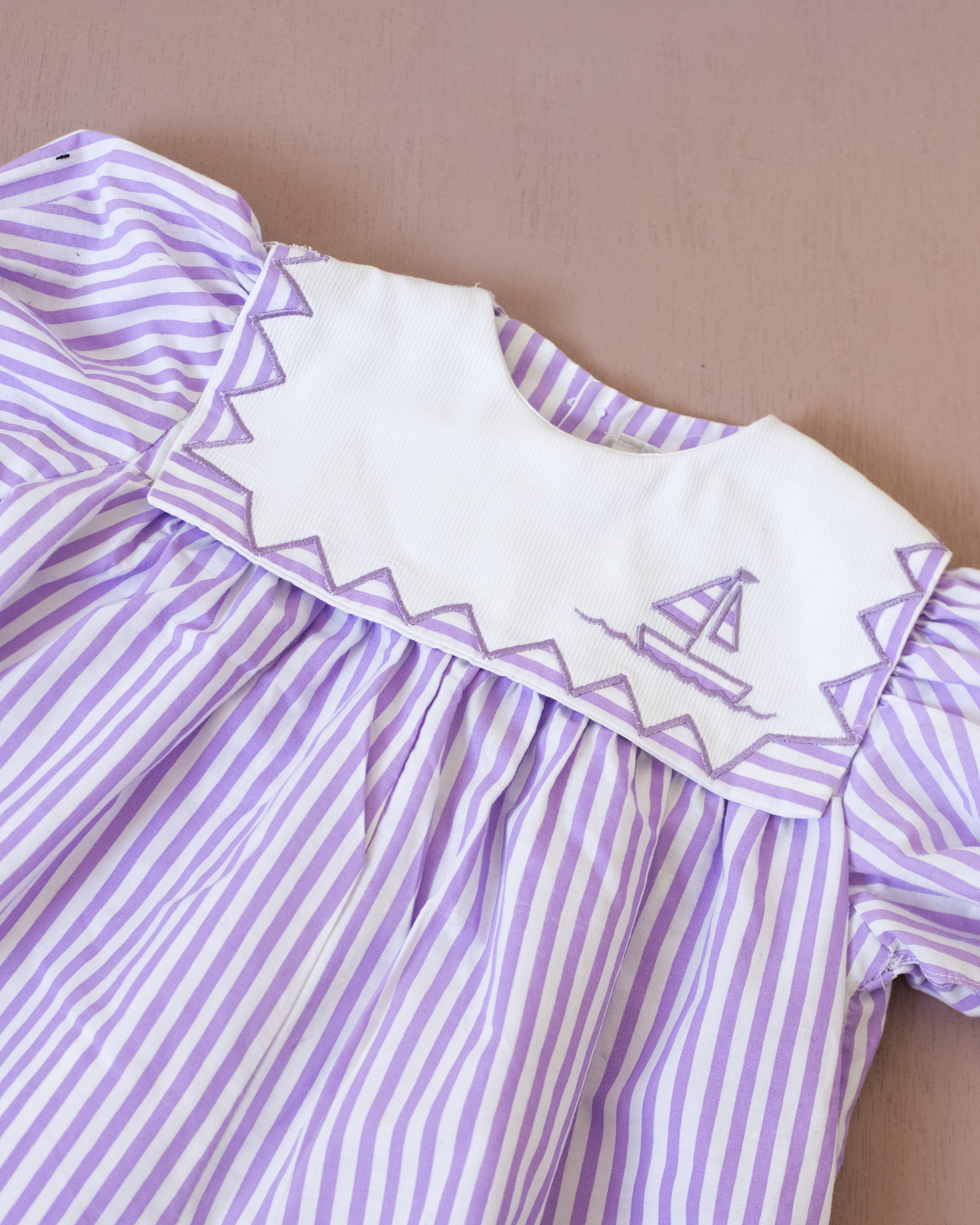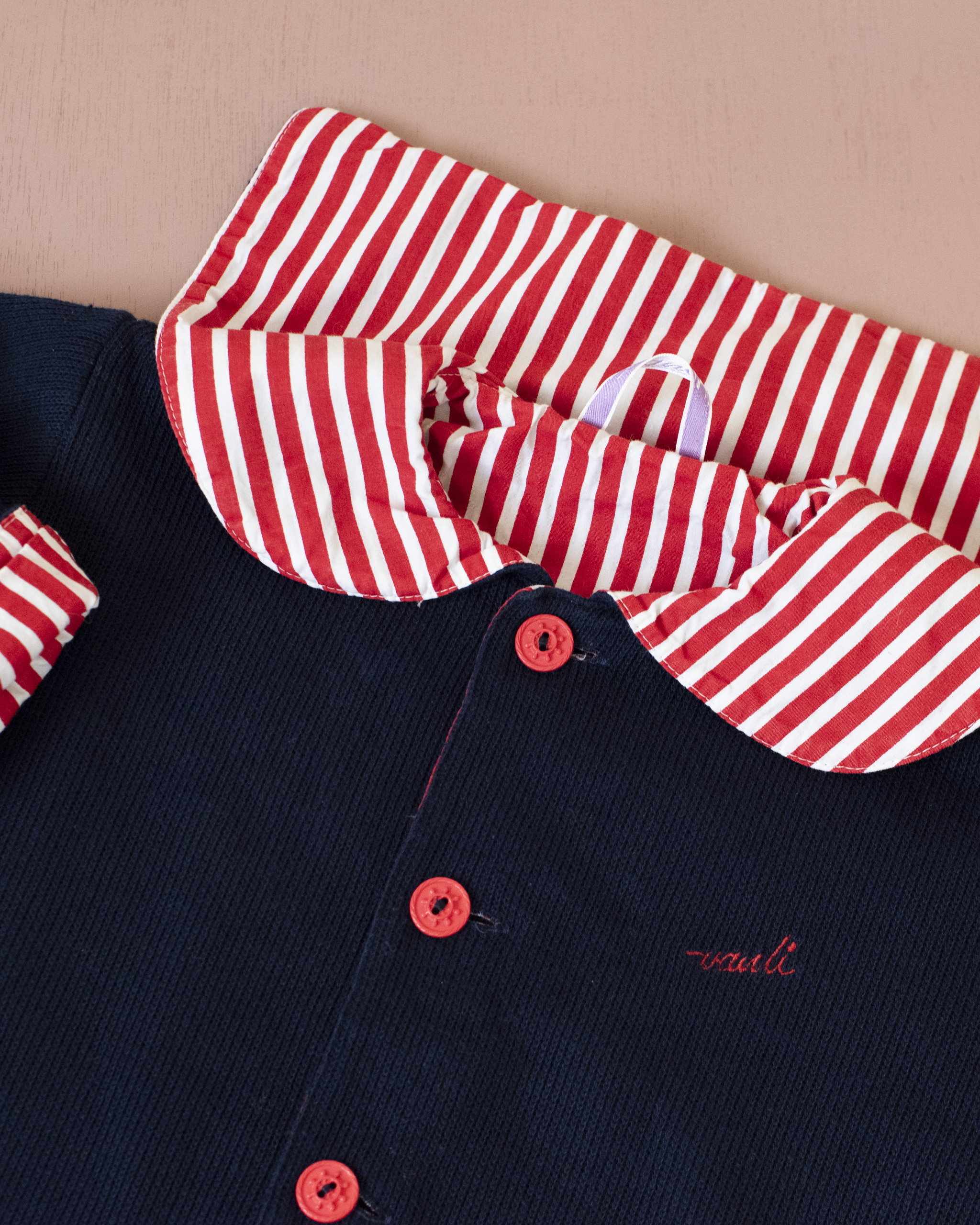 אוברול ימאים עם פסים וצווארון רקום | 18-24 חודשים