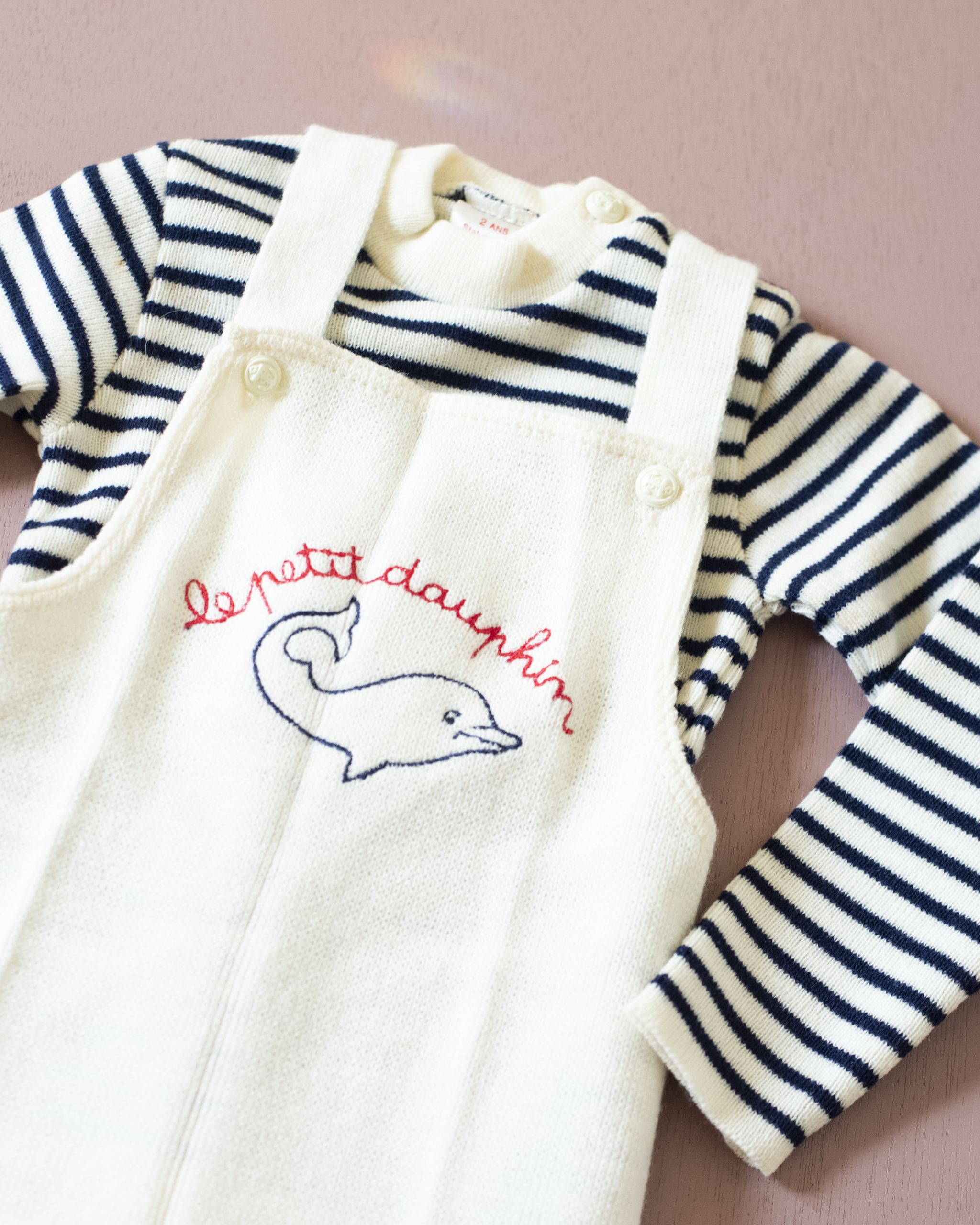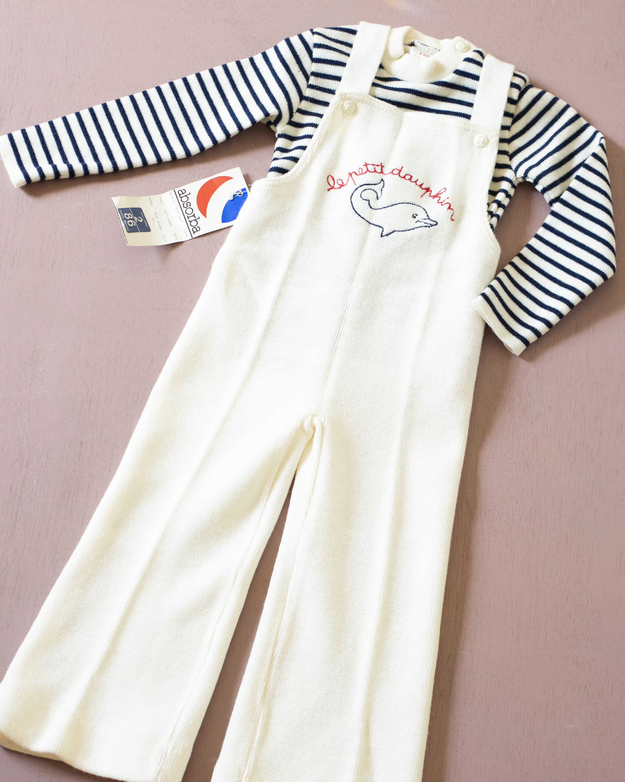 סט אוברול וסוודר עם דולפין | דד סטוק צרפתי מהסבנטיז | 18-24 חודשים