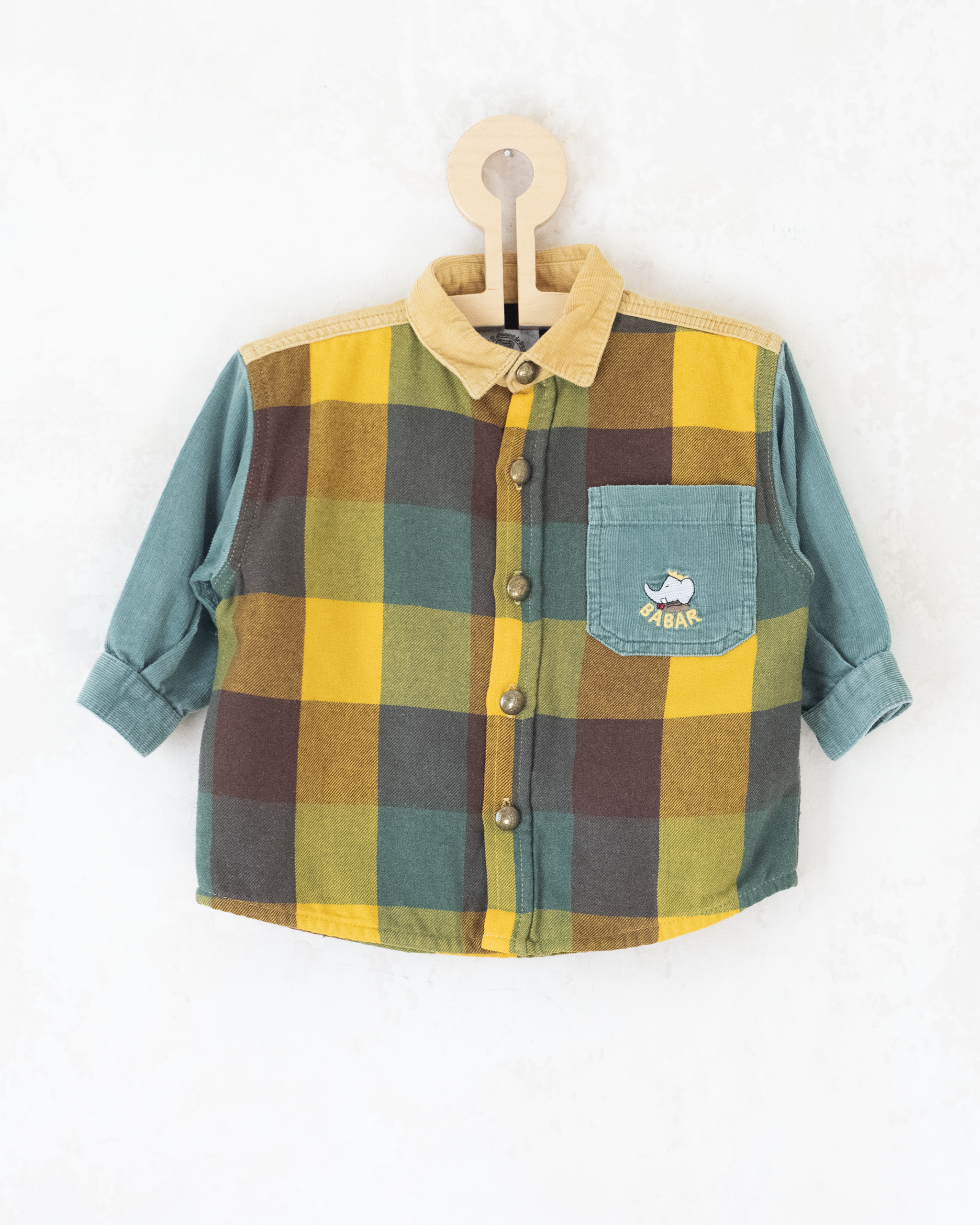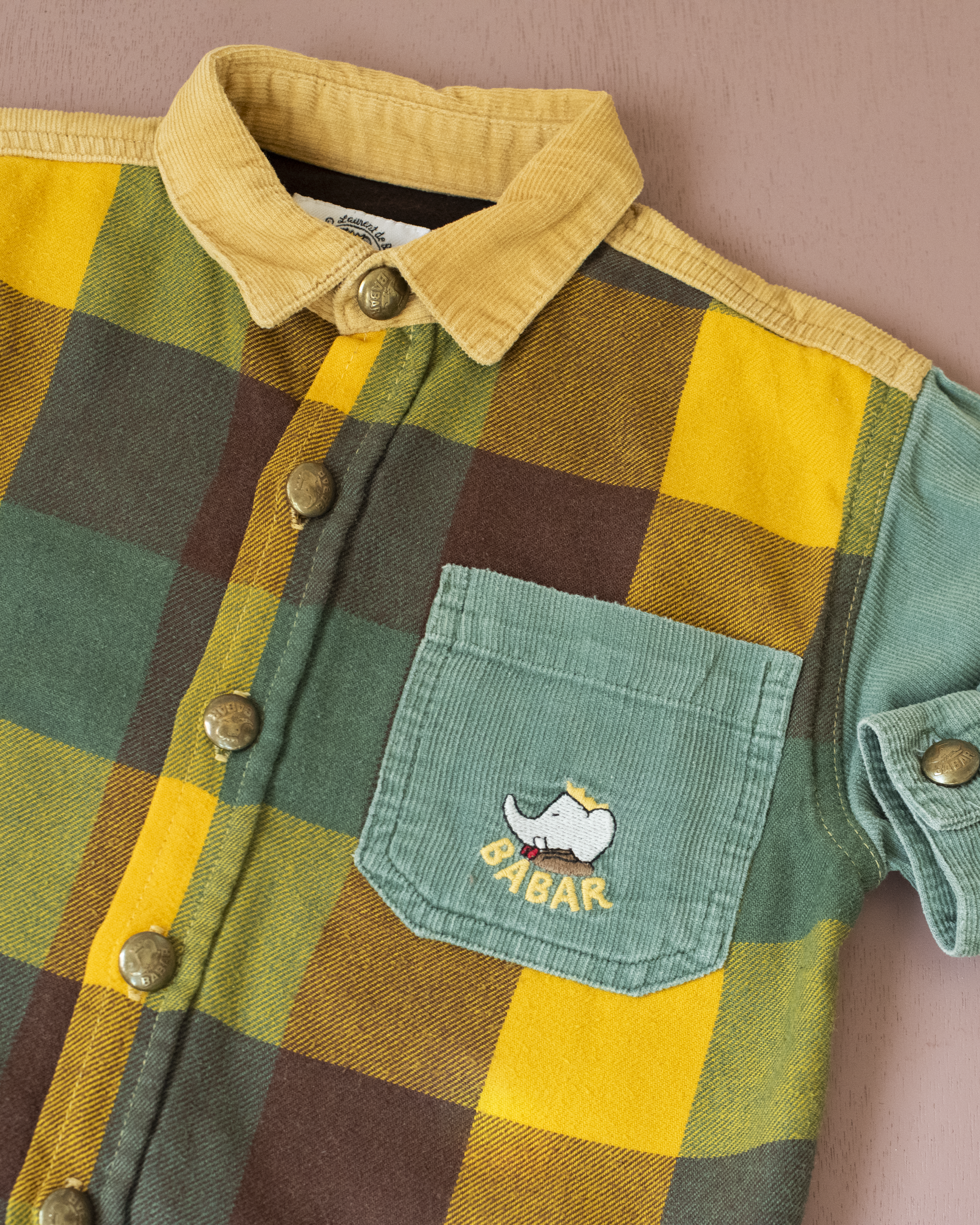 חולצה משובצת עם קורדרוי ורקמות של המלך בבר | 18-24 חודשים