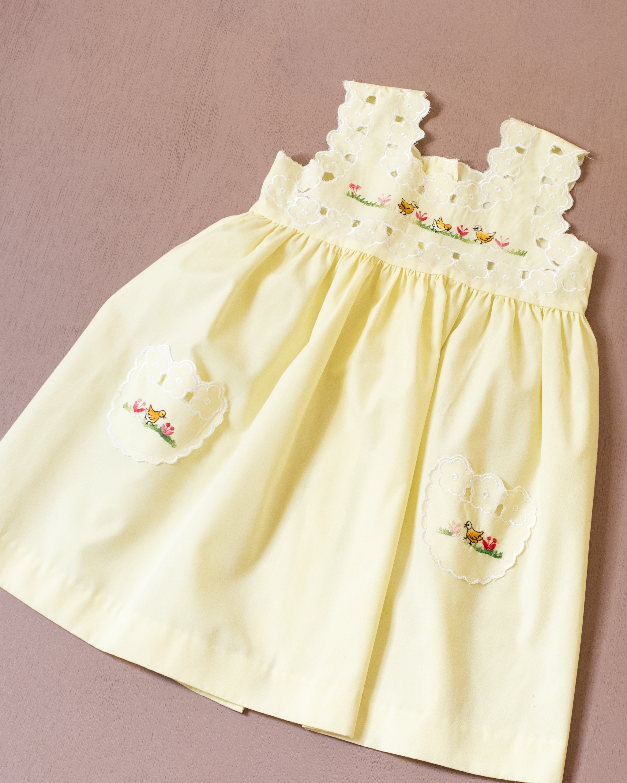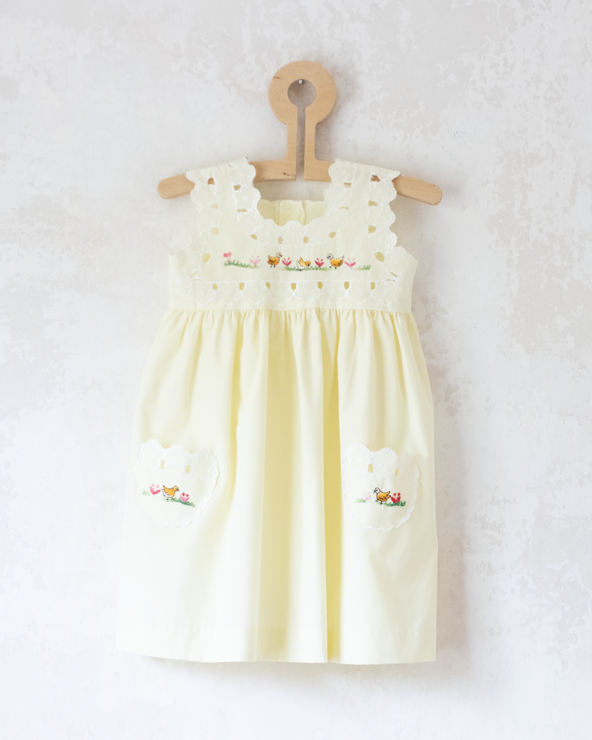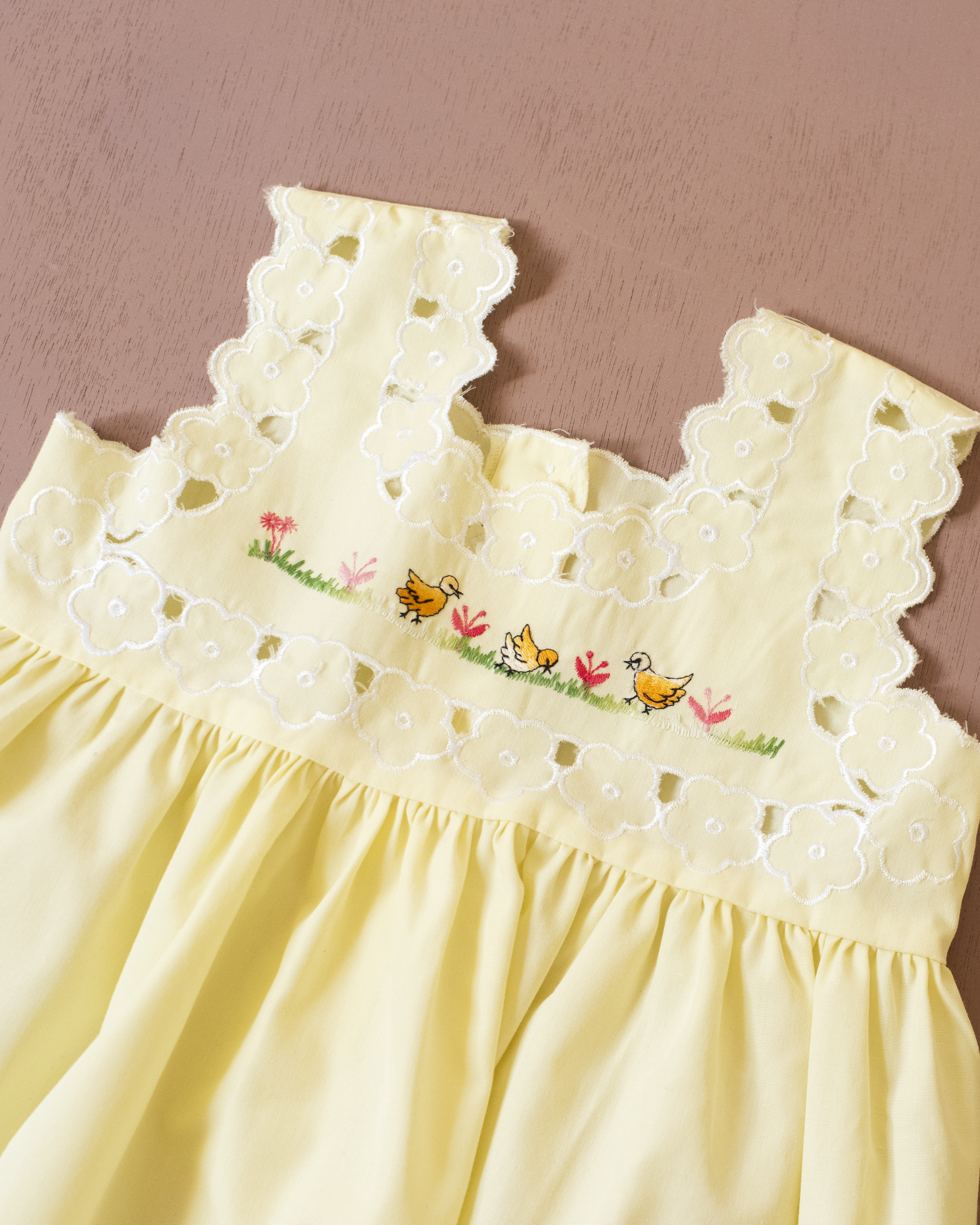 שמלה צהובה עם תחרה וברווזים רקומים | 18-24 חודשים