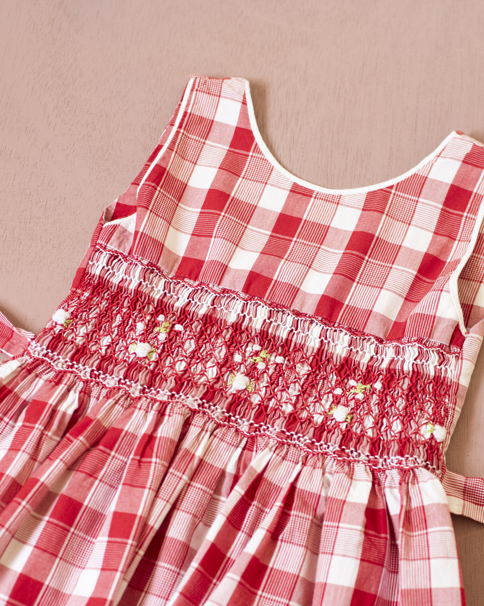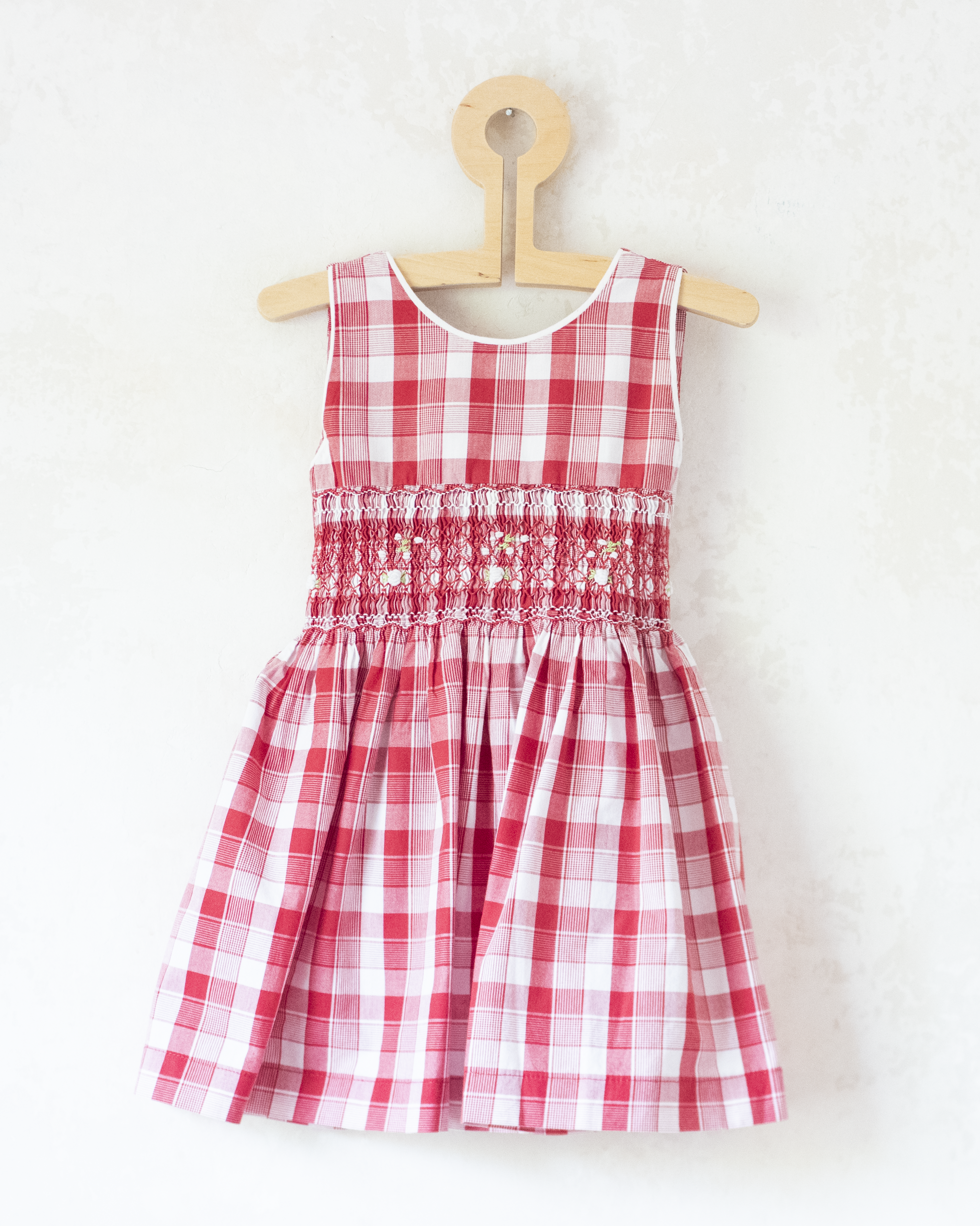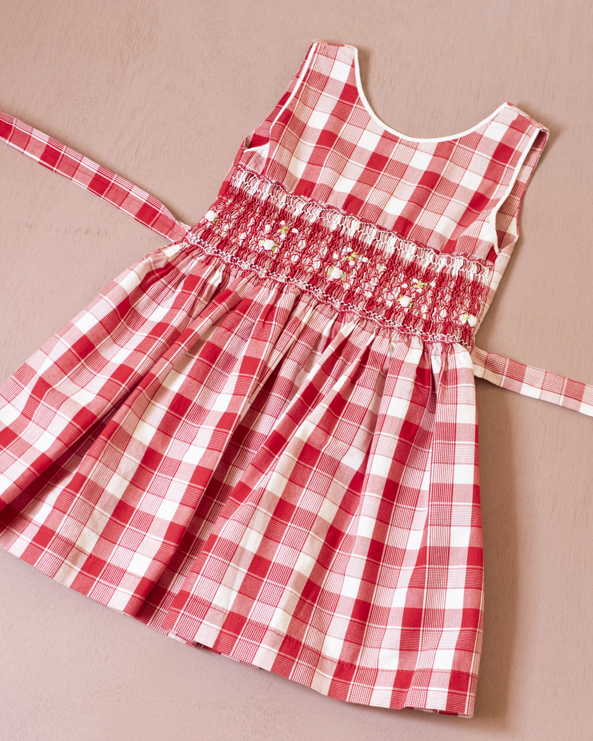אוברול קווילט אדום עם משבצות | דד סטוק צרפתי מהסבנטיז | 18-24 חודשים