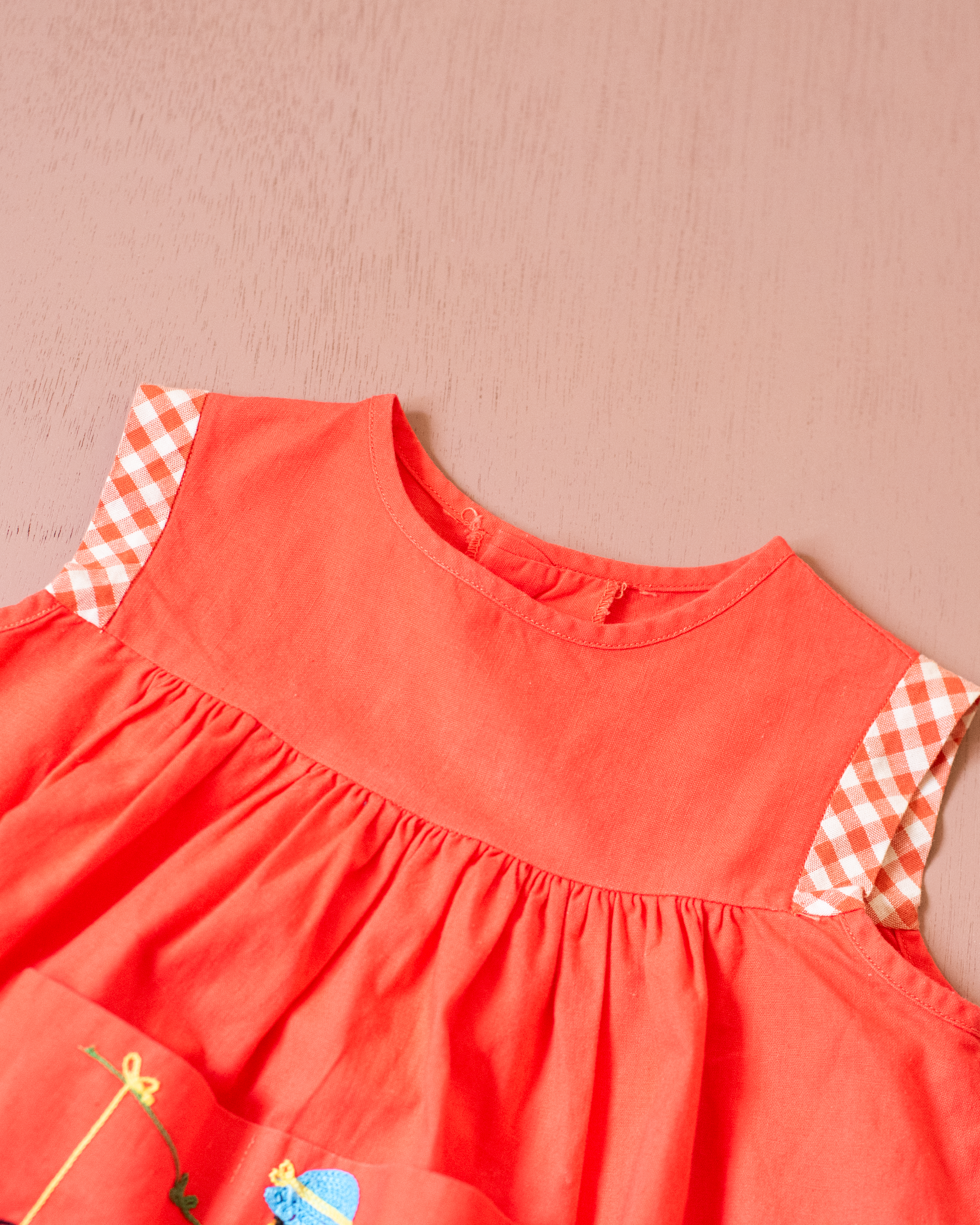 שמלה משובצת עם רקמת פרחים | 18-24 חודשים