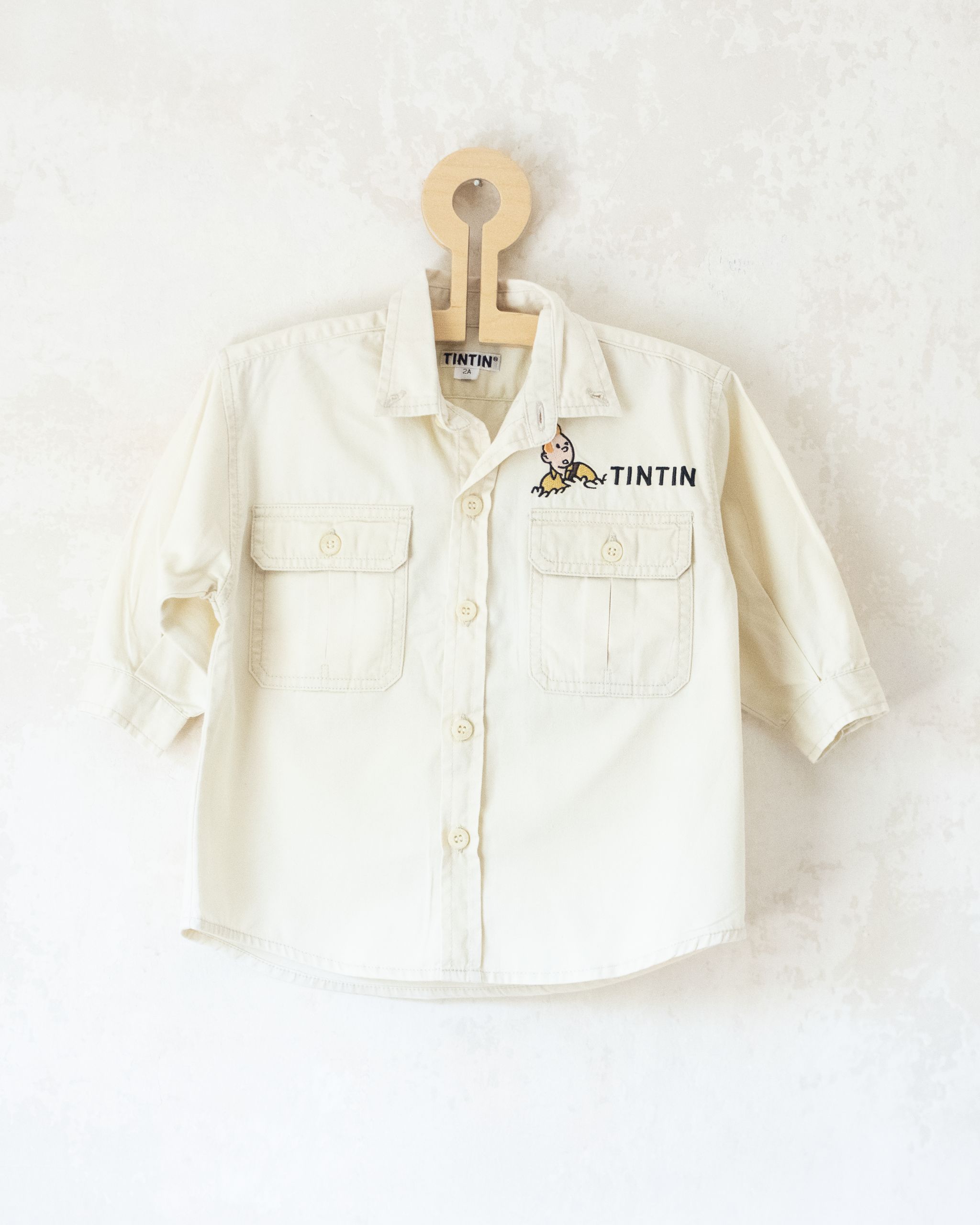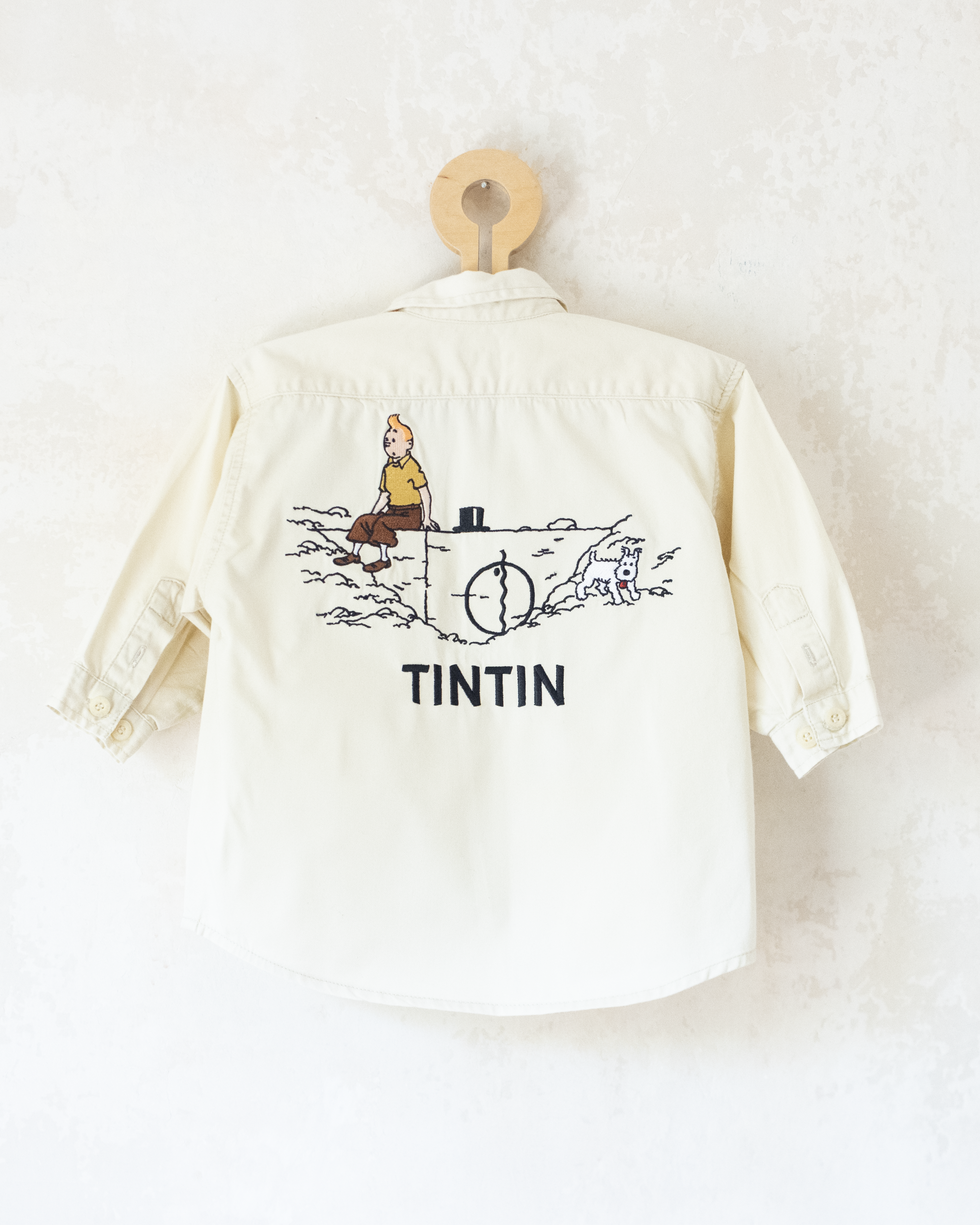 חולצת חאקי בהירה עם רקמות של טינטין | 18-24 חודשים