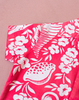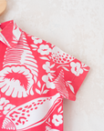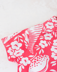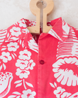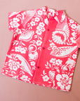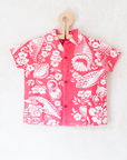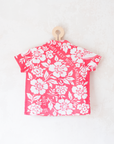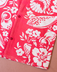 חולצה מכופתרת מהממת בצבע אדום משופשף עם הדפסים לבנים של טהיטי
