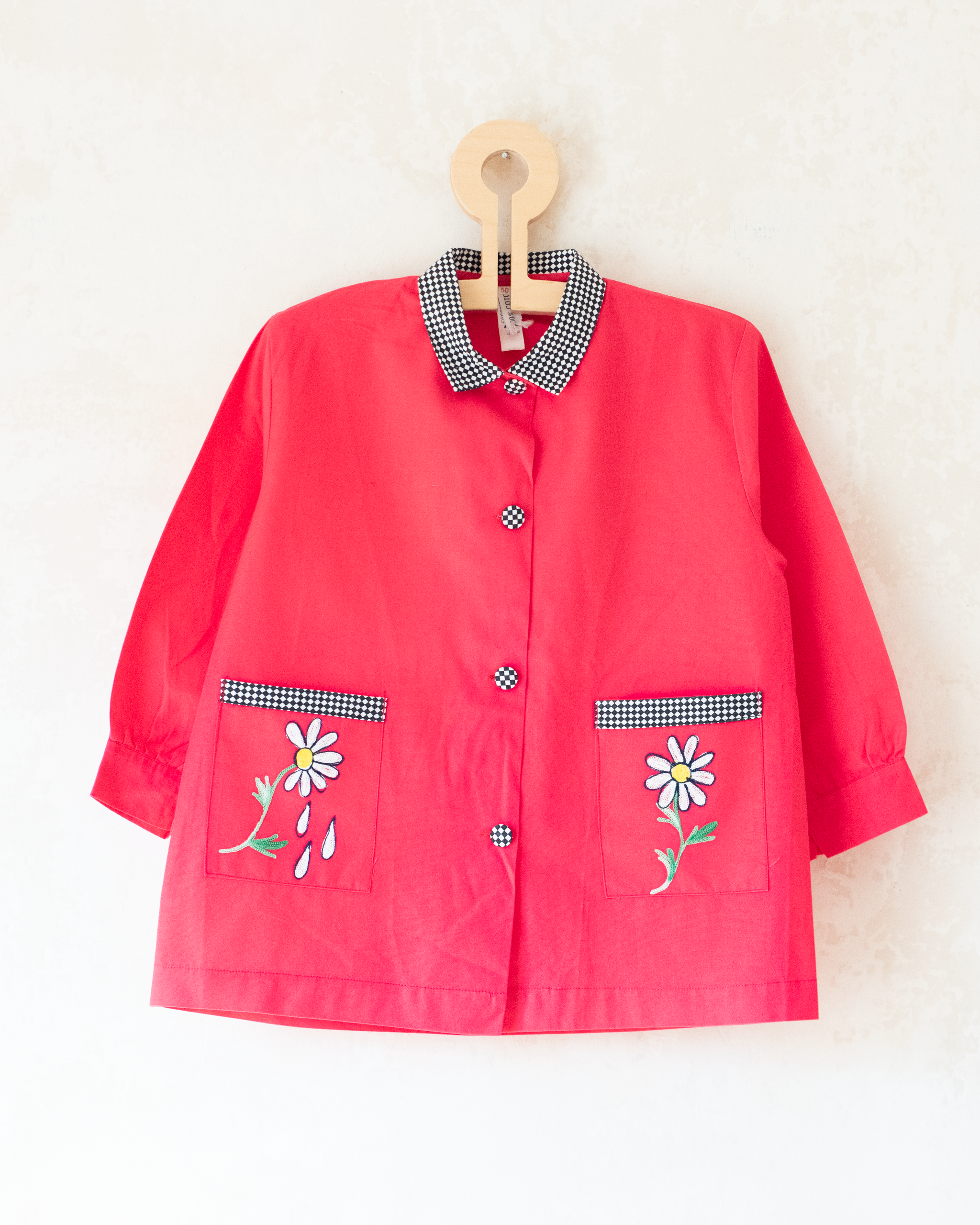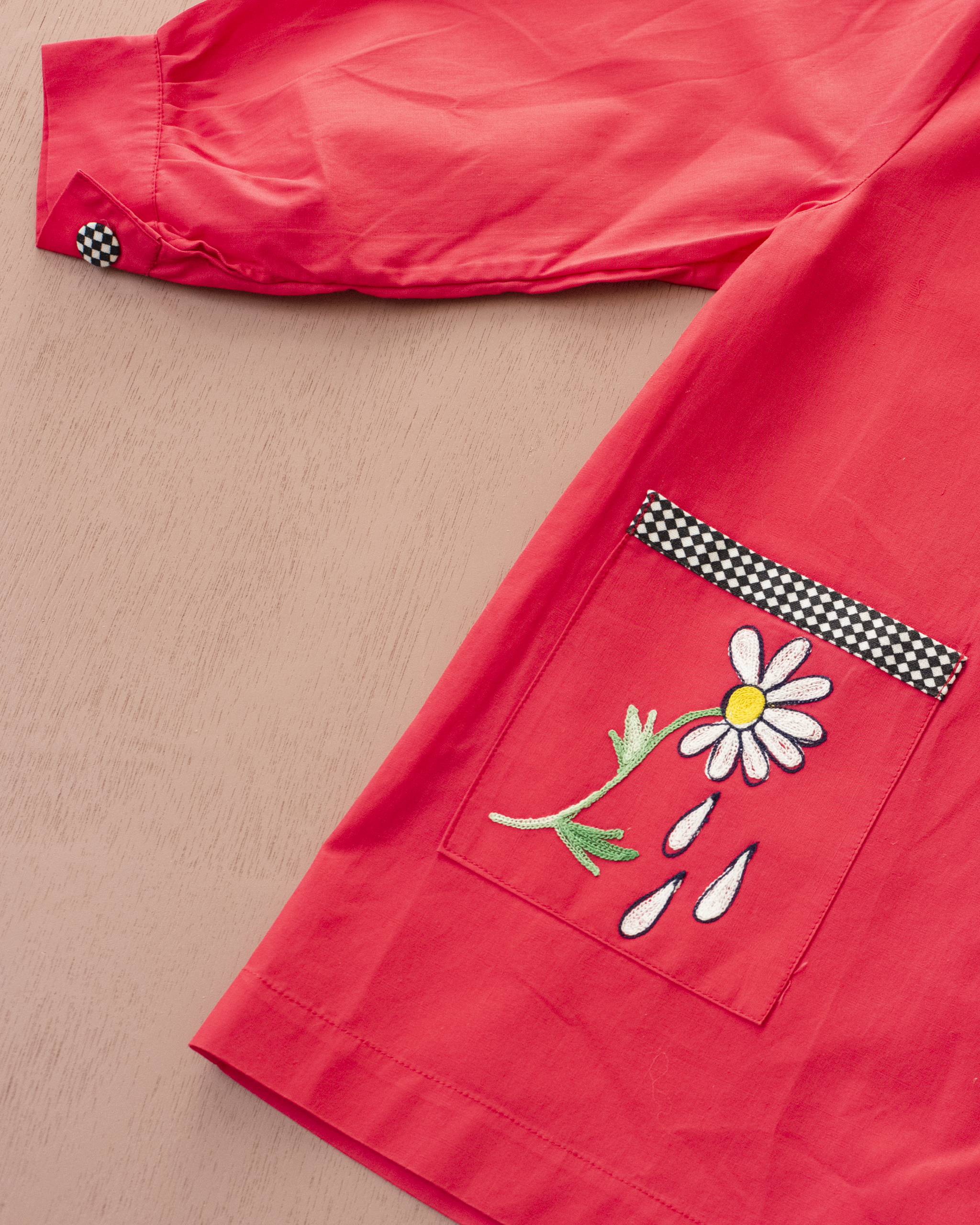 חולצה ארוכה אדומה עם רקמת פרחי דייזי ומשבצות | 5-6 שנים