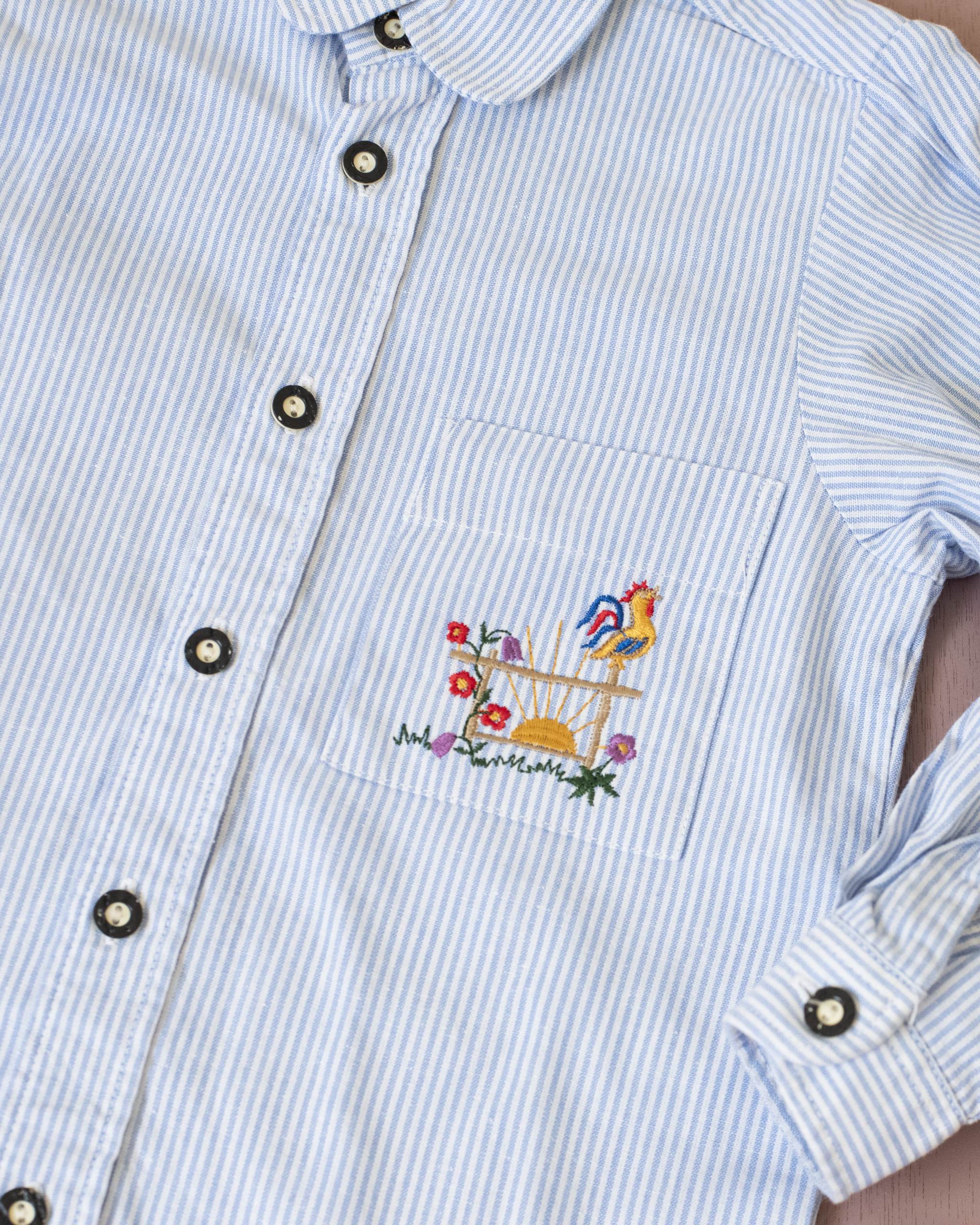 חולצת פסים ארוכה עם רקמת תרנגול | 5-6 שנים