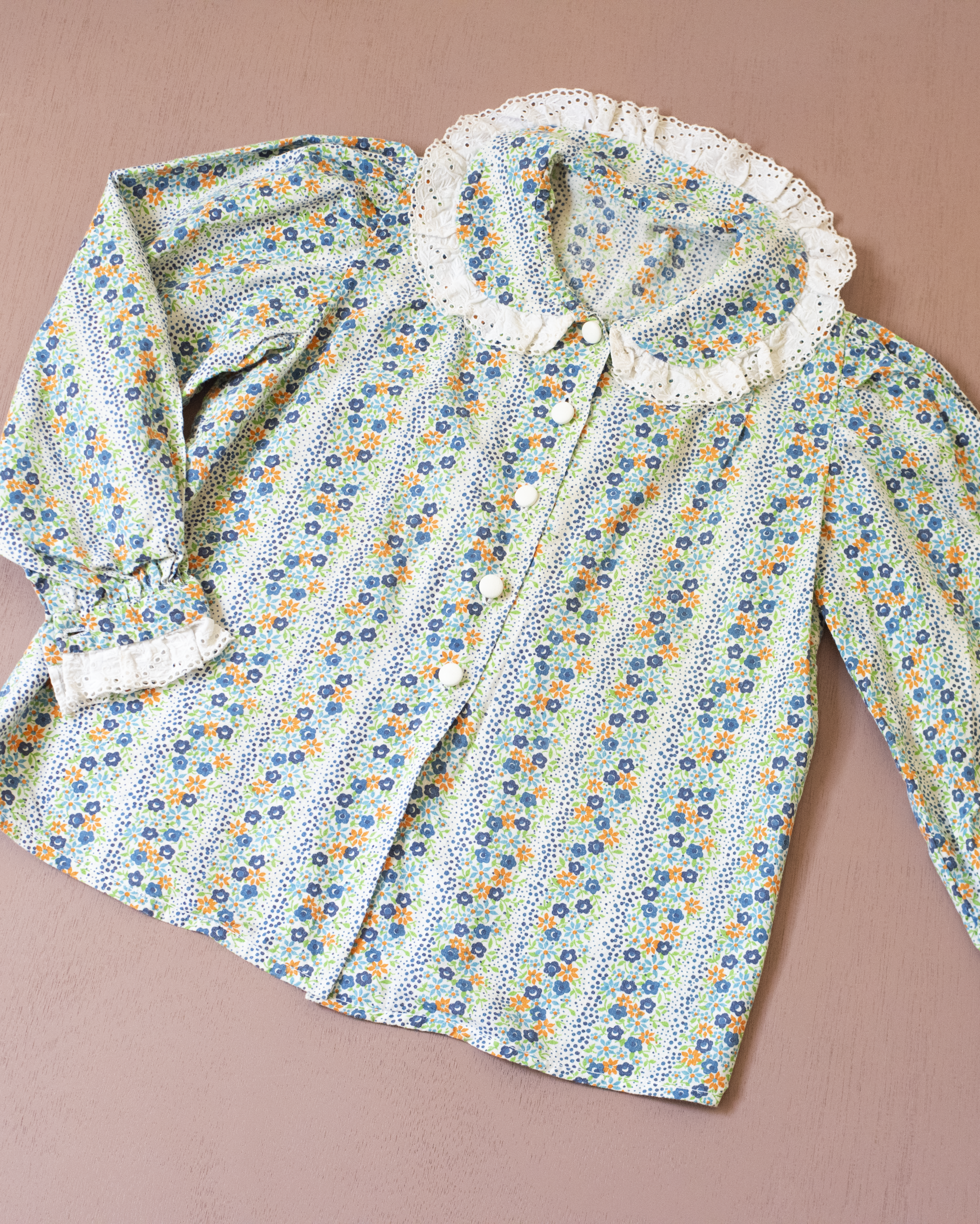 חולצה פרחונית ארוכה עם תחרה לבנה | 5-6 שנים