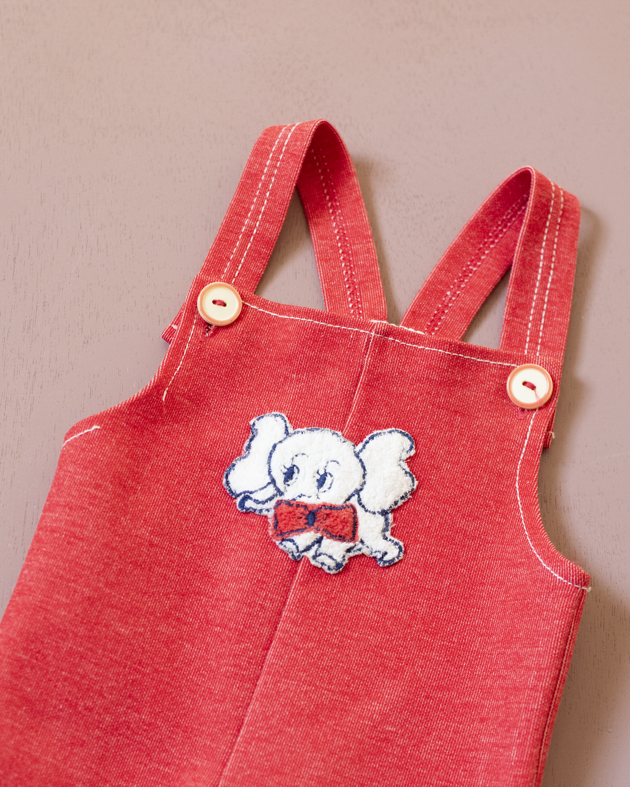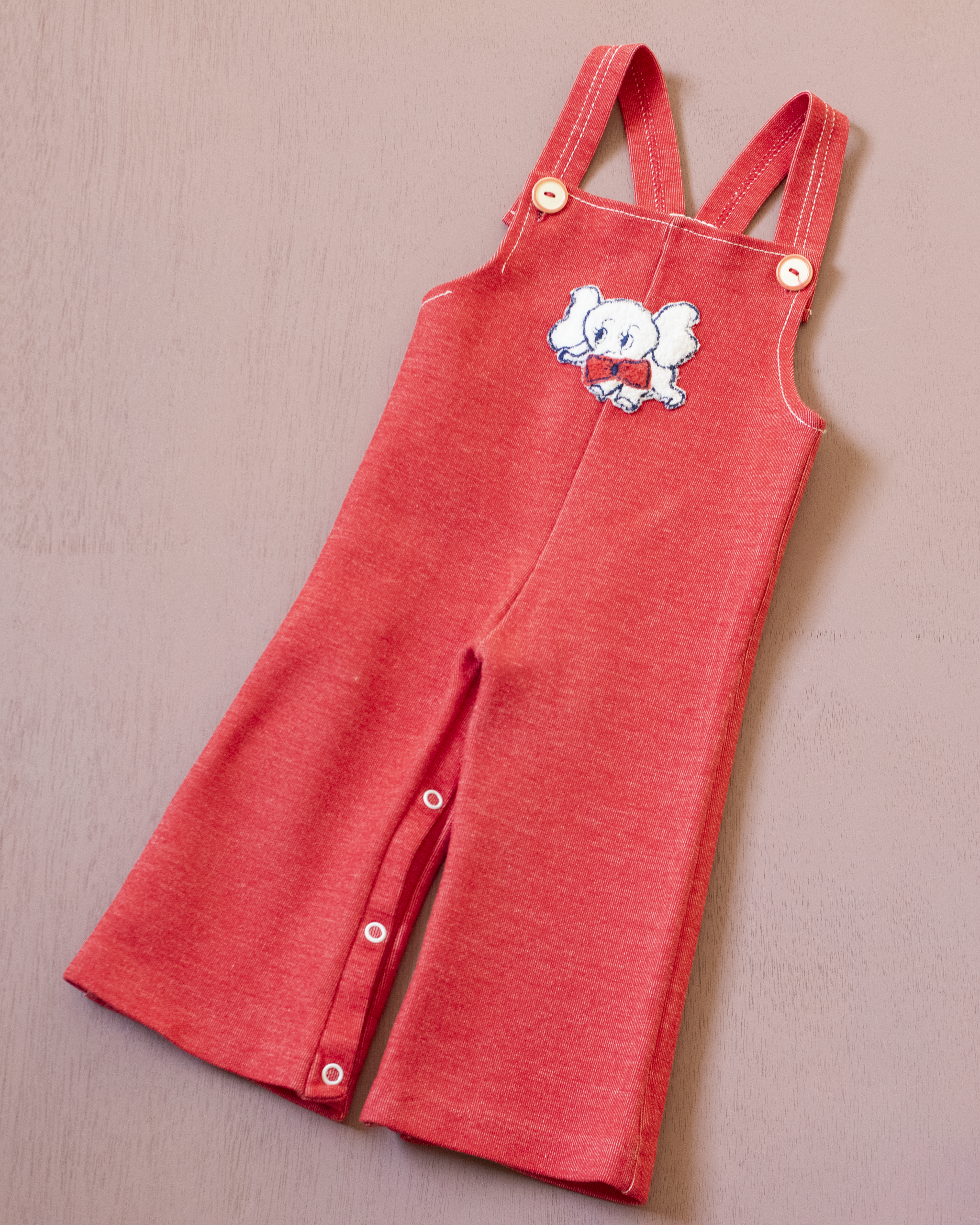 אוברול אדום מהסבנטיז עם פיל לבן | 6-9 חודשים