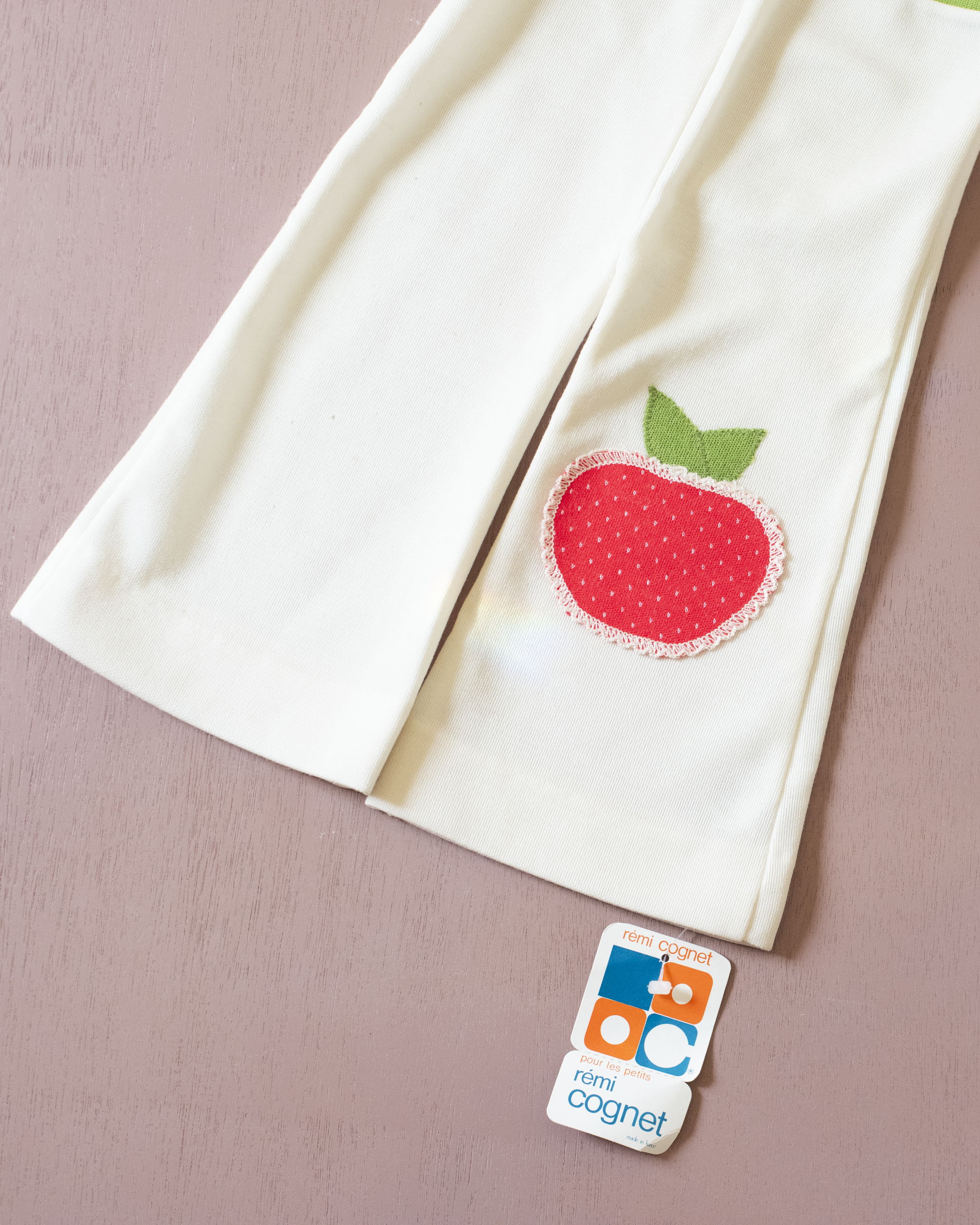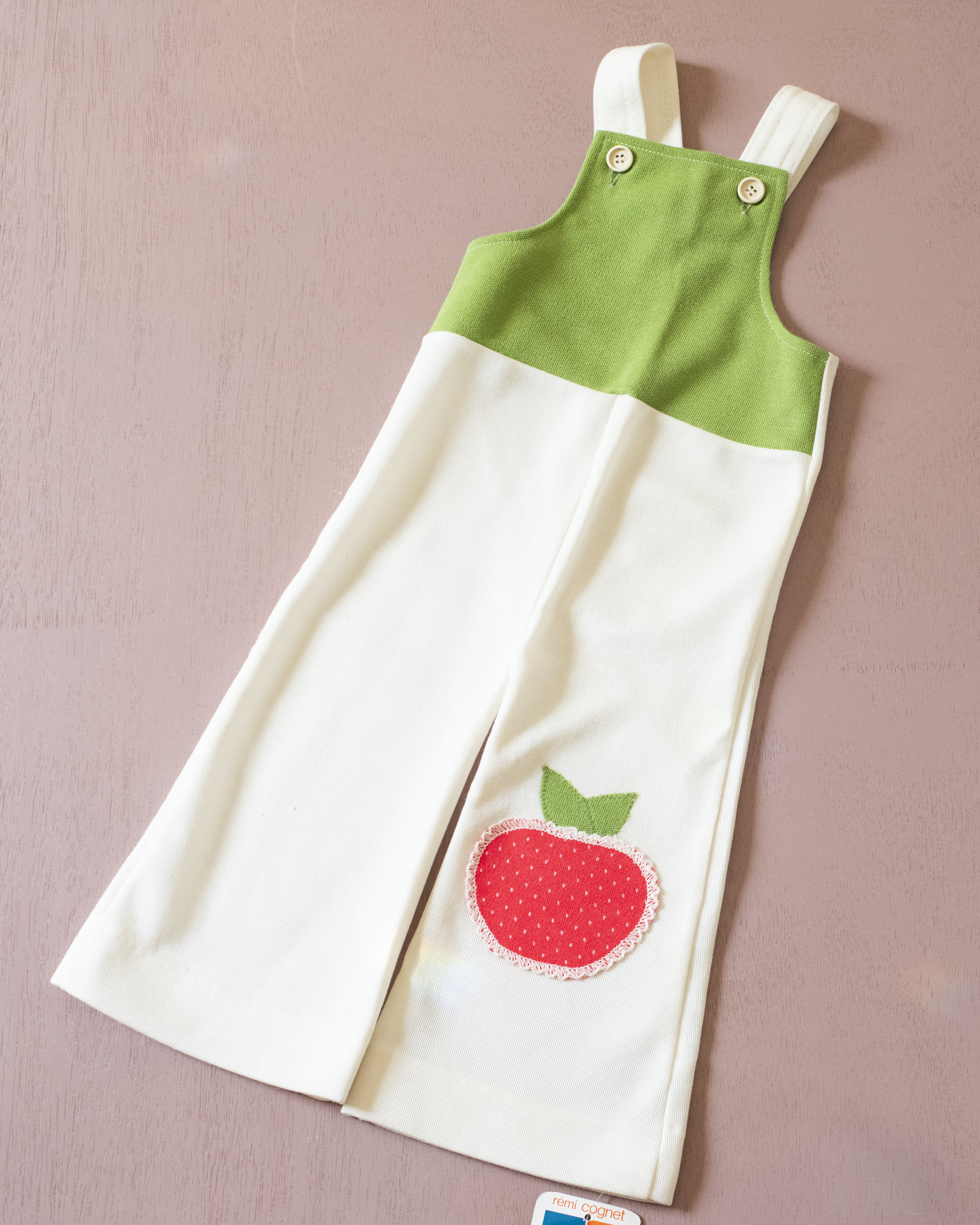 אוברול ירוק ולבן עם תפוח רקום | דד סטוק צרפתי | 6-9 חודשים