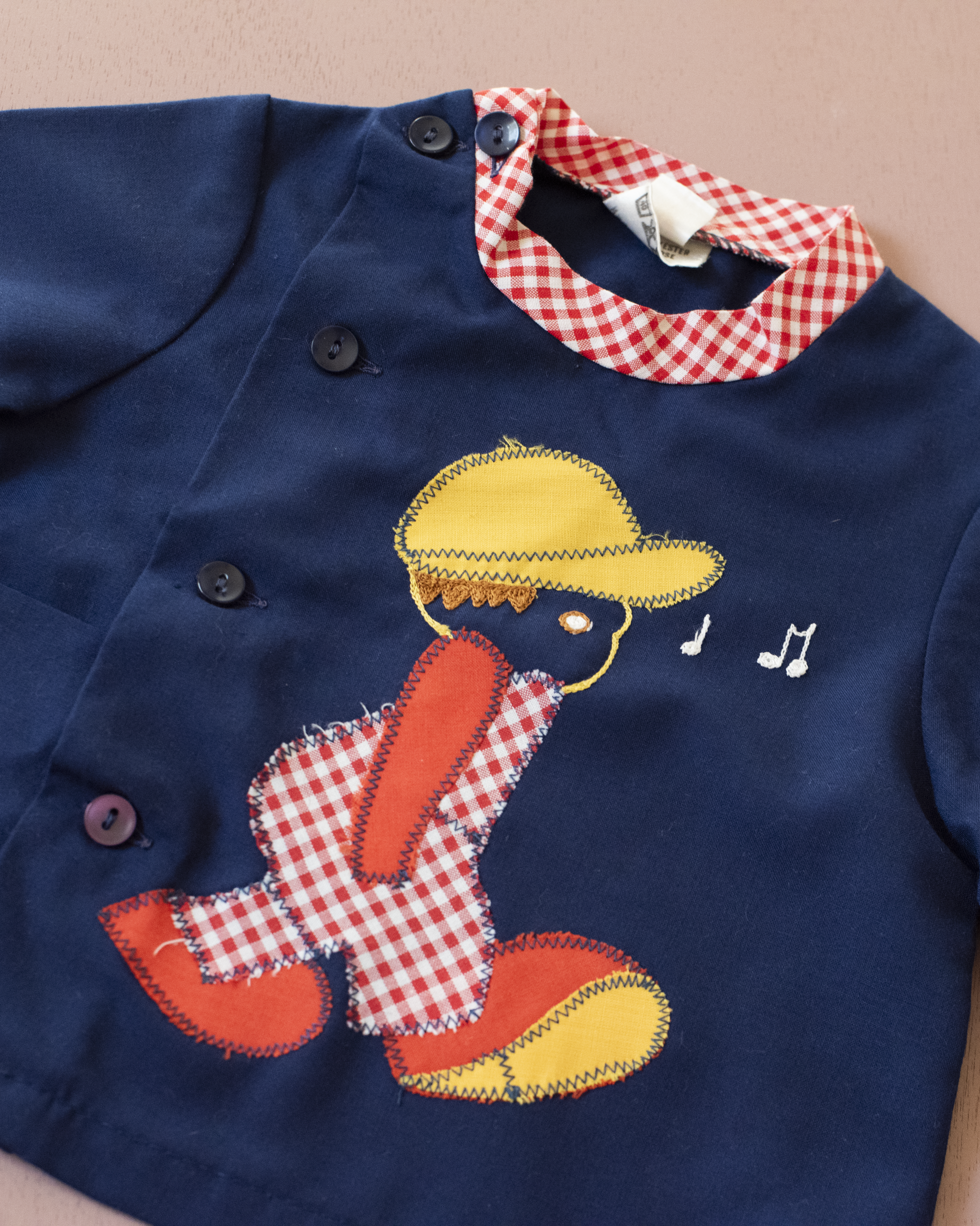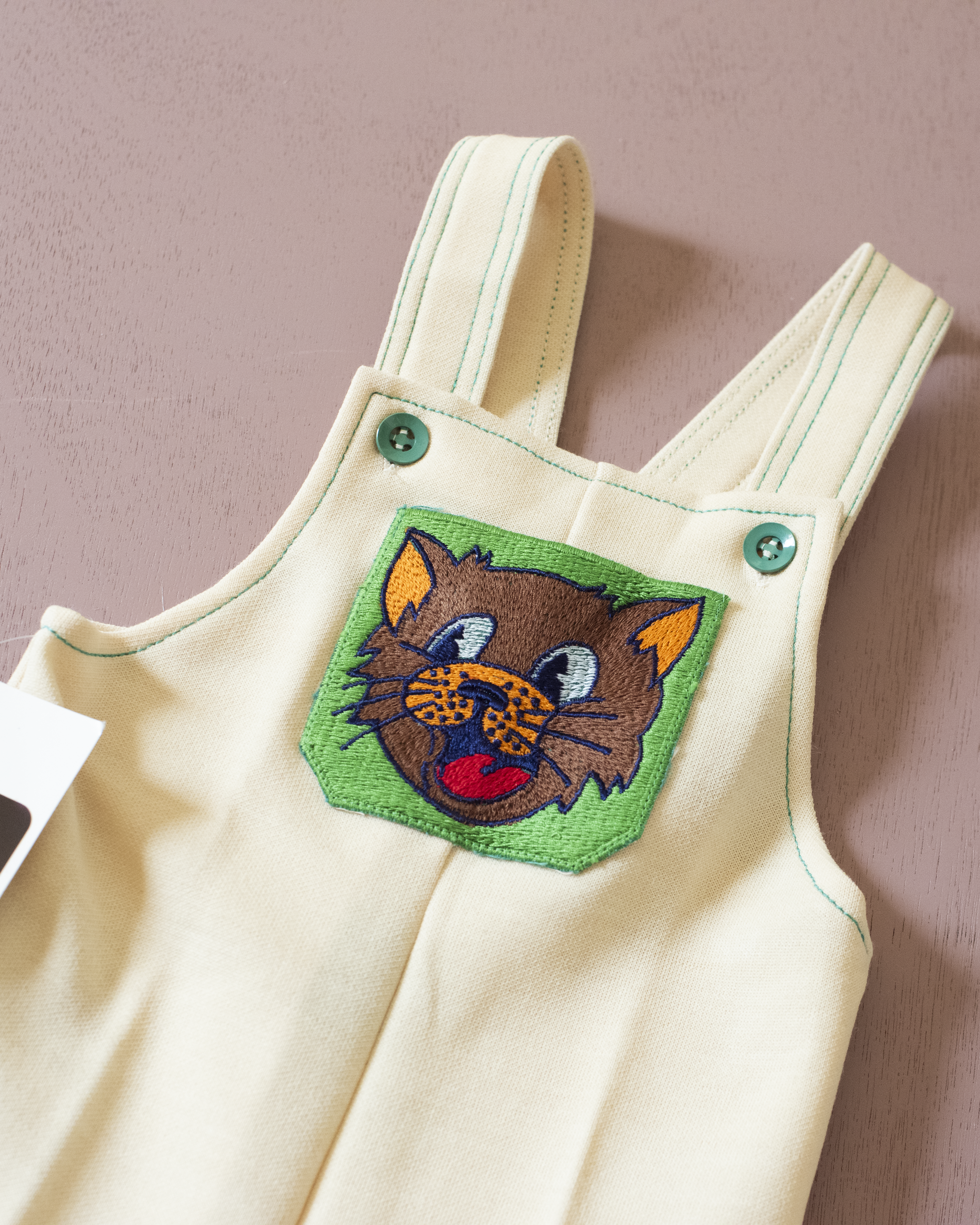אוברול וינטג׳ מבית פטי בטו עם חתול רקום | 6-9 חודשים