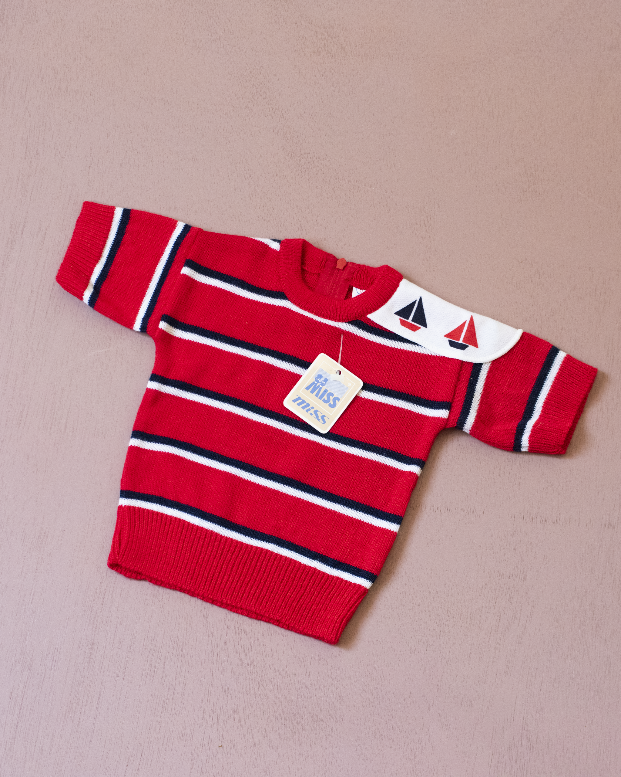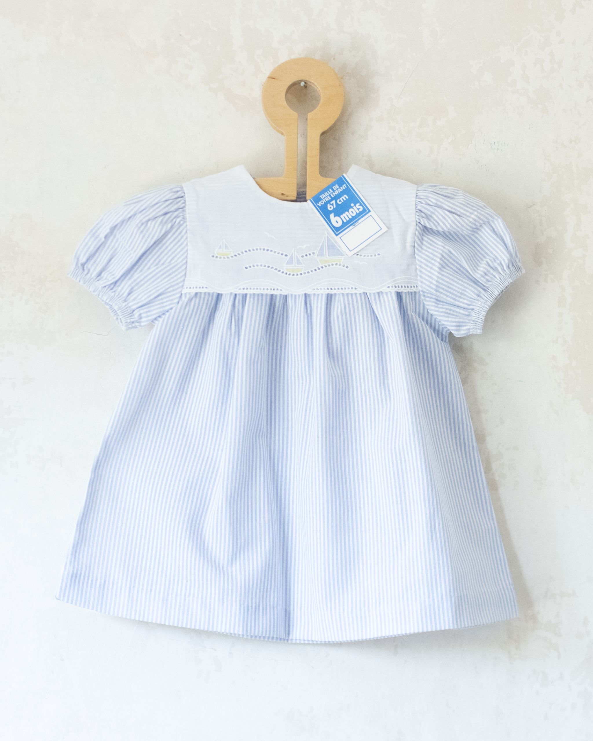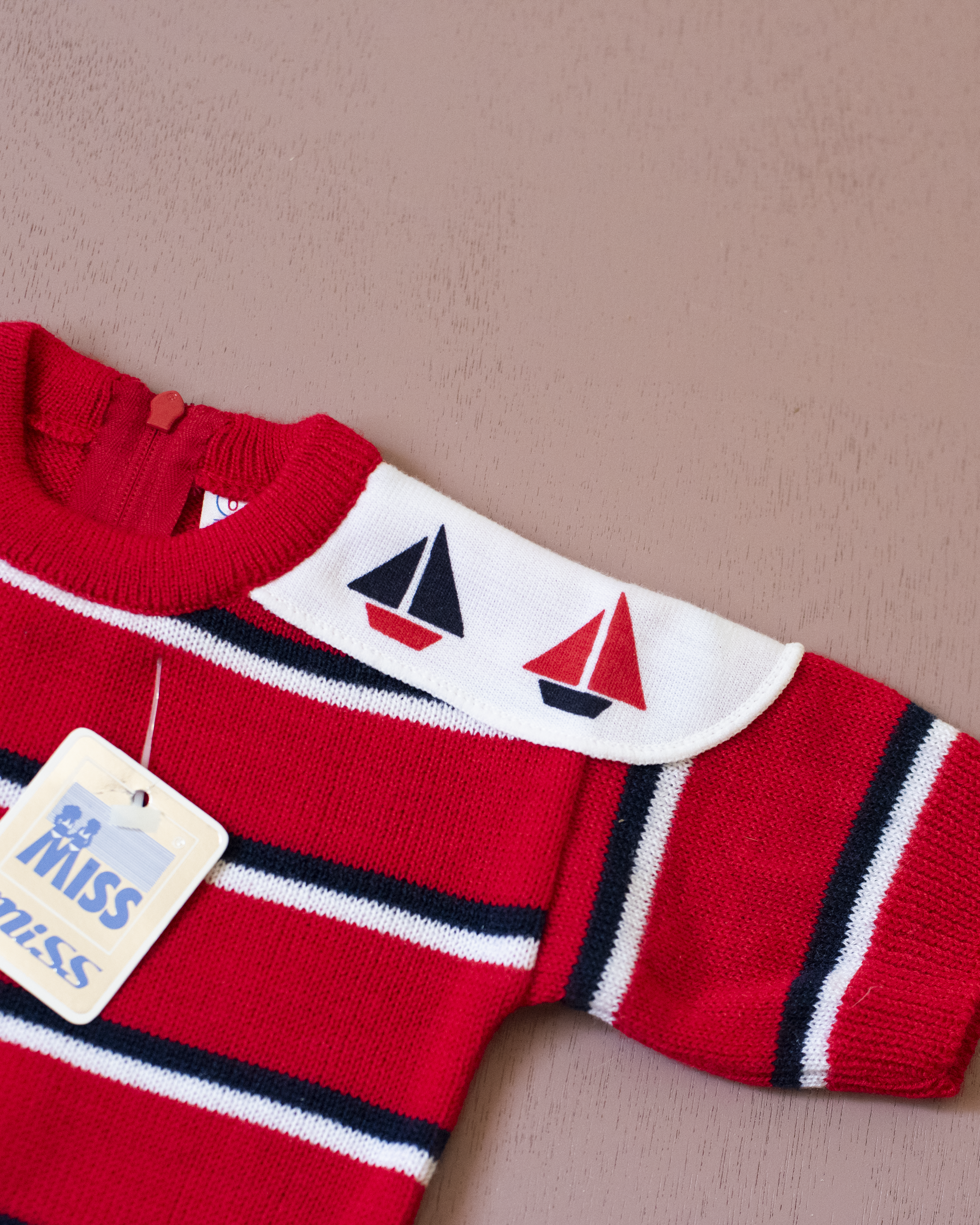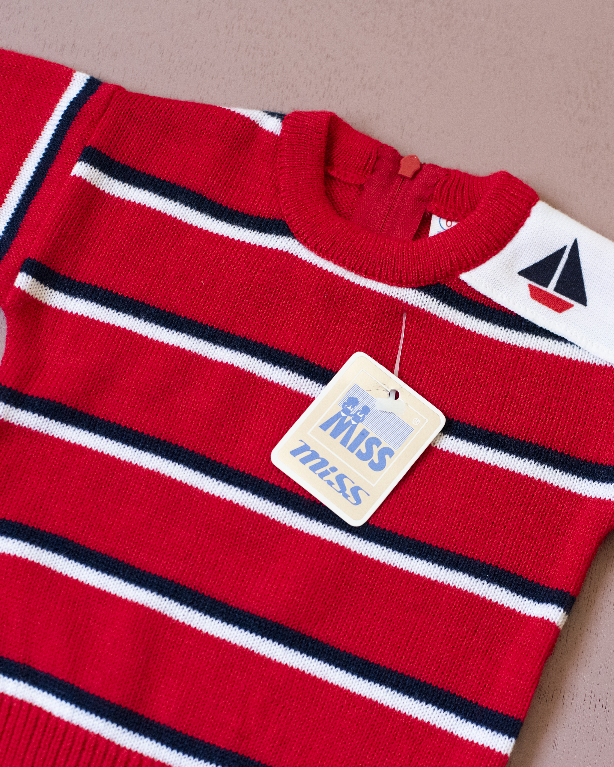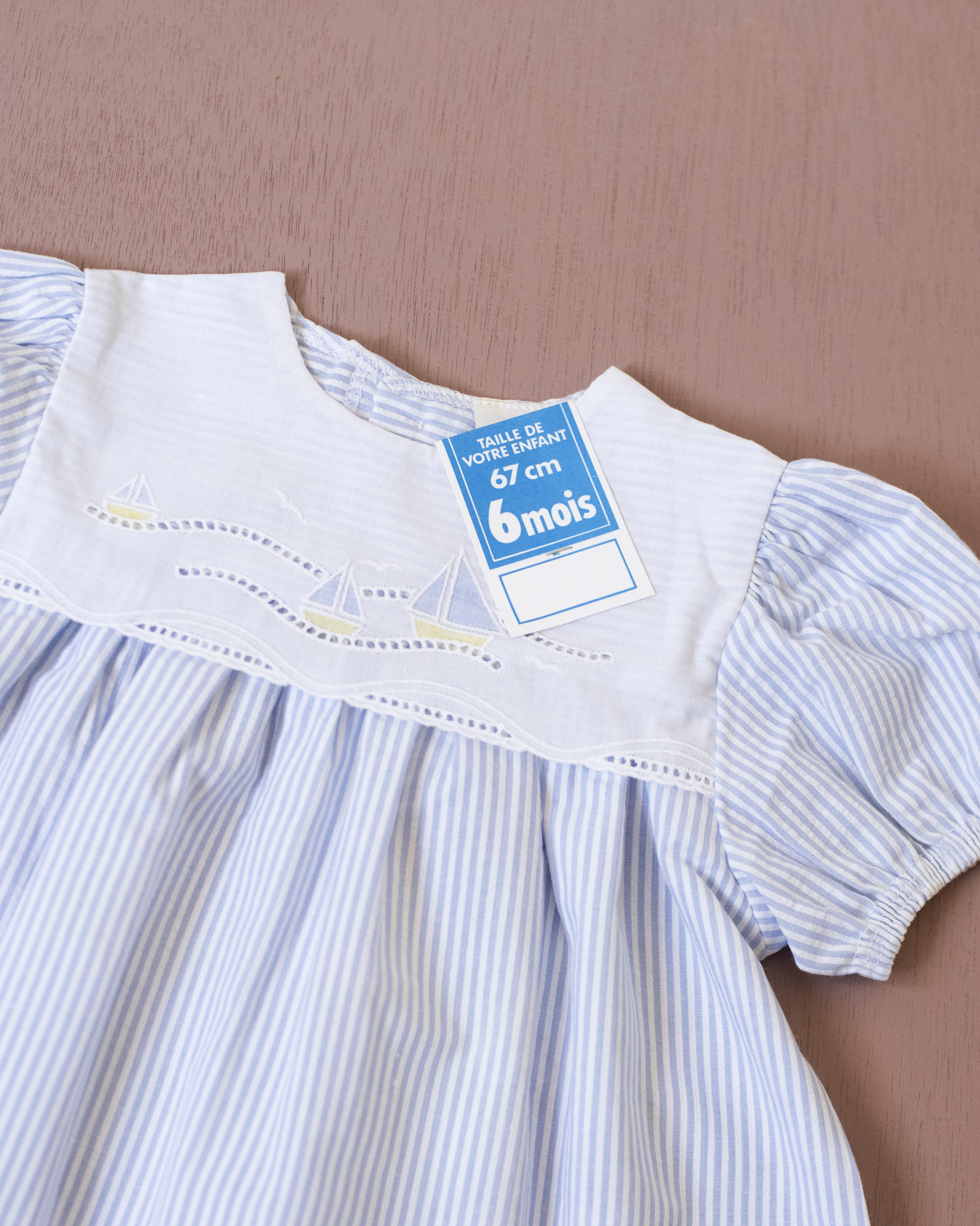 סריג תכלת עם פסים ואפרוח מזמר | דד סטוק צרפתי מהסבנטיז | 6-9 חודשים