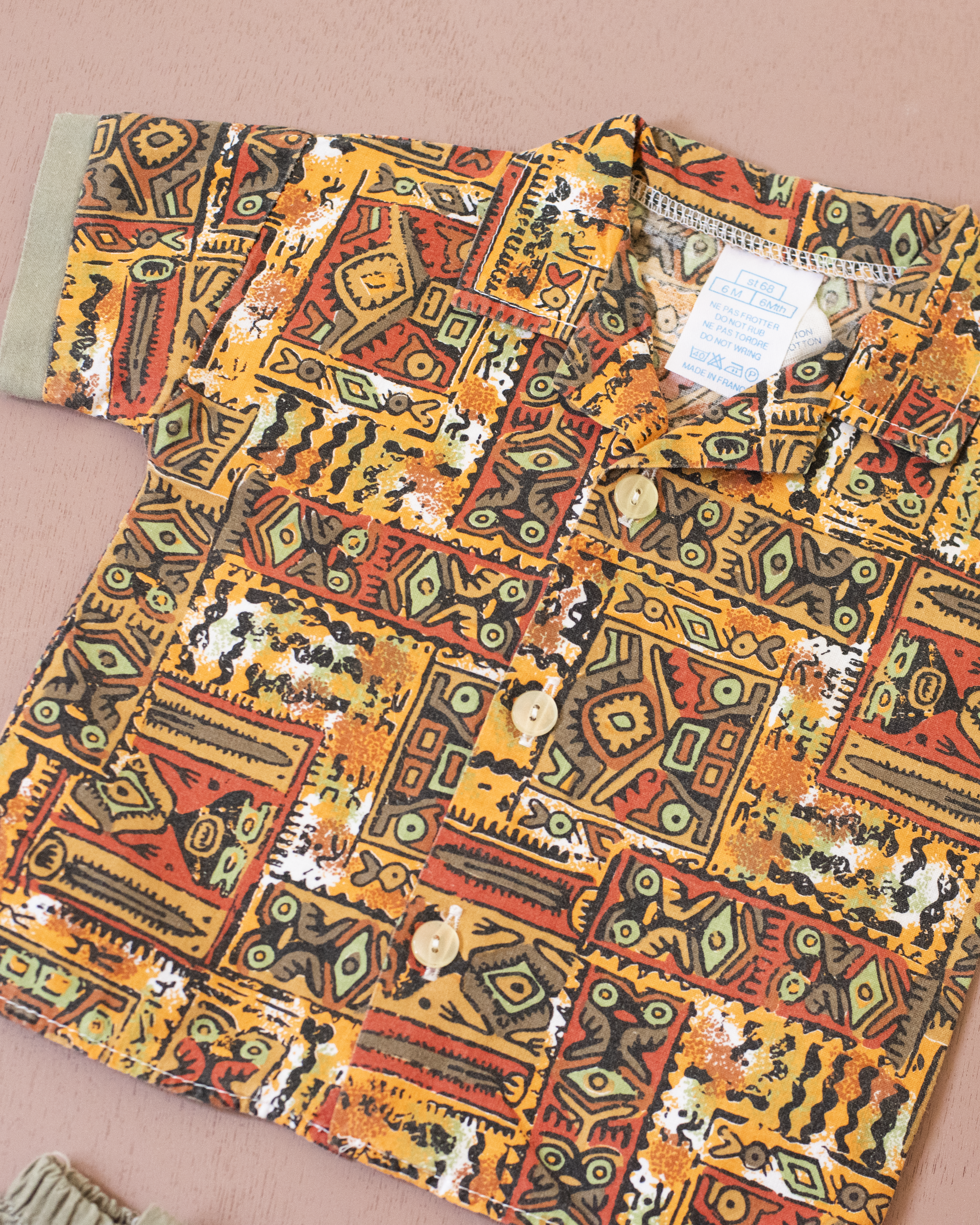 חולצה צבעונית מכופתרת עם טלפונים | 6-9 חודשים