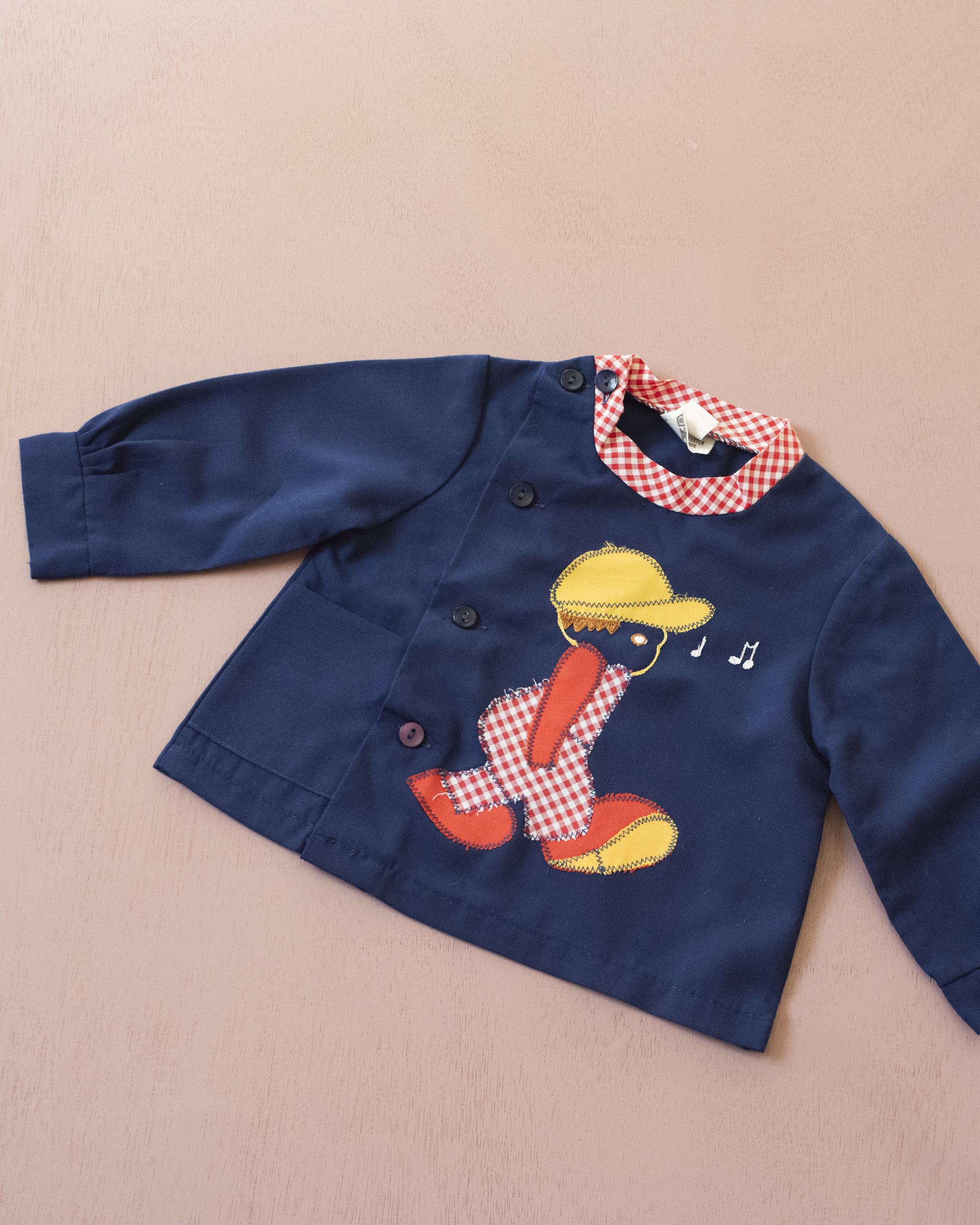 חולצה כחולה עם ילד מזמר רקום | 6-9 חודשים