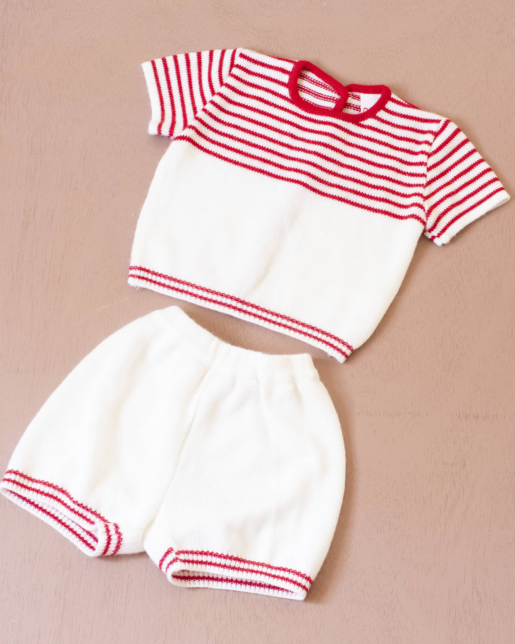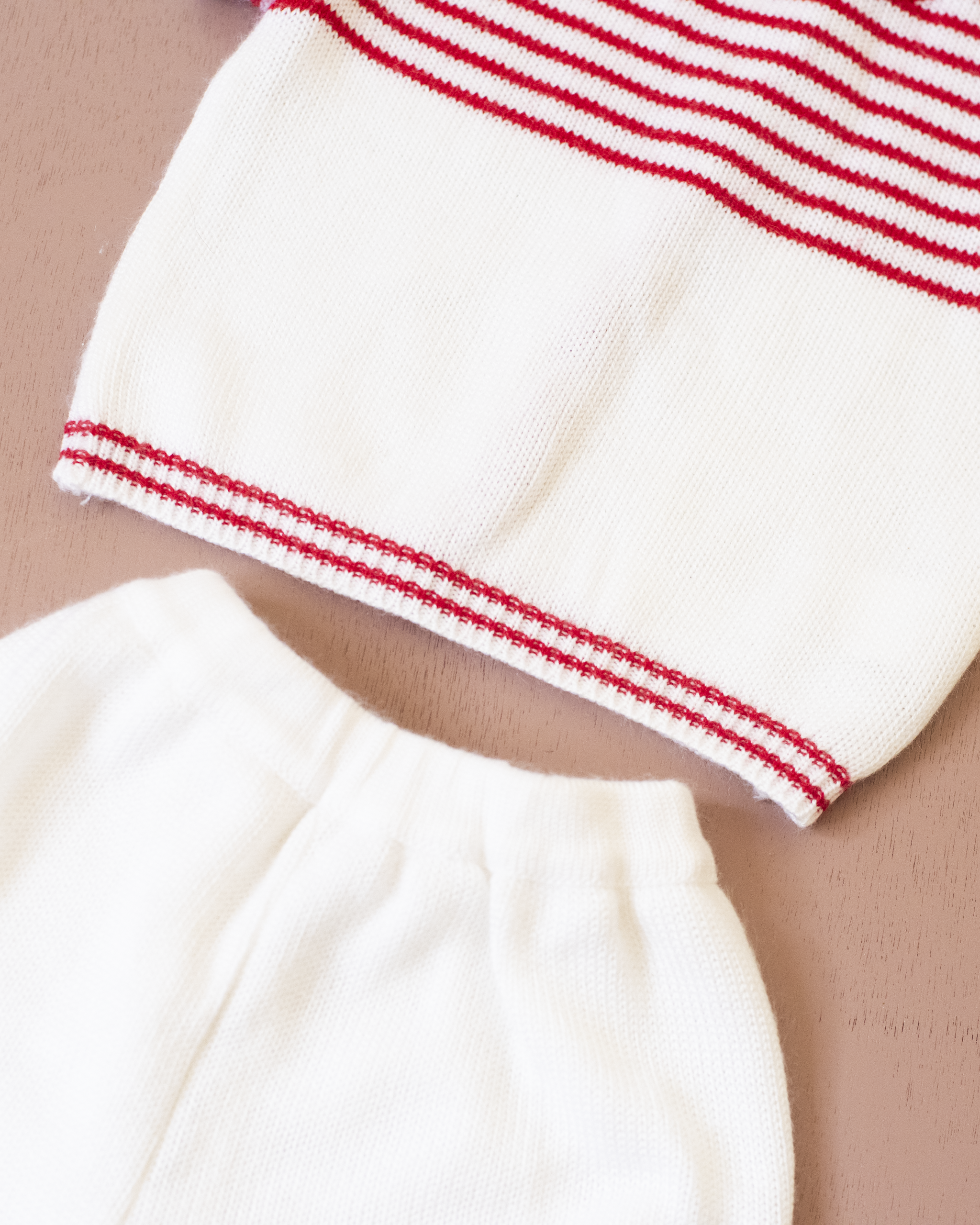 סט סרוג קצר בלבן ואדום | 6-9 חודשים