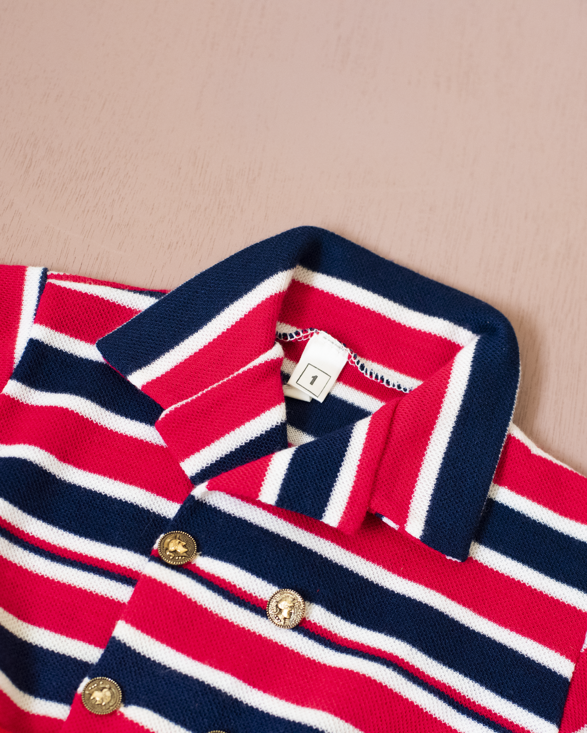 חליפה צרפתית עם פסים וצווארון | 9-12 חודשים