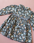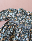 רקמת כיווצים בחזה, בהדפס פרחוני בגוונים חורפיים