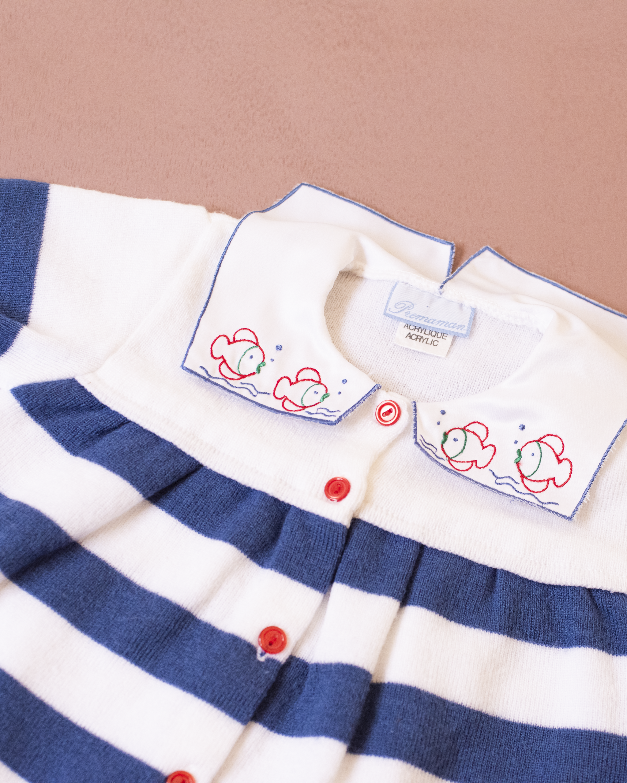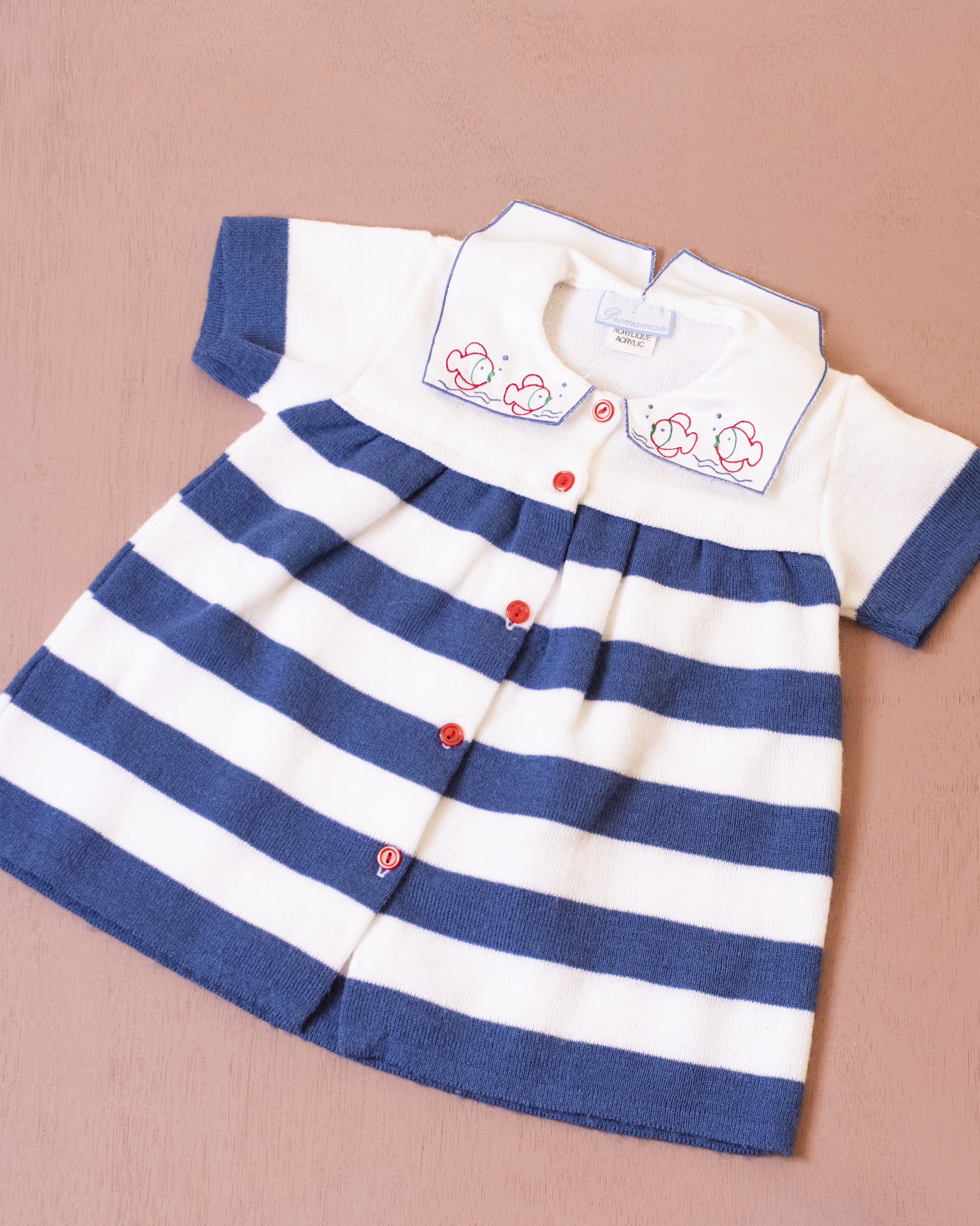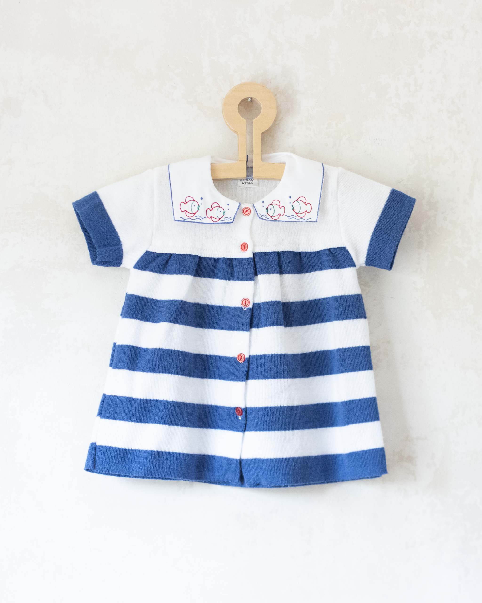 שמלת פסים סרוגה עם דגים בצווארון | 9-12 חודשים