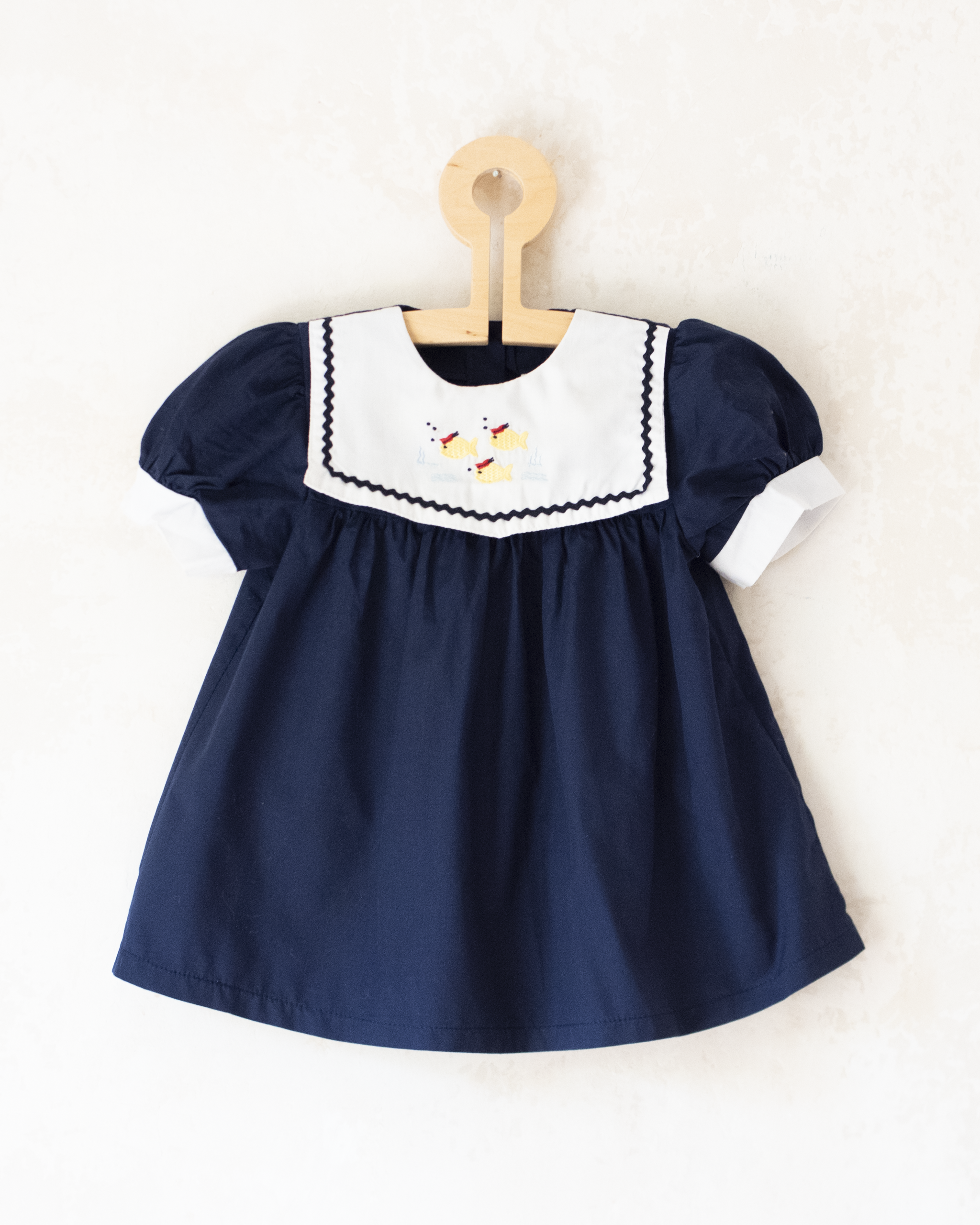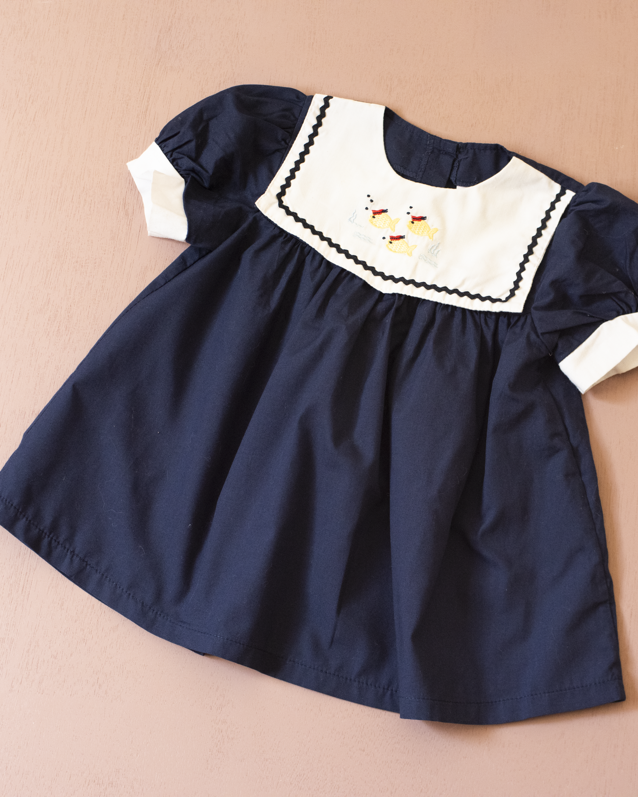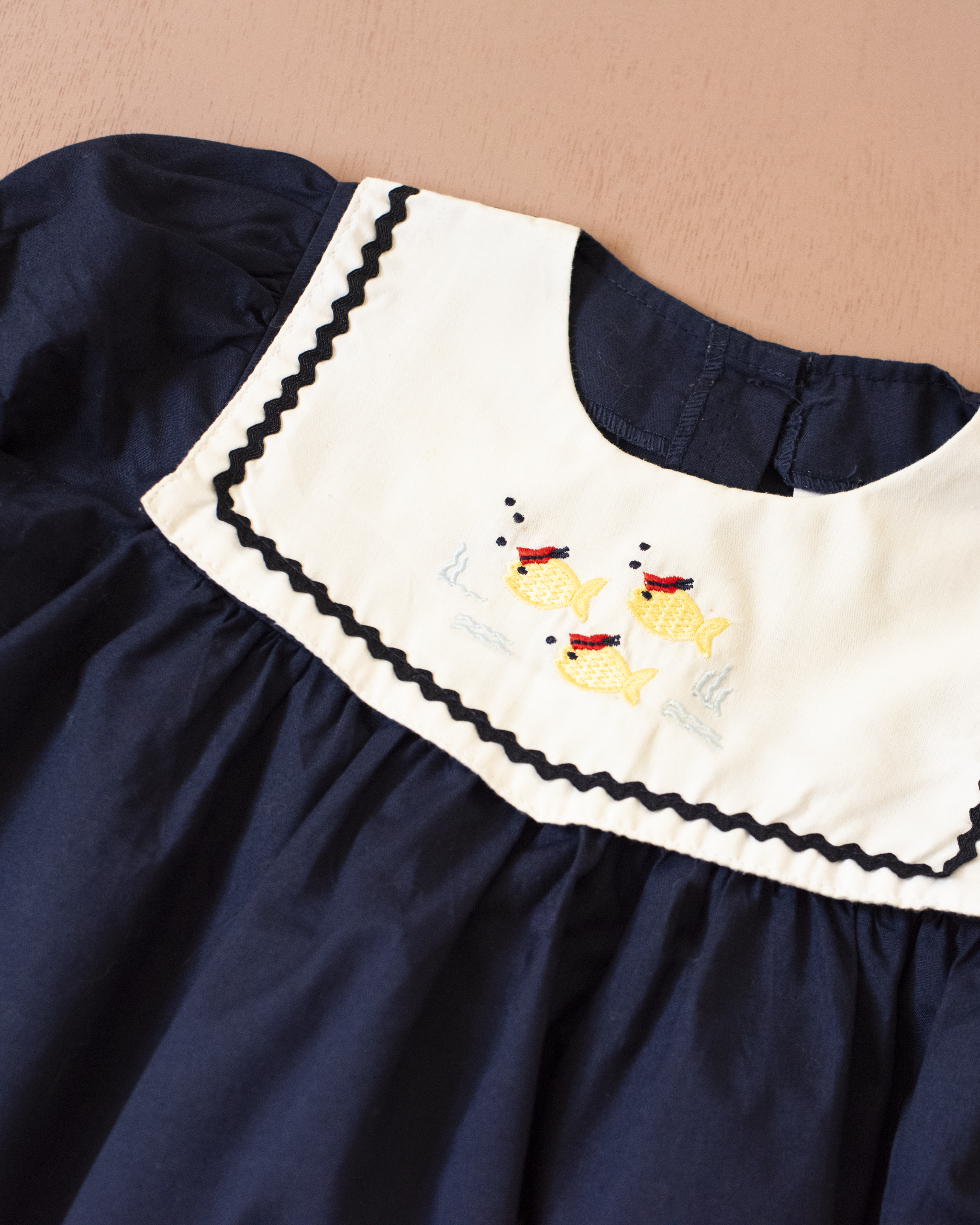 שמלה כחולה עם דגים רקומים על הצווארון | 9-12 חודשים
