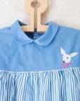 צווארון פיטר פן בתכלת ורקמות ארנבים יפיפיות